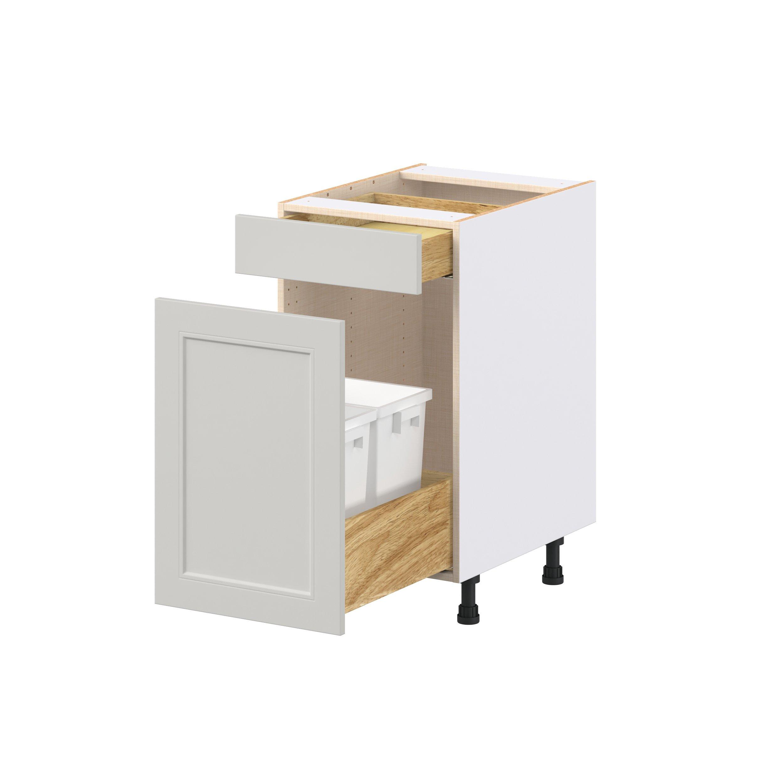 Treat yourself to the refined charm of Lenox shaker-inspired cabinets. Featuring a high-quality premium painted light gray finish, this collection offers sophistication that’s truly built to endure. Crafted from one-piece MDF Studio Design Collection Lenox 18 in. Painted Light Gray Trash Can Pull-Out Base Cabinet is designed to resist hairline cracks while the easy-to-clean finish stands up to stains and moisture. Featuring 5-piece doors and dovetail drawer joints, these cabinets offer durability and elegance. This collection combines style with everyday storage solutions.