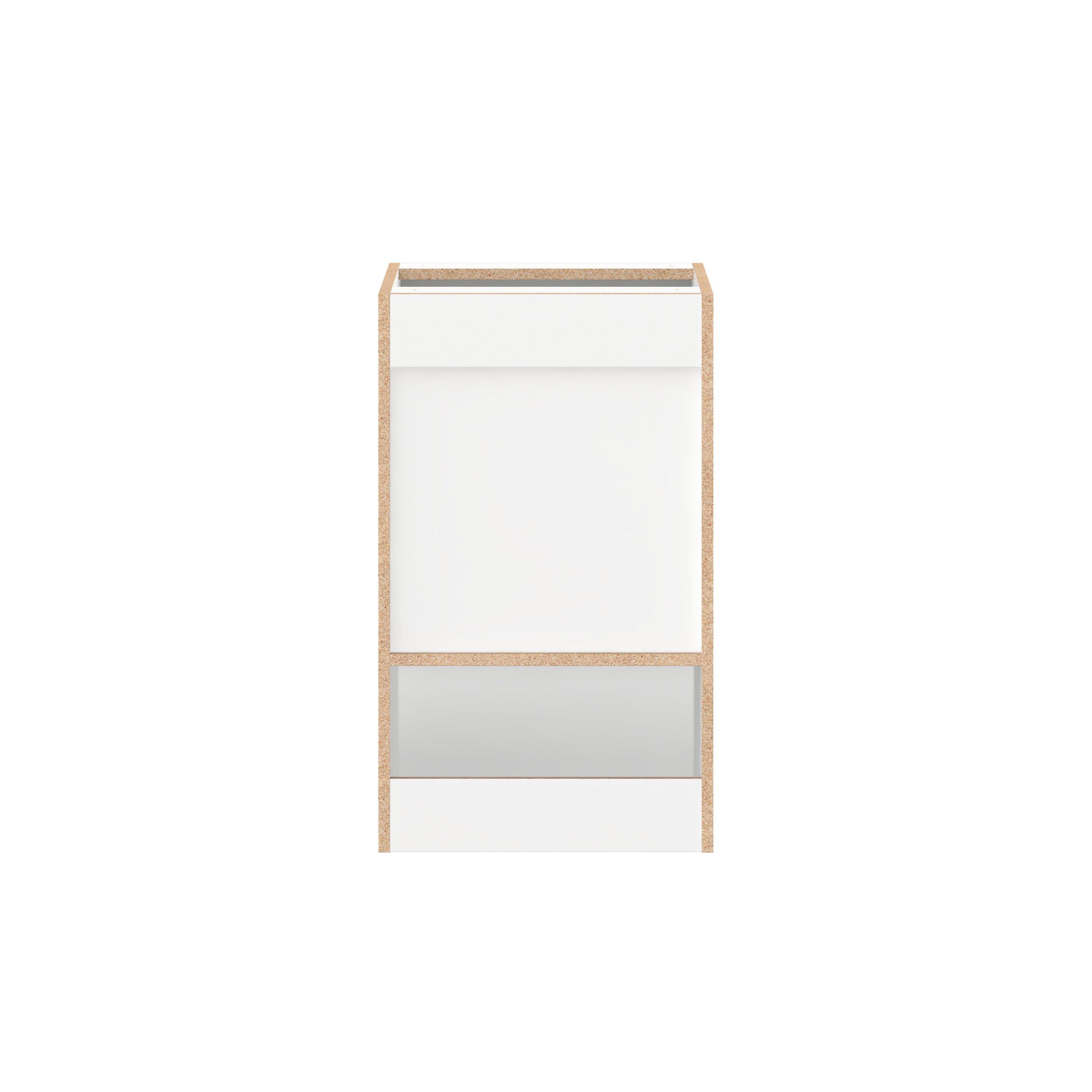 - Frameless cabinet with full-access construction to provide a wider opening.