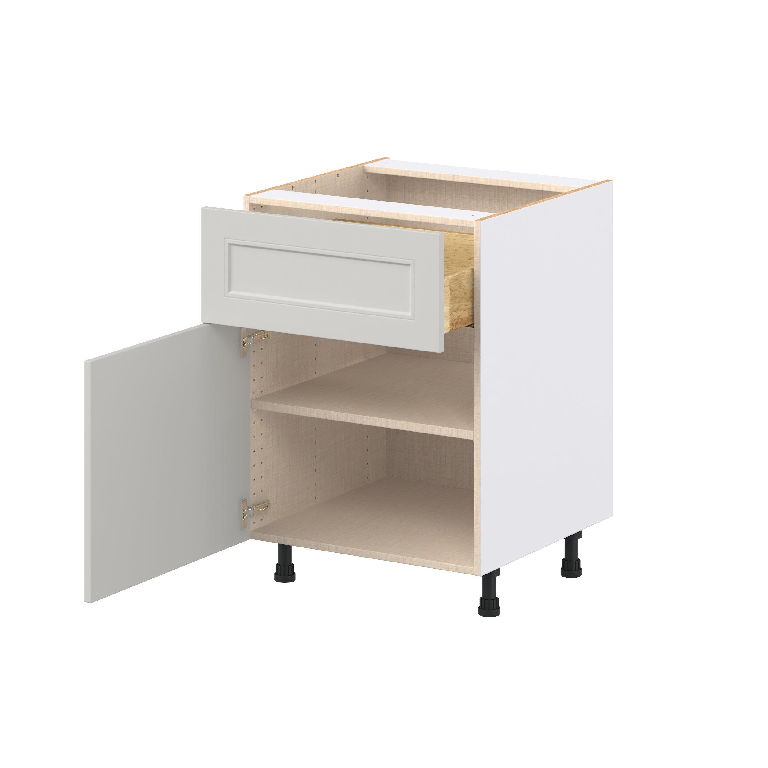 Treat yourself to the refined charm of Lenox shaker-inspired cabinets. Featuring a high-quality premium painted light gray finish, this collection offers sophistication that’s truly built to endure. Crafted from one-piece MDF Studio Design Collection Lenox 24 in. Painted Light Gray Door and Drawer Base Cabinet is designed to resist hairline cracks while the easy-to-clean finish stands up to stains and moisture. Featuring 5-piece doors and dovetail drawer joints, these cabinets offer durability and elegance. This collection combines style with everyday storage solutions.