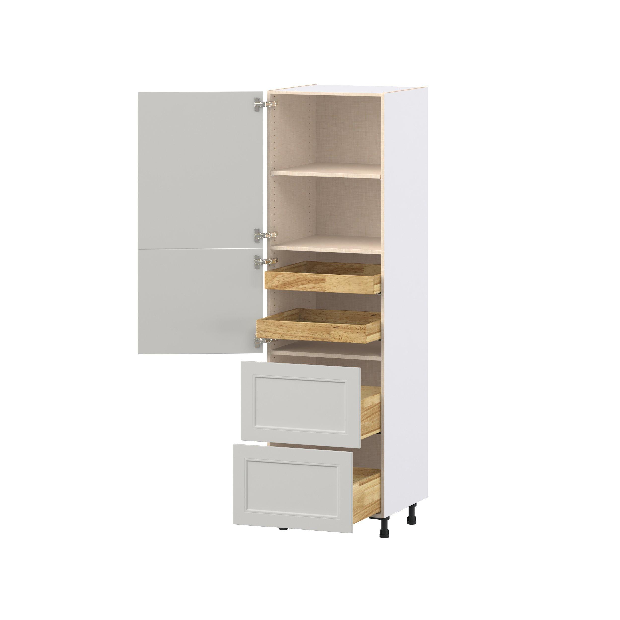 Treat yourself to the refined charm of Lenox shaker-inspired cabinets. Featuring a high-quality premium painted light gray finish, this collection offers sophistication that’s truly built to endure. Crafted from one-piece MDF Studio Design Collection Lenox 24 in. Painted Light Gray Door and Drawer Pantry Cabinet with Inner Pull-Out is designed to resist hairline cracks while the easy-to-clean finish stands up to stains and moisture. Featuring 5-piece doors and dovetail drawer joints, these cabinets offer durability and elegance. This collection combines style with everyday storage solutions.
