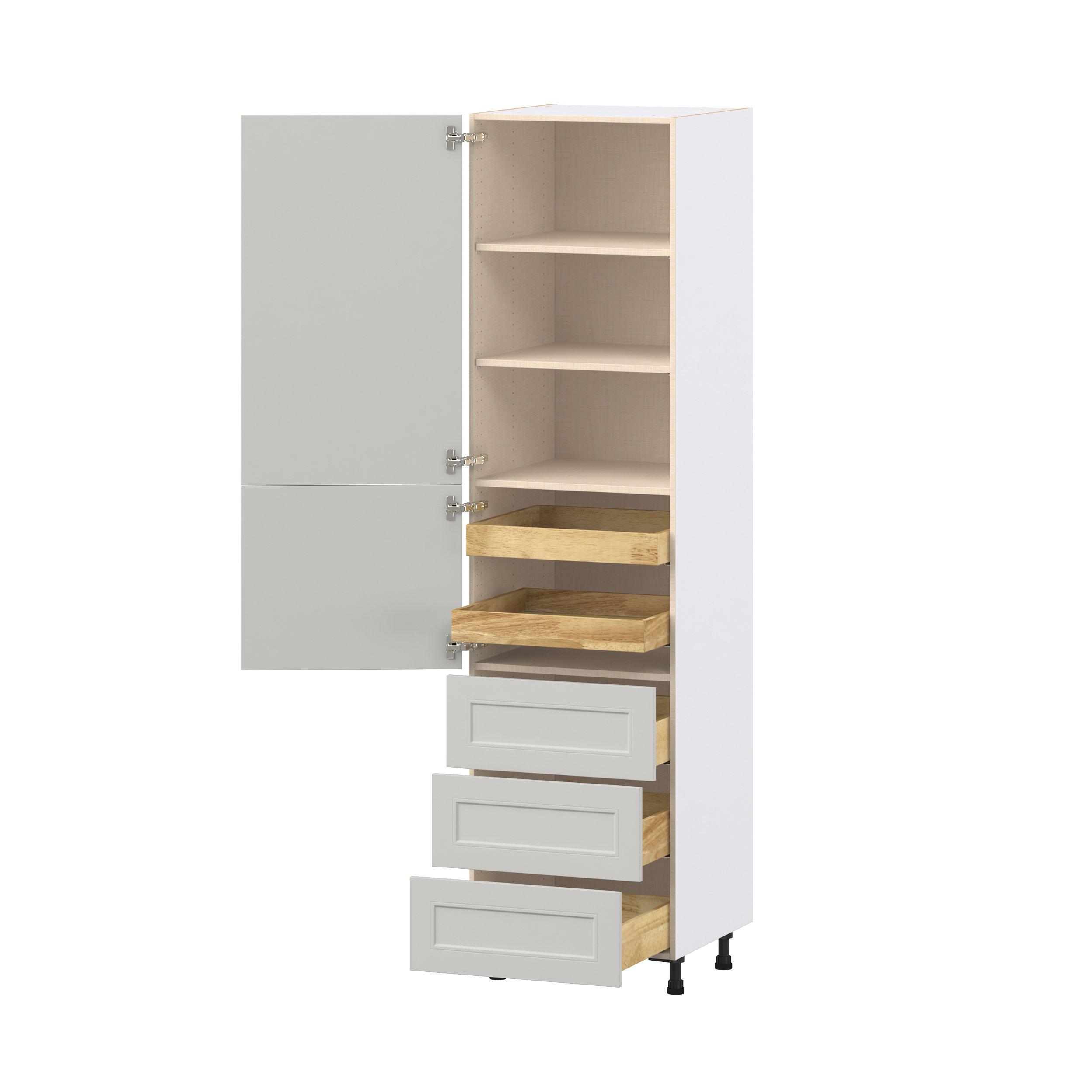 Treat yourself to the refined charm of Lenox shaker-inspired cabinets. Featuring a high-quality premium painted light gray finish, this collection offers sophistication that’s truly built to endure. Crafted from one-piece MDF Studio Design Collection Lenox 24 in. Painted Light Gray Door and Drawer Pantry Cabinet with Inner Pull-Out is designed to resist hairline cracks while the easy-to-clean finish stands up to stains and moisture. Featuring 5-piece doors and dovetail drawer joints, these cabinets offer durability and elegance. This collection combines style with everyday storage solutions.