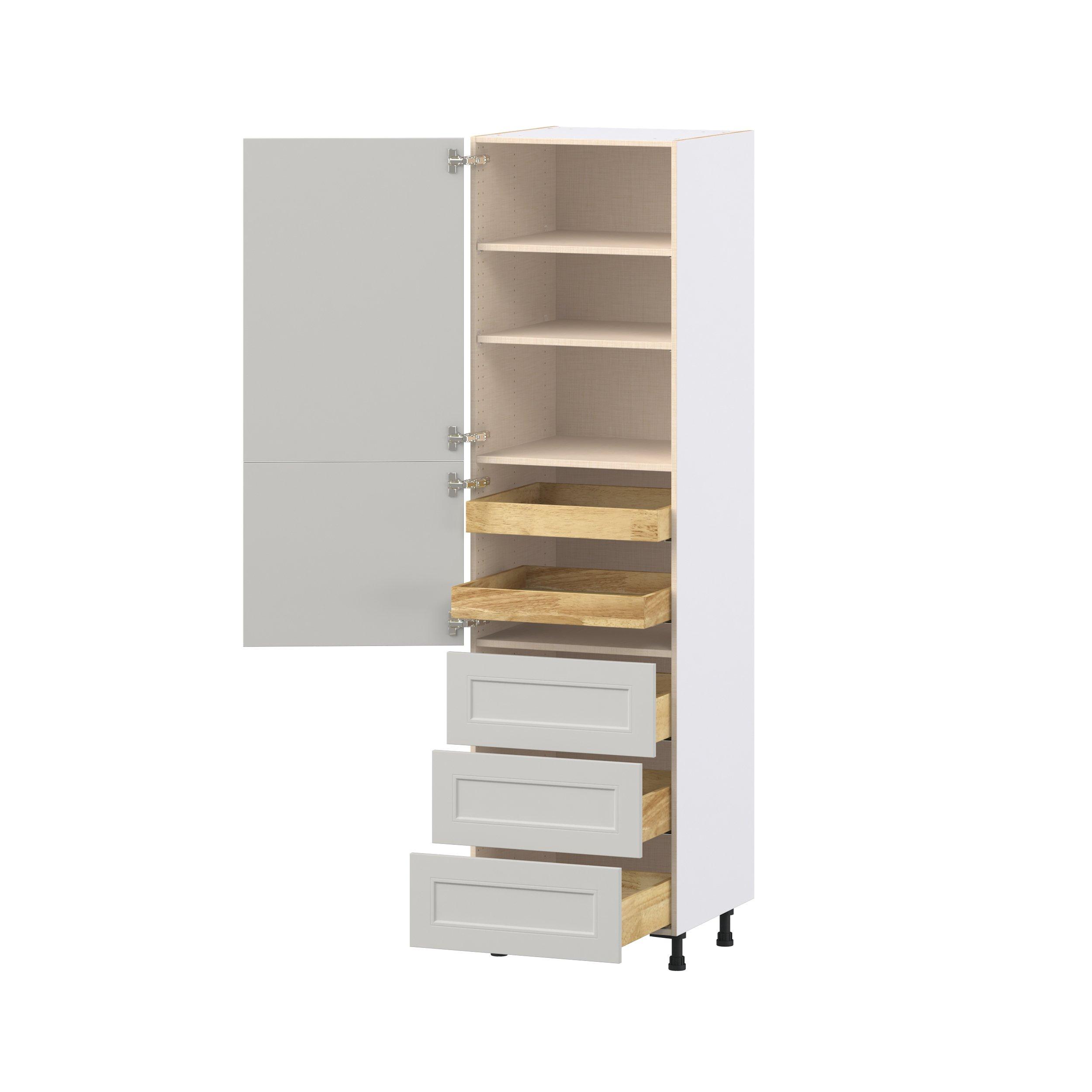 Treat yourself to the refined charm of Lenox shaker-inspired cabinets. Featuring a high-quality premium painted light gray finish, this collection offers sophistication that’s truly built to endure. Crafted from one-piece MDF Studio Design Collection Lenox 24 in. Painted Light Gray Door and Drawer Pantry Cabinet with Inner Pull-Out is designed to resist hairline cracks while the easy-to-clean finish stands up to stains and moisture. Featuring 5-piece doors and dovetail drawer joints, these cabinets offer durability and elegance. This collection combines style with everyday storage solutions.