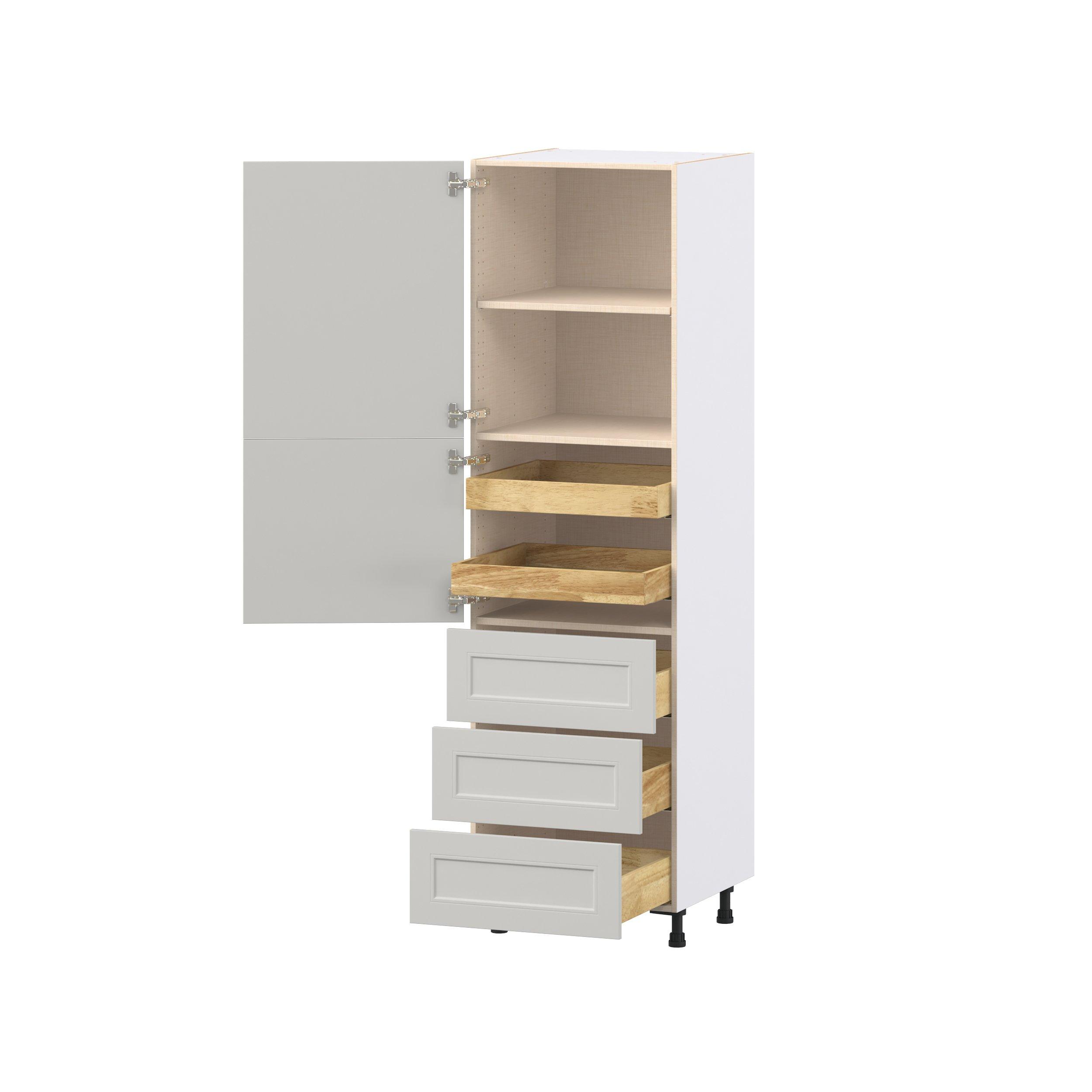 Treat yourself to the refined charm of Lenox shaker-inspired cabinets. Featuring a high-quality premium painted light gray finish, this collection offers sophistication that’s truly built to endure. Crafted from one-piece MDF Studio Design Collection Lenox 24 in. Painted Light Gray Door and Drawer Pantry Cabinet with Inner Pull-Out is designed to resist hairline cracks while the easy-to-clean finish stands up to stains and moisture. Featuring 5-piece doors and dovetail drawer joints, these cabinets offer durability and elegance. This collection combines style with everyday storage solutions.