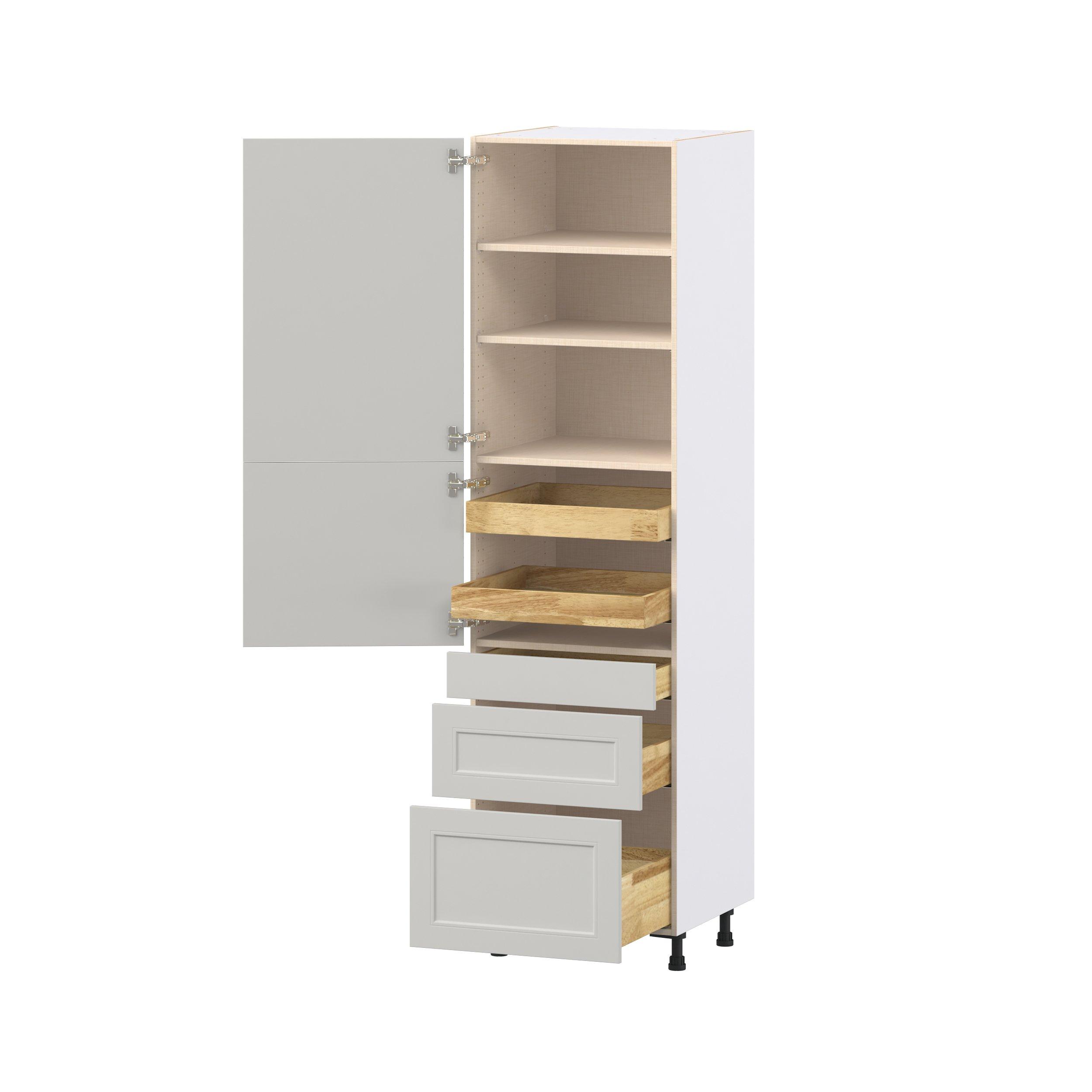 Treat yourself to the refined charm of Lenox shaker-inspired cabinets. Featuring a high-quality premium painted light gray finish, this collection offers sophistication that’s truly built to endure. Crafted from one-piece MDF Studio Design Collection Lenox 24 in. Painted Light Gray Door and Drawer Pantry Cabinet with Inner Pull-Out is designed to resist hairline cracks while the easy-to-clean finish stands up to stains and moisture. Featuring 5-piece doors and dovetail drawer joints, these cabinets offer durability and elegance. This collection combines style with everyday storage solutions.