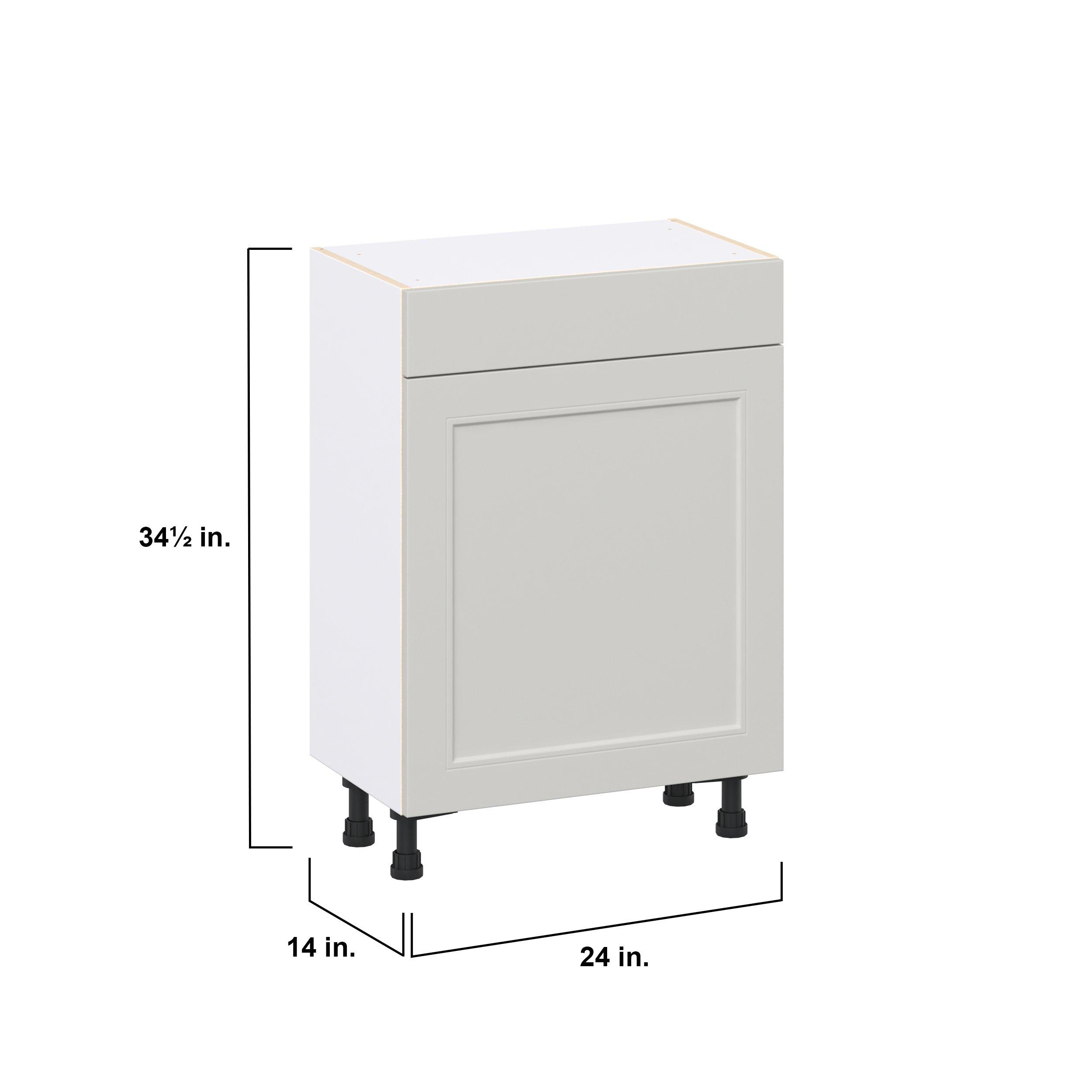 Treat yourself to the refined charm of Lenox shaker-inspired cabinets. Featuring a high-quality premium painted light gray finish, this collection offers sophistication that’s truly built to endure. Crafted from one-piece MDF Studio Design Collection Lenox 24 in. Painted Light Gray Shallow Base Cabinet is designed to resist hairline cracks while the easy-to-clean finish stands up to stains and moisture. Featuring 5-piece doors and dovetail drawer joints, these cabinets offer durability and elegance. This collection combines style with everyday storage solutions.