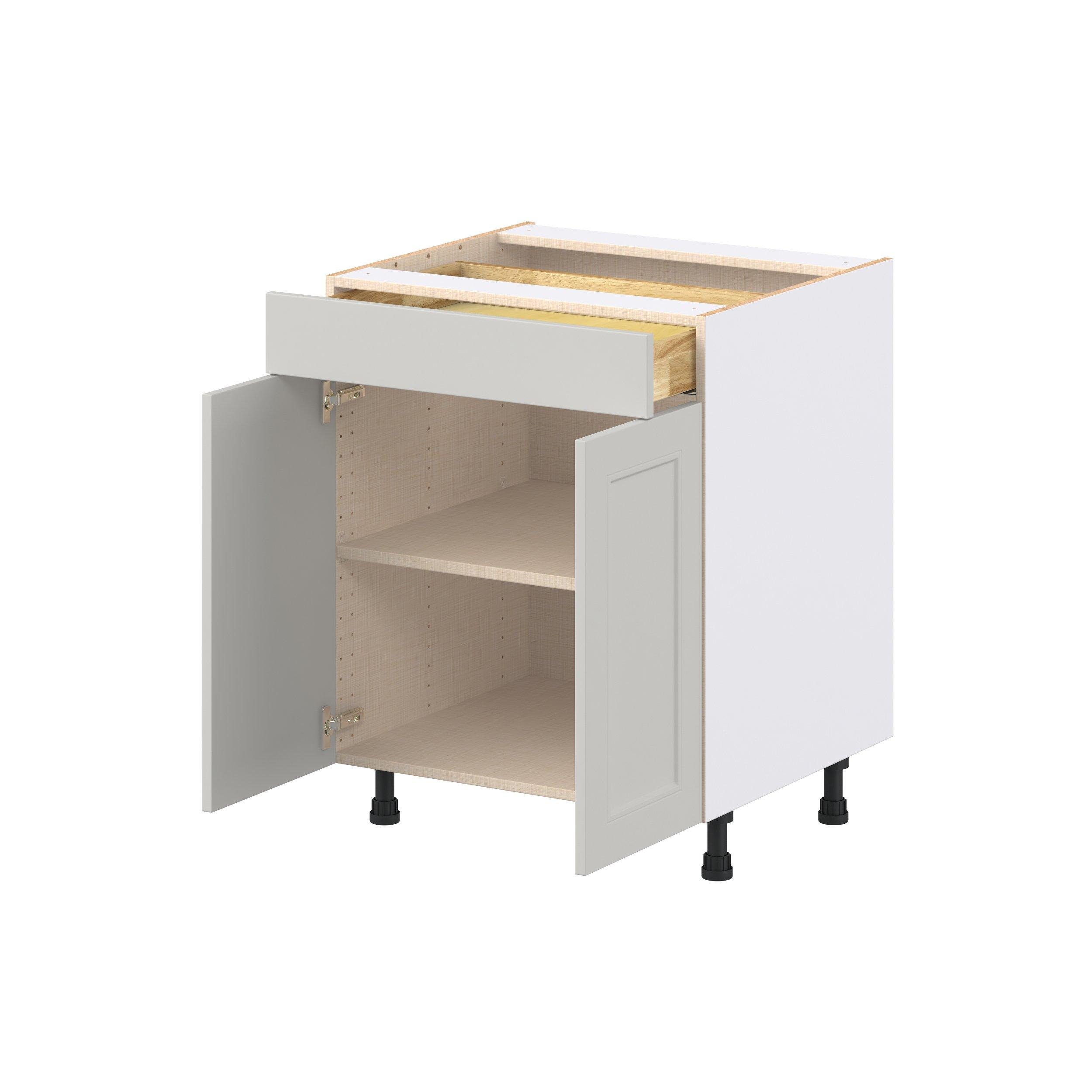 Treat yourself to the refined charm of Lenox shaker-inspired cabinets. Featuring a high-quality premium painted light gray finish, this collection offers sophistication that’s truly built to endure. Crafted from one-piece MDF Studio Design Collection Lenox 27 in. Painted Light Gray Door and Drawer Base Cabinet is designed to resist hairline cracks while the easy-to-clean finish stands up to stains and moisture. Featuring 5-piece doors and dovetail drawer joints, these cabinets offer durability and elegance. This collection combines style with everyday storage solutions.