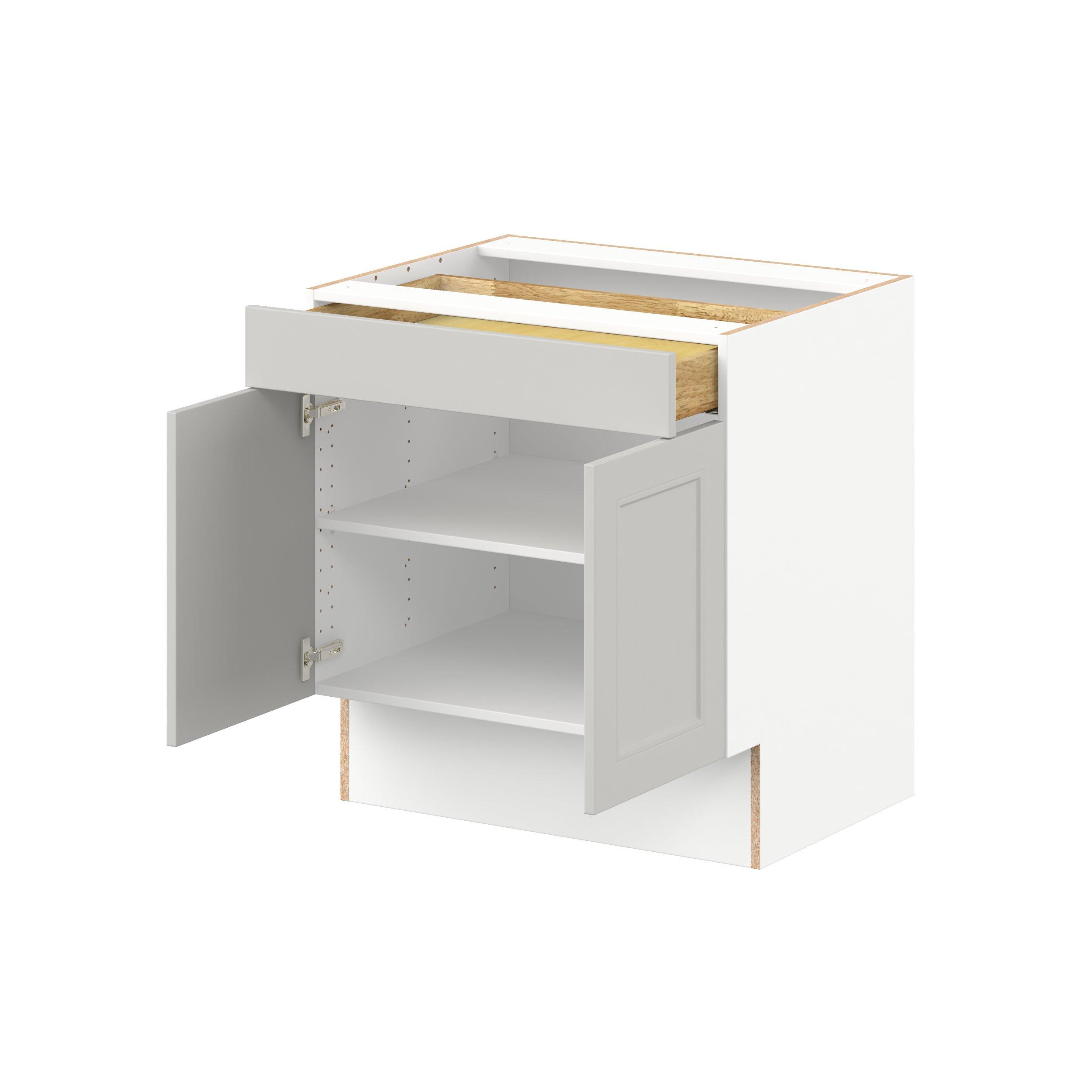 Treat yourself to the refined charm of Lenox shaker-inspired cabinets. Featuring a high-quality premium painted light gray finish, this collection offers sophistication that’s truly built to endure. Crafted from one-piece MDF Studio Design Collection Lenox 30 in. Painted Light Gray Door and Drawer Base Cabinet - ADA is designed to resist hairline cracks while the easy-to-clean finish stands up to stains and moisture. Featuring 5-piece doors and dovetail drawer joints, these cabinets offer durability and elegance. This collection combines style with everyday storage solutions.