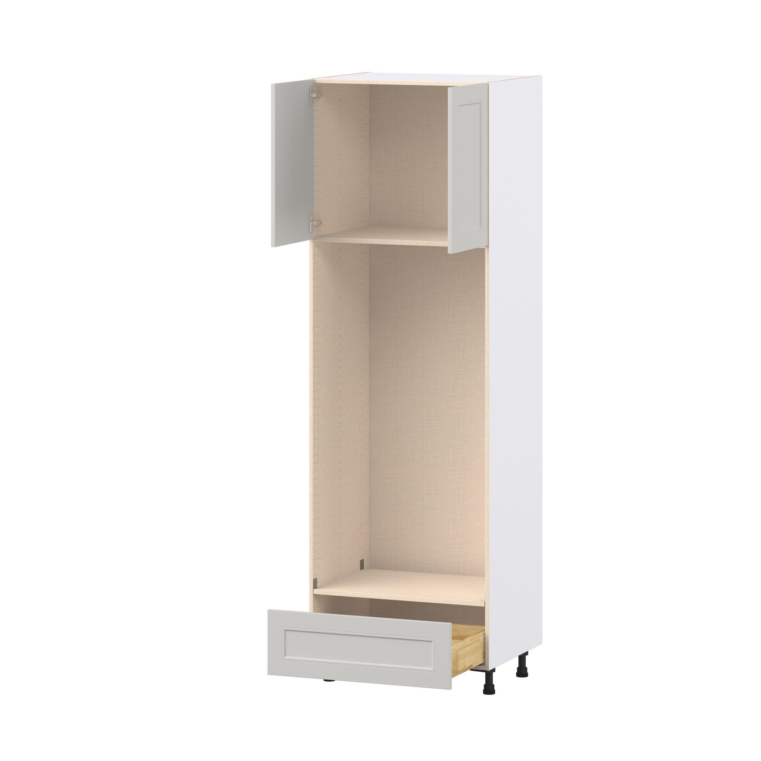 Treat yourself to the refined charm of Lenox shaker-inspired cabinets. Featuring a high-quality premium painted light gray finish, this collection offers sophistication that’s truly built to endure. Crafted from one-piece MDF Studio Design Collection Lenox 30 in. Painted Light Gray Door and Drawer Double Oven Pantry Cabinet is designed to resist hairline cracks while the easy-to-clean finish stands up to stains and moisture. Featuring 5-piece doors and dovetail drawer joints, these cabinets offer durability and elegance. This collection combines style with everyday storage solutions.