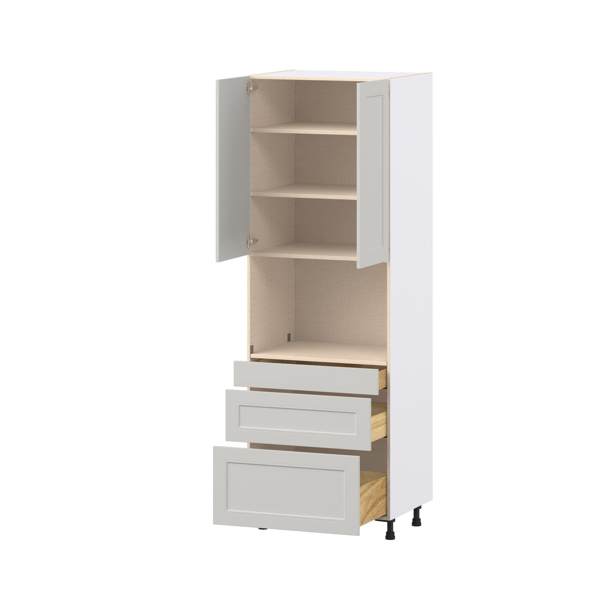 Treat yourself to the refined charm of Lenox shaker-inspired cabinets. Featuring a high-quality premium painted light gray finish, this collection offers sophistication that’s truly built to endure. Crafted from one-piece MDF Studio Design Collection Lenox 30 in. Painted Light Gray Door and Drawer Microwave Pantry Cabinet is designed to resist hairline cracks while the easy-to-clean finish stands up to stains and moisture. Featuring 5-piece doors and dovetail drawer joints, these cabinets offer durability and elegance. This collection combines style with everyday storage solutions.