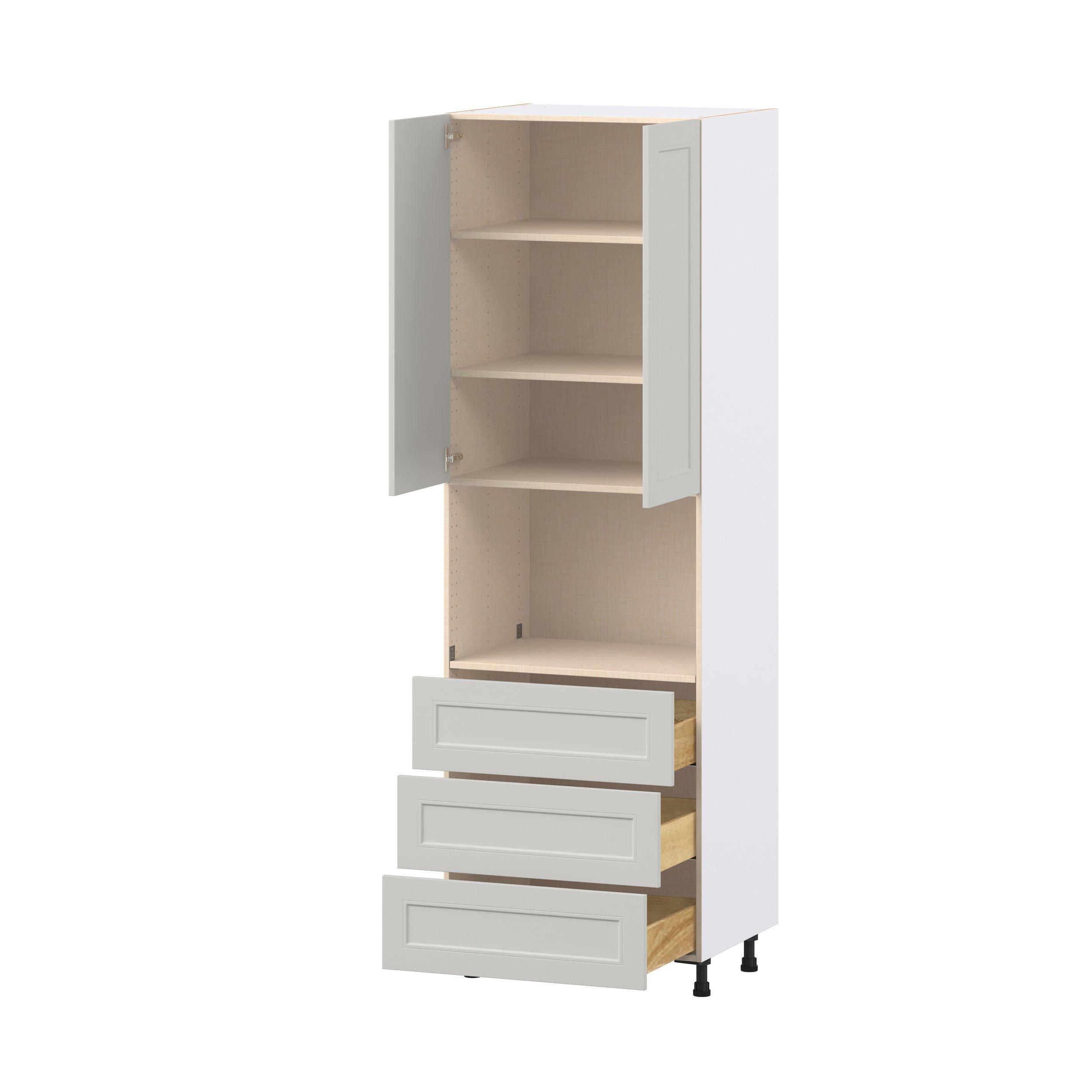 Treat yourself to the refined charm of Lenox shaker-inspired cabinets. Featuring a high-quality premium painted light gray finish, this collection offers sophistication that’s truly built to endure. Crafted from one-piece MDF Studio Design Collection Lenox 30 in. Painted Light Gray Door and Drawer Microwave Pantry Cabinet is designed to resist hairline cracks while the easy-to-clean finish stands up to stains and moisture. Featuring 5-piece doors and dovetail drawer joints, these cabinets offer durability and elegance. This collection combines style with everyday storage solutions.