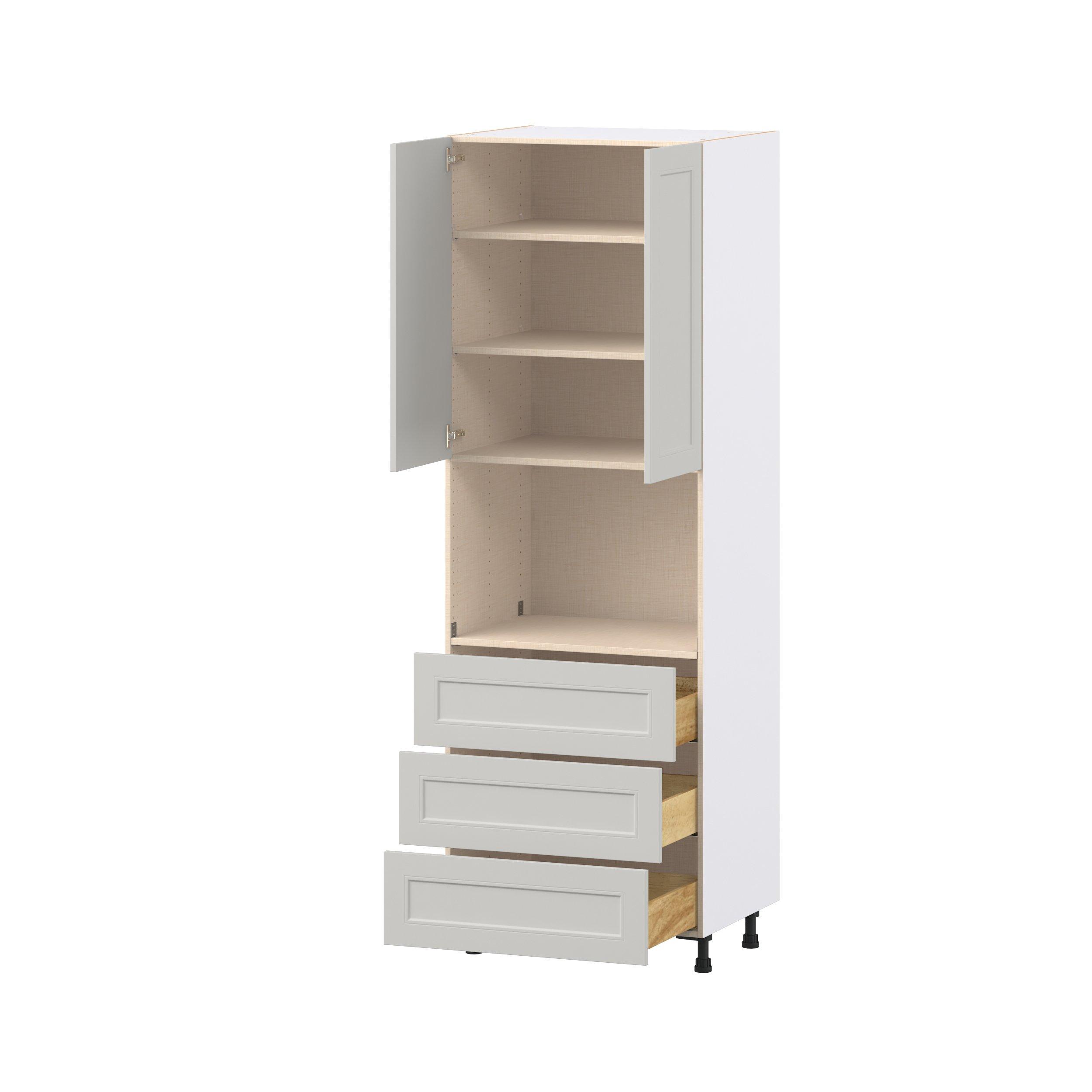 Treat yourself to the refined charm of Lenox shaker-inspired cabinets. Featuring a high-quality premium painted light gray finish, this collection offers sophistication that’s truly built to endure. Crafted from one-piece MDF Studio Design Collection Lenox 30 in. Painted Light Gray Door and Drawer Microwave Pantry Cabinet is designed to resist hairline cracks while the easy-to-clean finish stands up to stains and moisture. Featuring 5-piece doors and dovetail drawer joints, these cabinets offer durability and elegance. This collection combines style with everyday storage solutions.