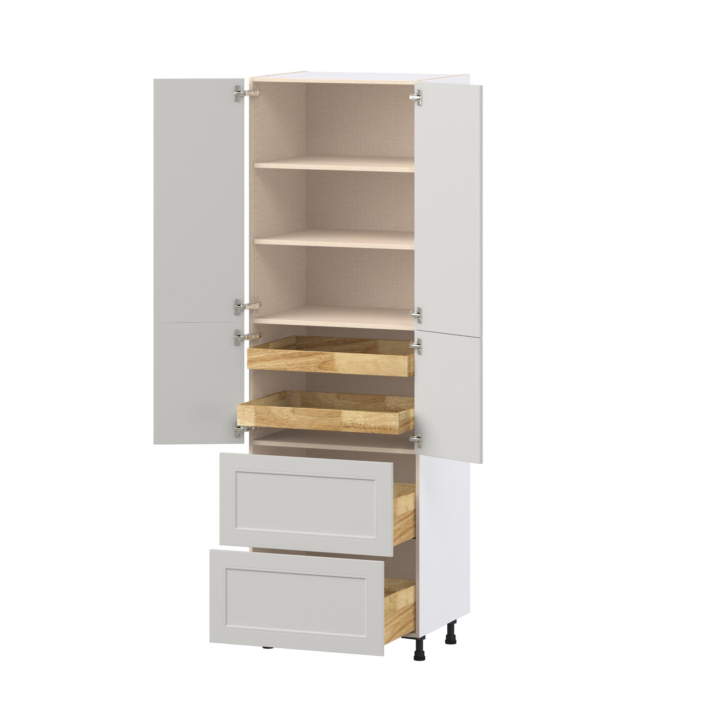 Treat yourself to the refined charm of Lenox shaker-inspired cabinets. Featuring a high-quality premium painted light gray finish, this collection offers sophistication that’s truly built to endure. Crafted from one-piece MDF Studio Design Collection Lenox 30 in. Painted Light Gray Door and Drawer Pantry Cabinet with Inner Pull-Out is designed to resist hairline cracks while the easy-to-clean finish stands up to stains and moisture. Featuring 5-piece doors and dovetail drawer joints, these cabinets offer durability and elegance. This collection combines style with everyday storage solutions.