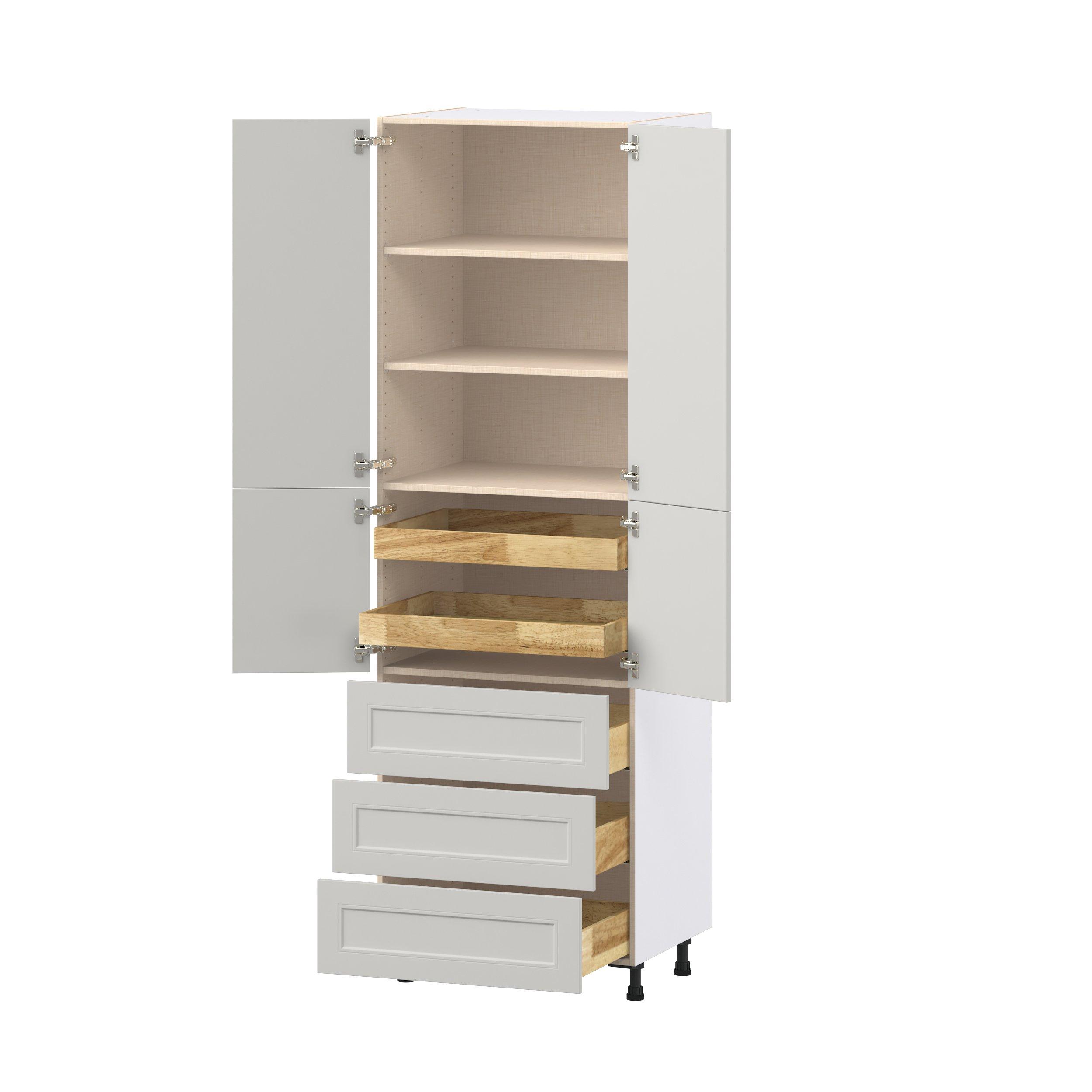 Lenox 30 in. Painted Light Gray Door and Drawer Pantry Cabinet with Inner Pull-Out