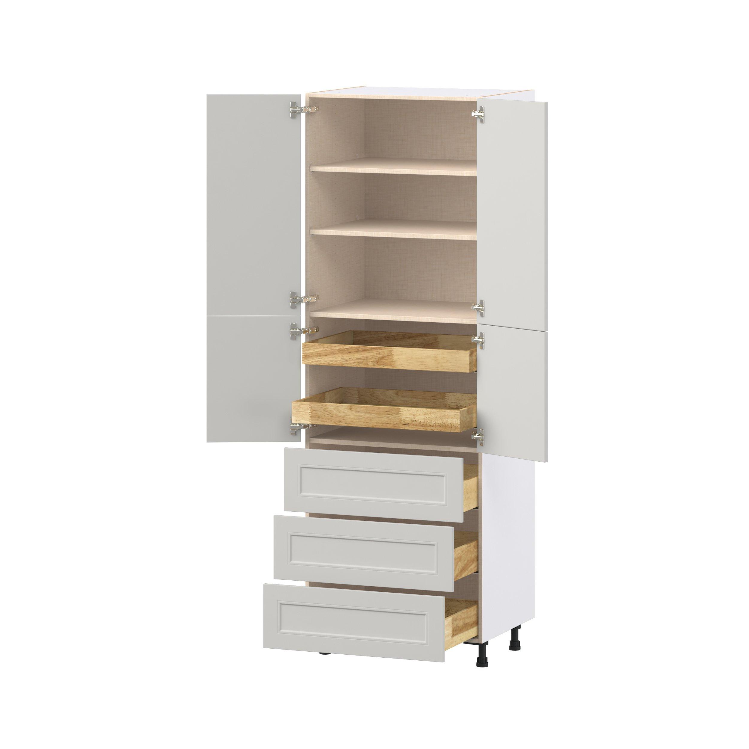 Lenox 30 in. Painted Light Gray Door and Drawer Pantry Cabinet with Inner Pull-Out
