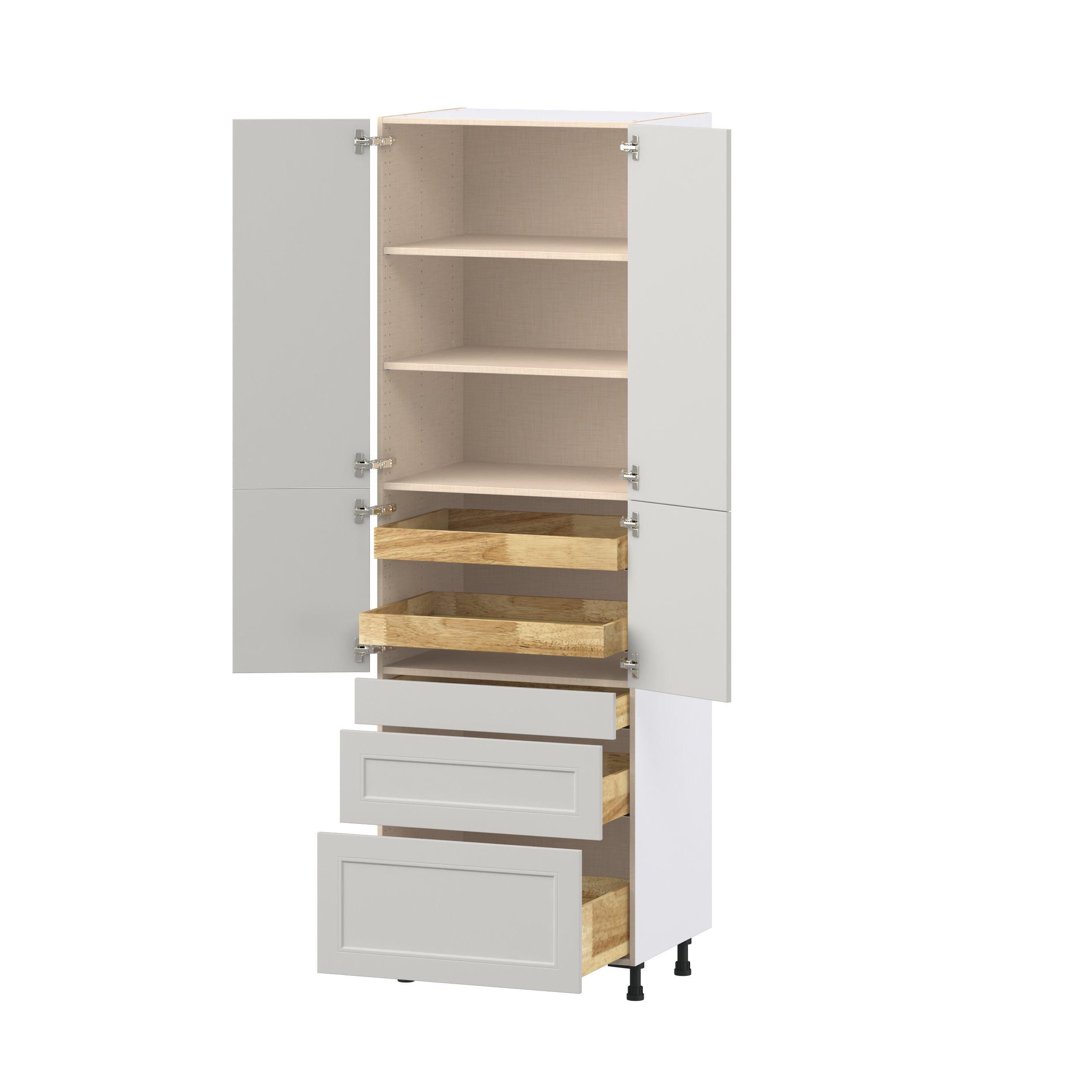 Treat yourself to the refined charm of Lenox shaker-inspired cabinets. Featuring a high-quality premium painted light gray finish, this collection offers sophistication that’s truly built to endure. Crafted from one-piece MDF Studio Design Collection Lenox 30 in. Painted Light Gray Door and Drawer Pantry Cabinet with Inner Pull-Out is designed to resist hairline cracks while the easy-to-clean finish stands up to stains and moisture. Featuring 5-piece doors and dovetail drawer joints, these cabinets offer durability and elegance. This collection combines style with everyday storage solutions.