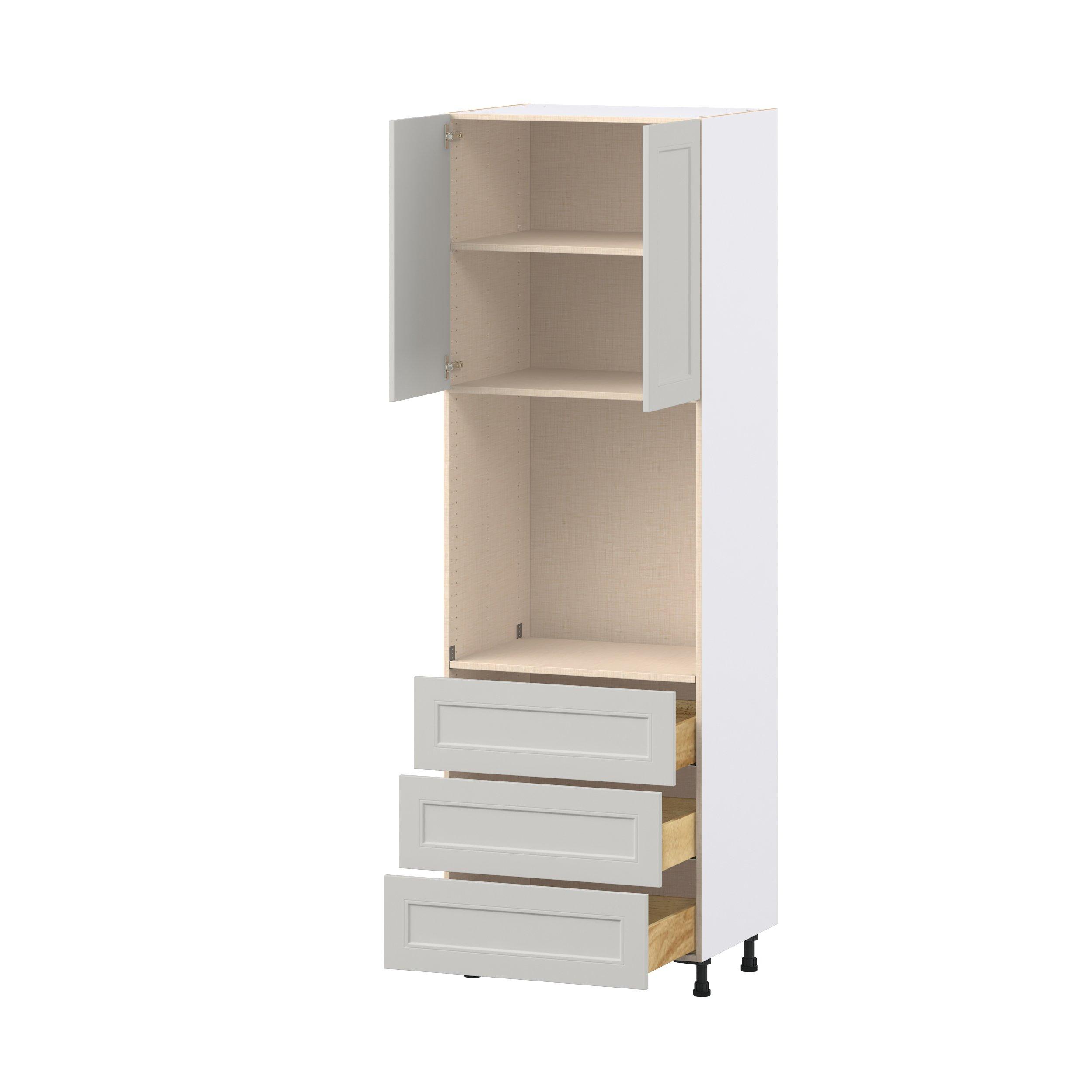 Treat yourself to the refined charm of Lenox shaker-inspired cabinets. Featuring a high-quality premium painted light gray finish, this collection offers sophistication that’s truly built to endure. Crafted from one-piece MDF Studio Design Collection Lenox 30 in. Painted Light Gray Door and Drawer Single Oven Pantry Cabinet is designed to resist hairline cracks while the easy-to-clean finish stands up to stains and moisture. Featuring 5-piece doors and dovetail drawer joints, these cabinets offer durability and elegance. This collection combines style with everyday storage solutions.
