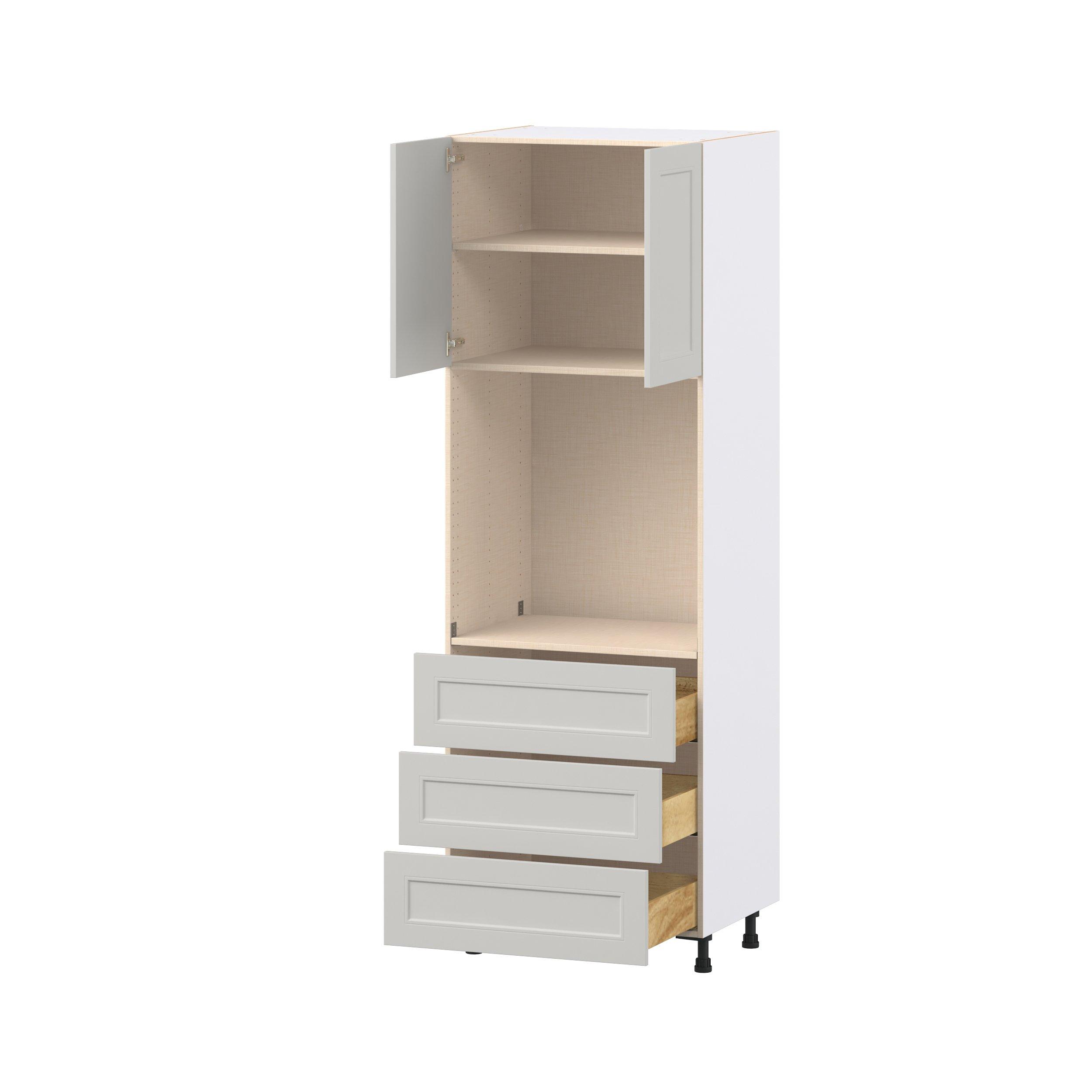 Treat yourself to the refined charm of Lenox shaker-inspired cabinets. Featuring a high-quality premium painted light gray finish, this collection offers sophistication that’s truly built to endure. Crafted from one-piece MDF Studio Design Collection Lenox 30 in. Painted Light Gray Door and Drawer Single Oven Pantry Cabinet is designed to resist hairline cracks while the easy-to-clean finish stands up to stains and moisture. Featuring 5-piece doors and dovetail drawer joints, these cabinets offer durability and elegance. This collection combines style with everyday storage solutions.