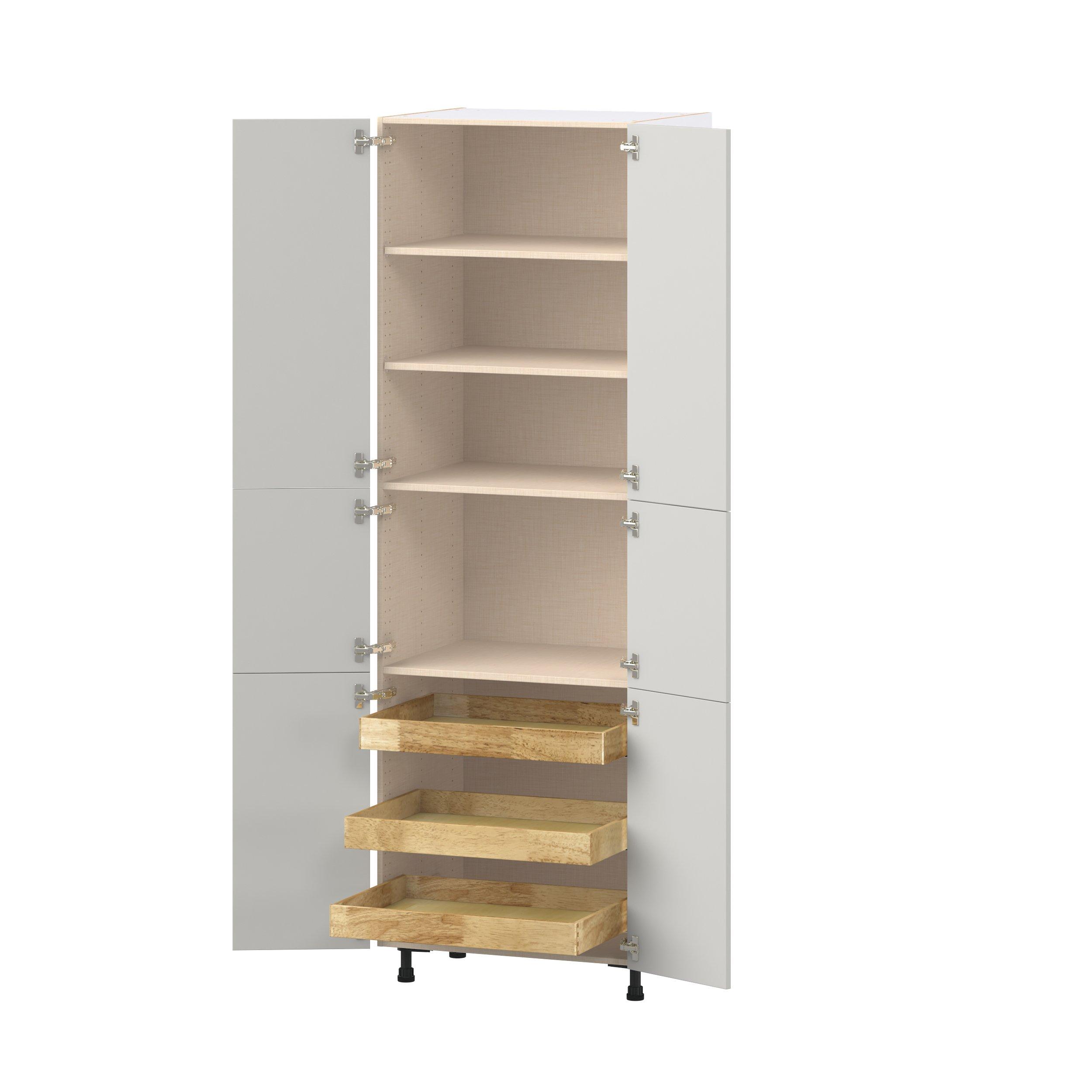 Treat yourself to the refined charm of Lenox shaker-inspired cabinets. Featuring a high-quality premium painted light gray finish, this collection offers sophistication that’s truly built to endure. Crafted from one-piece MDF Studio Design Collection Lenox 30 in. Painted Light Gray Pantry Cabinet with Inner Pull-Out Drawer is designed to resist hairline cracks while the easy-to-clean finish stands up to stains and moisture. Featuring 5-piece doors and dovetail drawer joints, these cabinets offer durability and elegance. This collection combines style with everyday storage solutions.