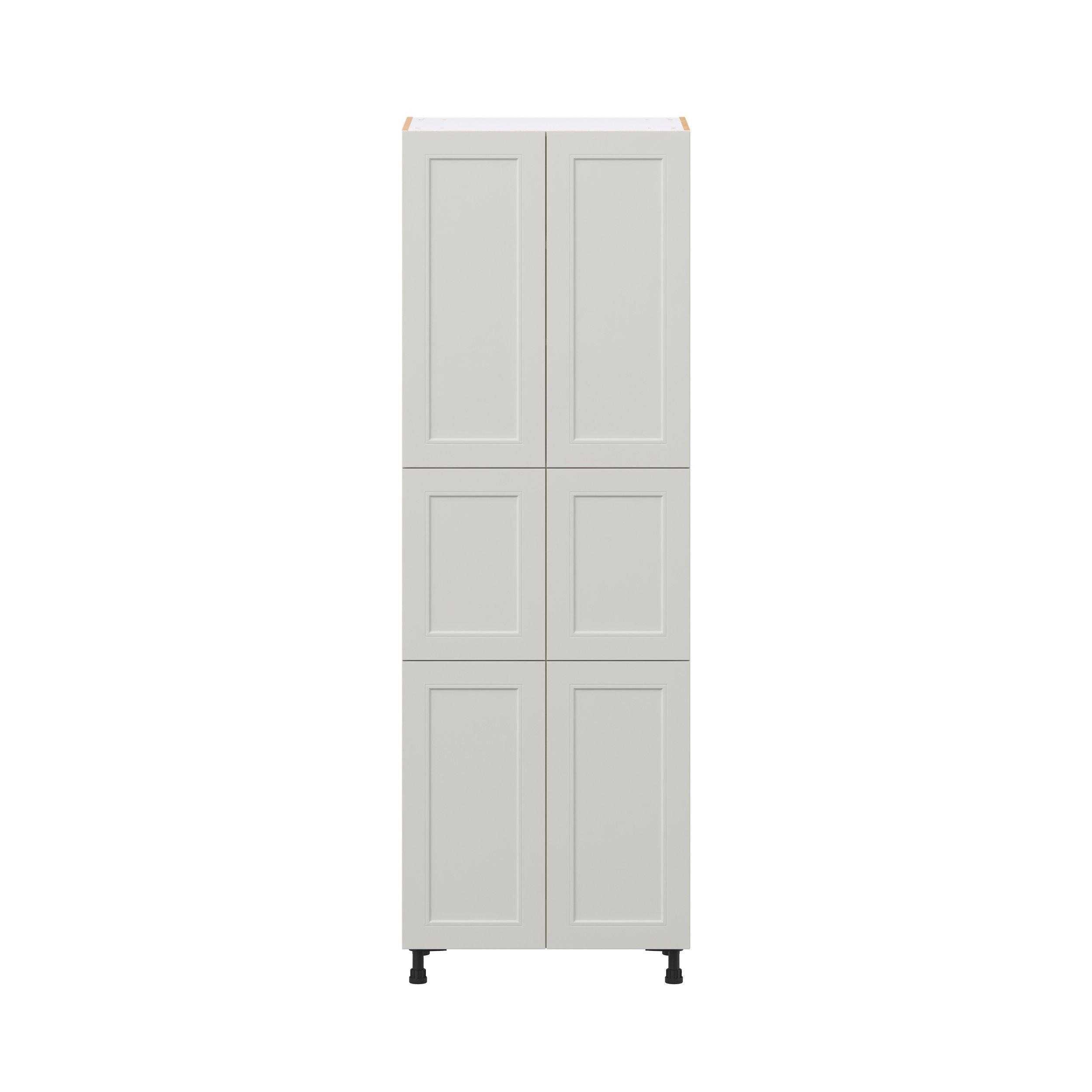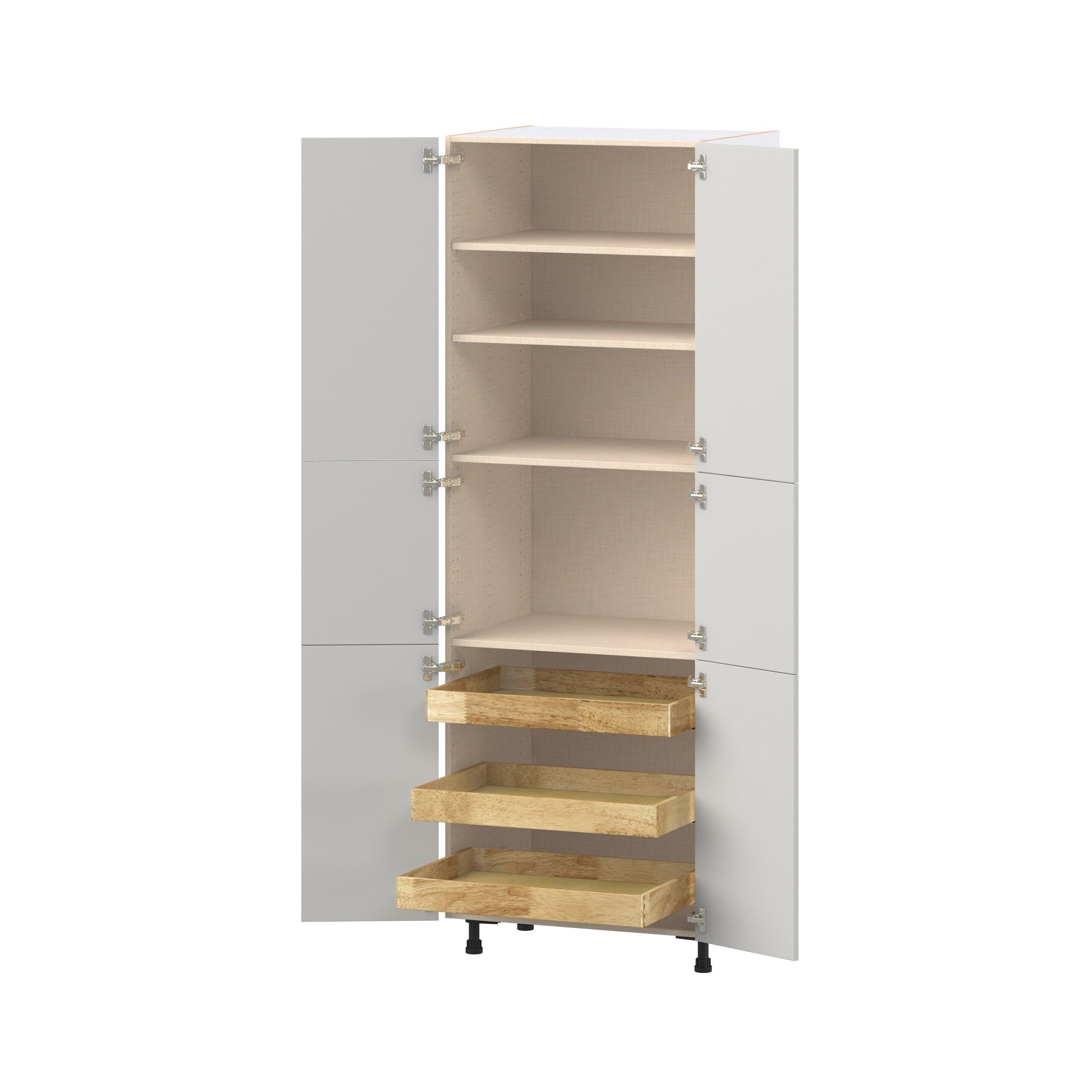 Treat yourself to the refined charm of Lenox shaker-inspired cabinets. Featuring a high-quality premium painted light gray finish, this collection offers sophistication that’s truly built to endure. Crafted from one-piece MDF Studio Design Collection Lenox 30 in. Painted Light Gray Pantry Cabinet with Inner Pull-Out Drawer is designed to resist hairline cracks while the easy-to-clean finish stands up to stains and moisture. Featuring 5-piece doors and dovetail drawer joints, these cabinets offer durability and elegance. This collection combines style with everyday storage solutions.
