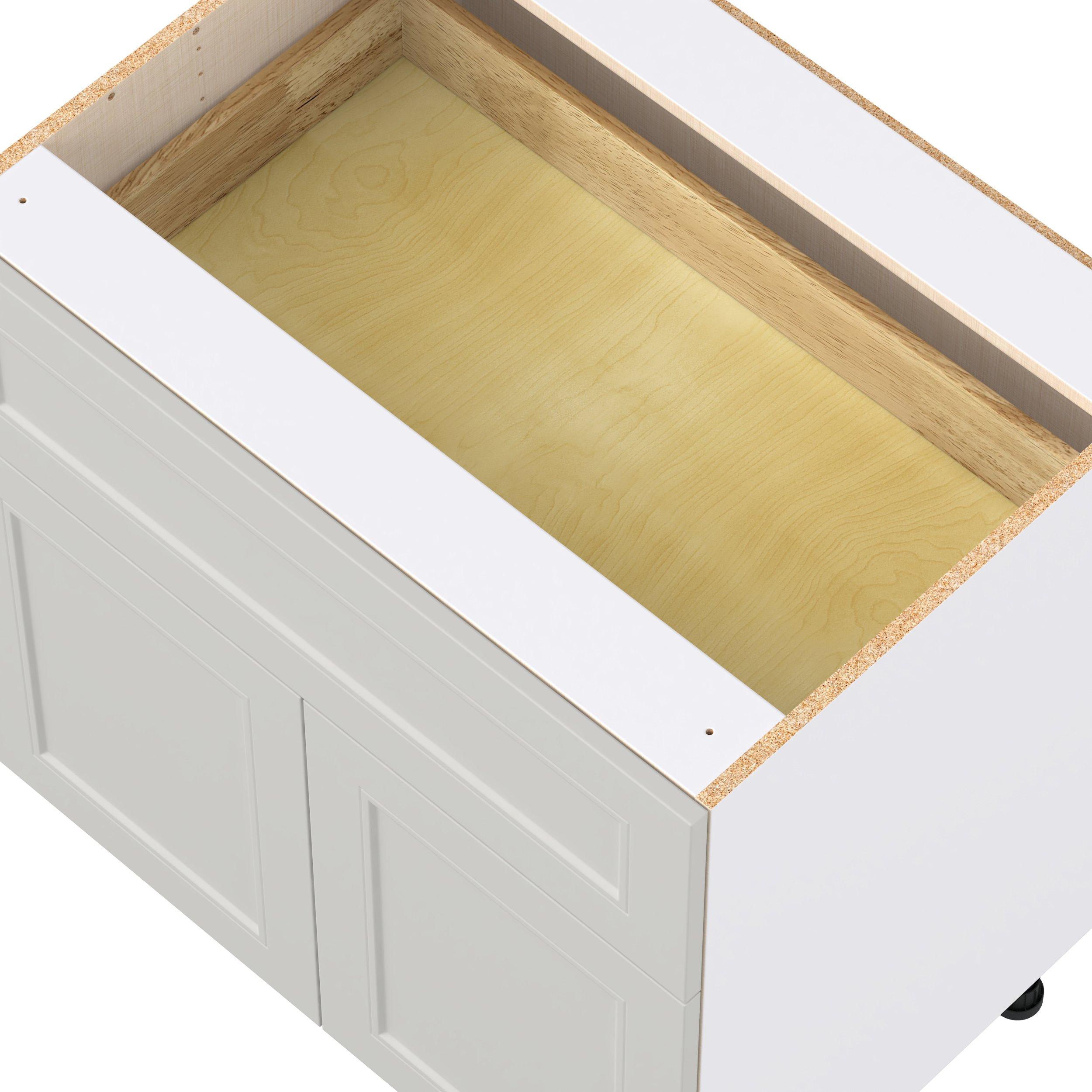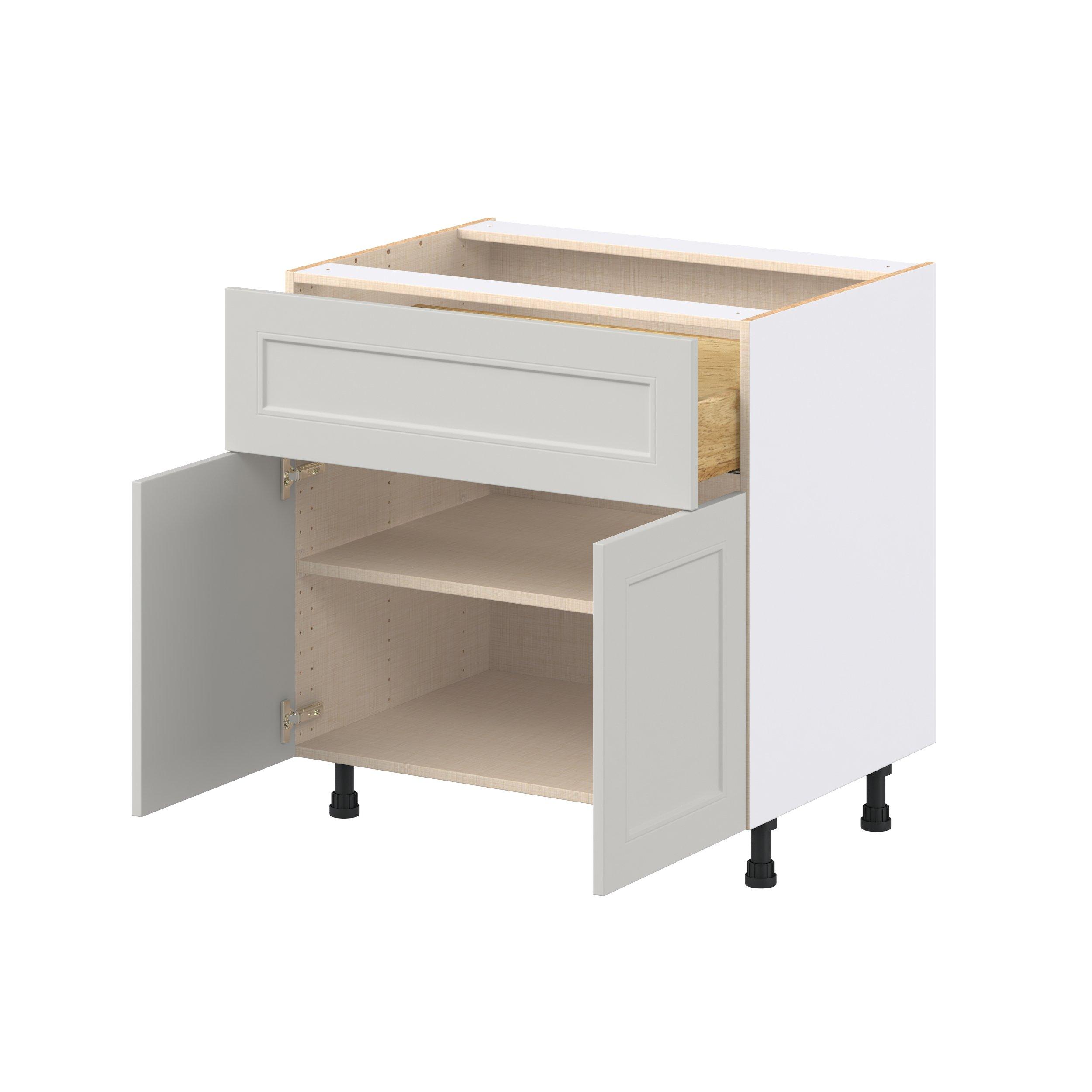 Treat yourself to the refined charm of Lenox shaker-inspired cabinets. Featuring a high-quality premium painted light gray finish, this collection offers sophistication that’s truly built to endure. Crafted from one-piece MDF Studio Design Collection Lenox 33 in. Painted Light Gray Door and Drawer Base Cabinet is designed to resist hairline cracks while the easy-to-clean finish stands up to stains and moisture. Featuring 5-piece doors and dovetail drawer joints, these cabinets offer durability and elegance. This collection combines style with everyday storage solutions.
