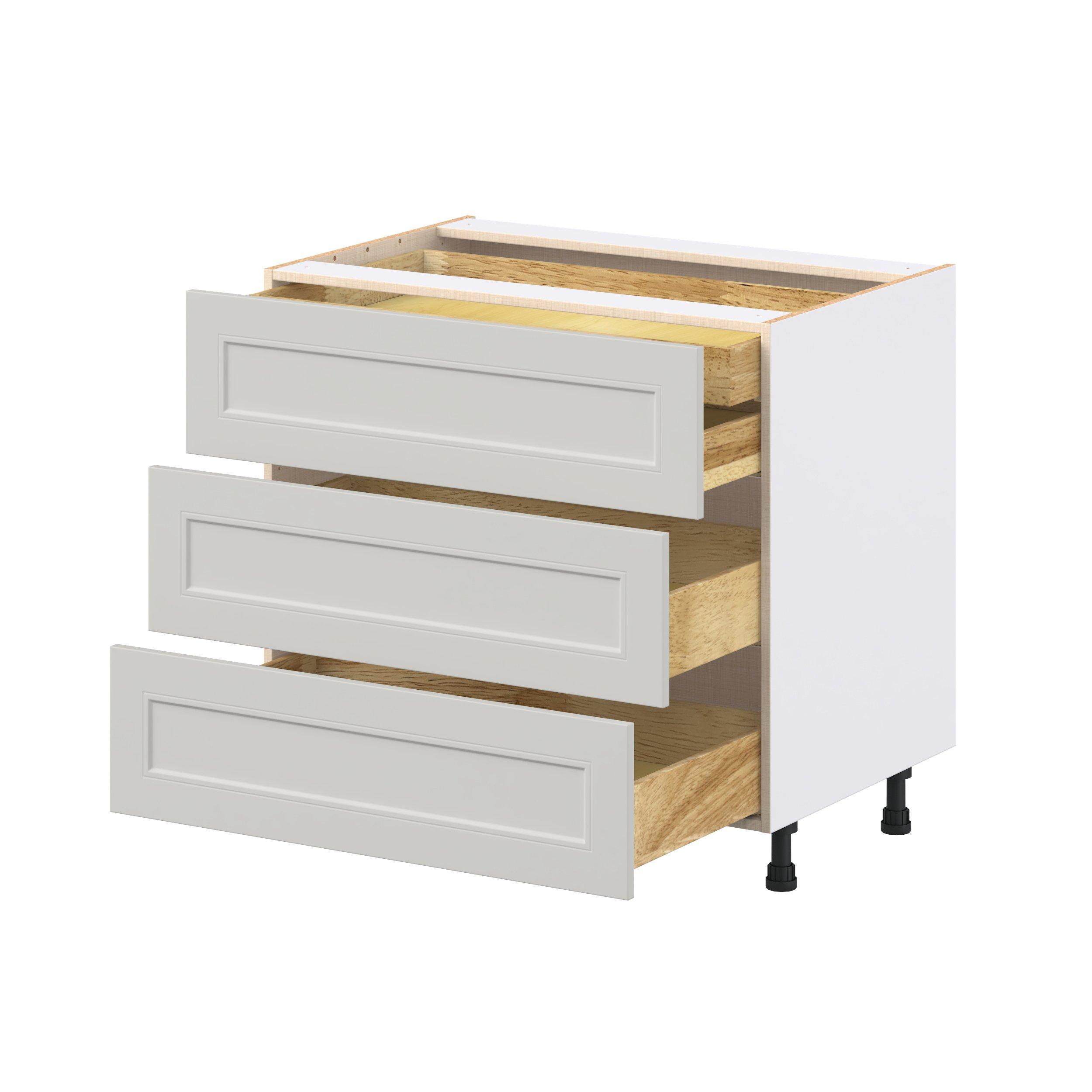 Treat yourself to the refined charm of Lenox shaker-inspired cabinets. Featuring a high-quality premium painted light gray finish, this collection offers sophistication that’s truly built to endure. Crafted from one-piece MDF Studio Design Collection Lenox 36 in. Painted Light Gray Base Cabinet with Inner Pull-Out Drawer is designed to resist hairline cracks while the easy-to-clean finish stands up to stains and moisture. Featuring 5-piece doors and dovetail drawer joints, these cabinets offer durability and elegance. This collection combines style with everyday storage solutions.