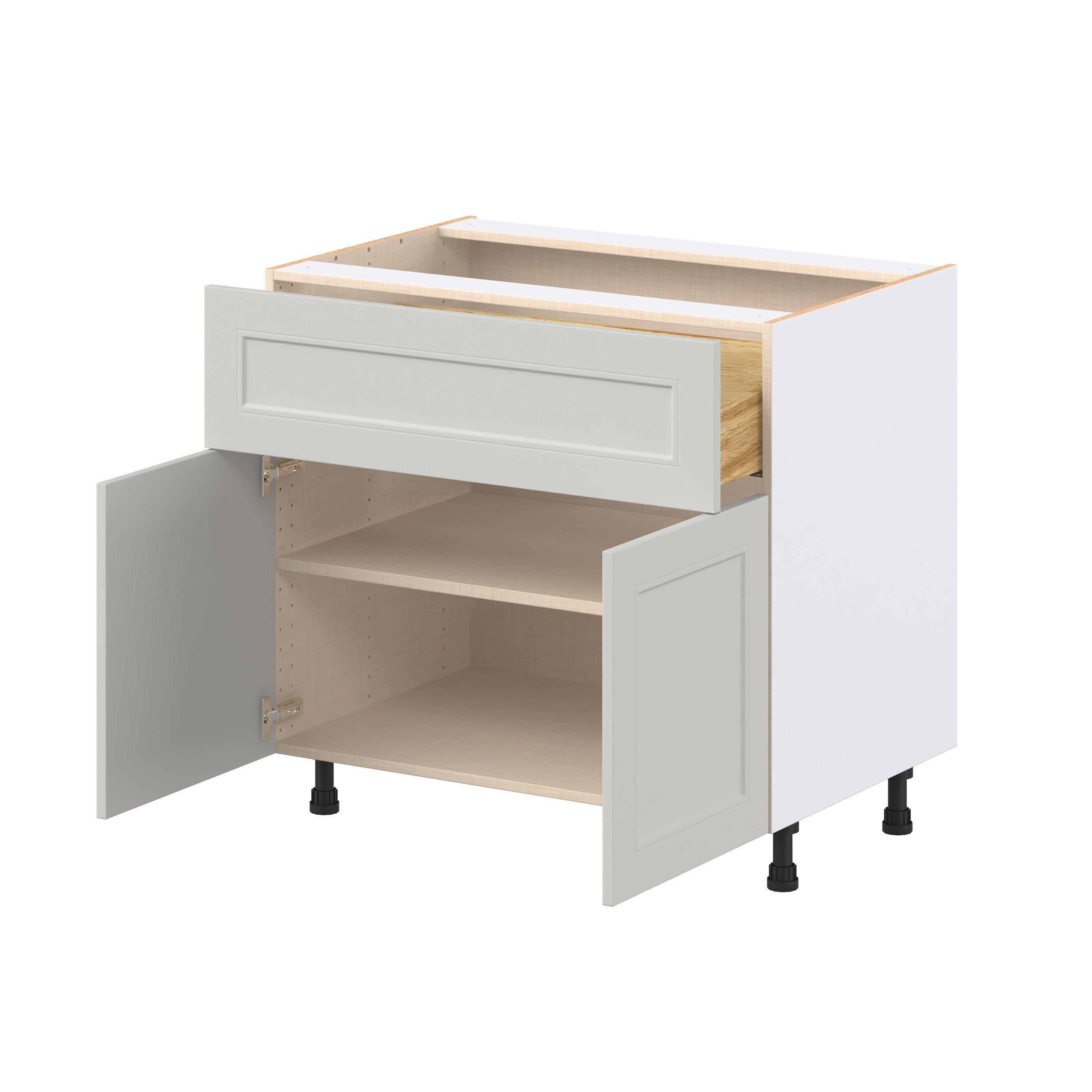 Treat yourself to the refined charm of Lenox shaker-inspired cabinets. Featuring a high-quality premium painted light gray finish, this collection offers sophistication that’s truly built to endure. Crafted from one-piece MDF Studio Design Collection Lenox 36 in. Painted Light Gray Door and Drawer Base Cabinet is designed to resist hairline cracks while the easy-to-clean finish stands up to stains and moisture. Featuring 5-piece doors and dovetail drawer joints, these cabinets offer durability and elegance. This collection combines style with everyday storage solutions.