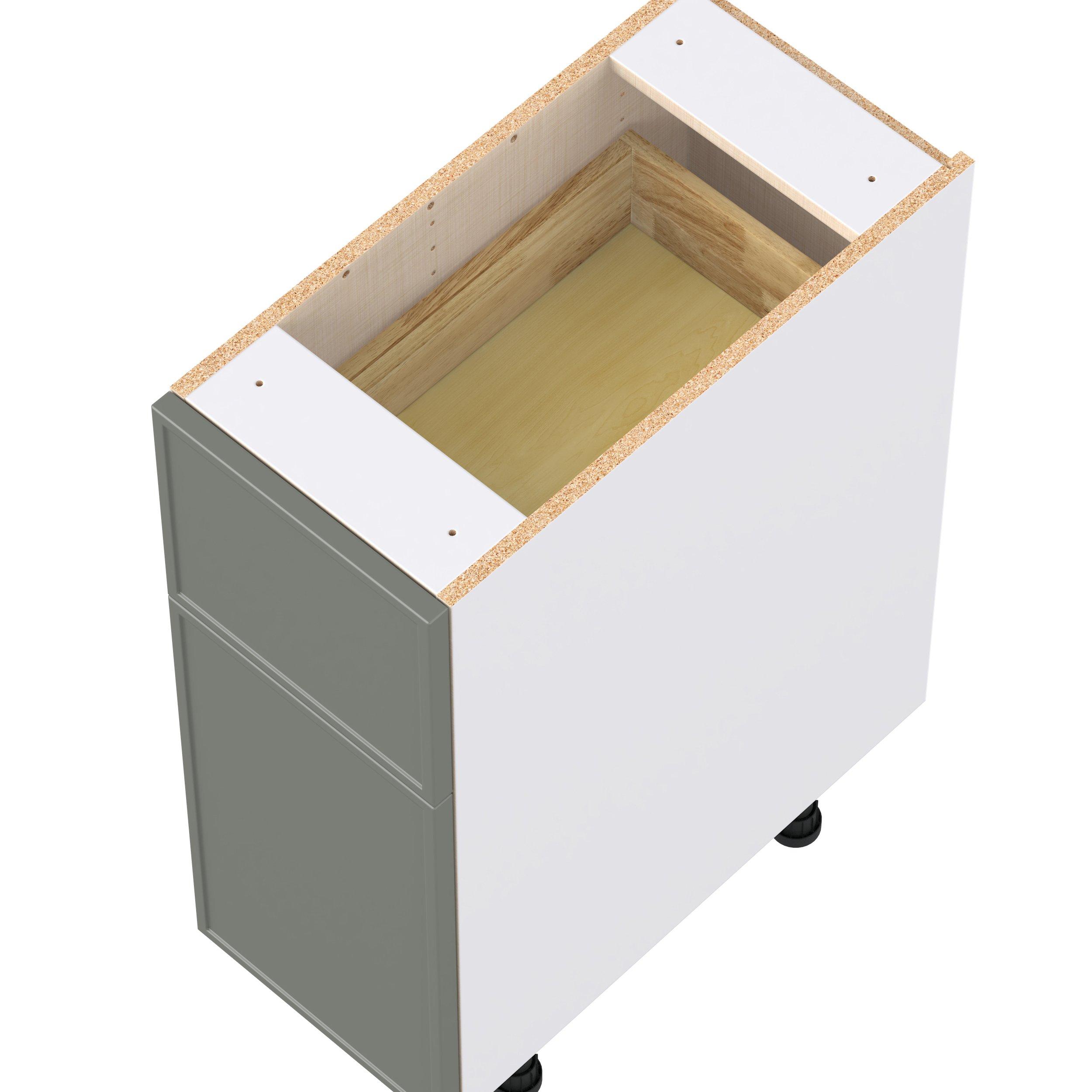 Enjoy a modern twist on a classic with Linden slim shaker cabinets. Available in premium-painted fresh washed linen and earthy moss green finishes, this collection exudes warmth and creates an inviting atmosphere Crafted from one-piece MDF Studio Design Collection Linden 12 in. Painted Moss Green Door and Drawer Base Cabinet is designed to resist hairline cracks while the easy-to-clean finish stands up to stains and moisture. Featuring 5-piece doors and dovetail drawer joints, these cabinets offer durability and elegance. This collection combines style with everyday storage solutions.