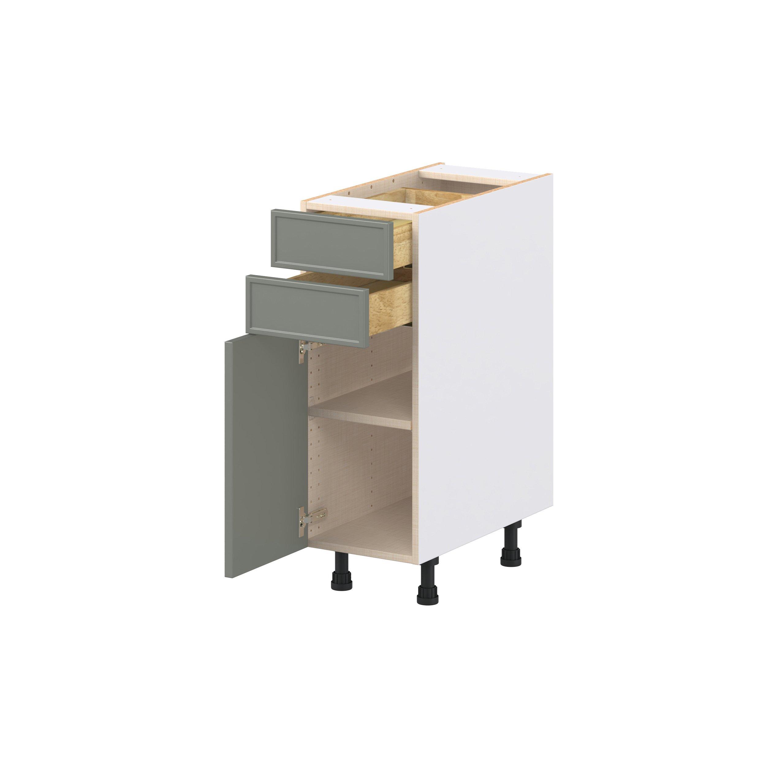 Enjoy a modern twist on a classic with Linden slim shaker cabinets. Available in premium-painted fresh washed linen and earthy moss green finishes, this collection exudes warmth and creates an inviting atmosphere Crafted from one-piece MDF Studio Design Collection Linden 12 in. Painted Moss Green Door and Drawer Base Cabinet is designed to resist hairline cracks while the easy-to-clean finish stands up to stains and moisture. Featuring 5-piece doors and dovetail drawer joints, these cabinets offer durability and elegance. This collection combines style with everyday storage solutions.