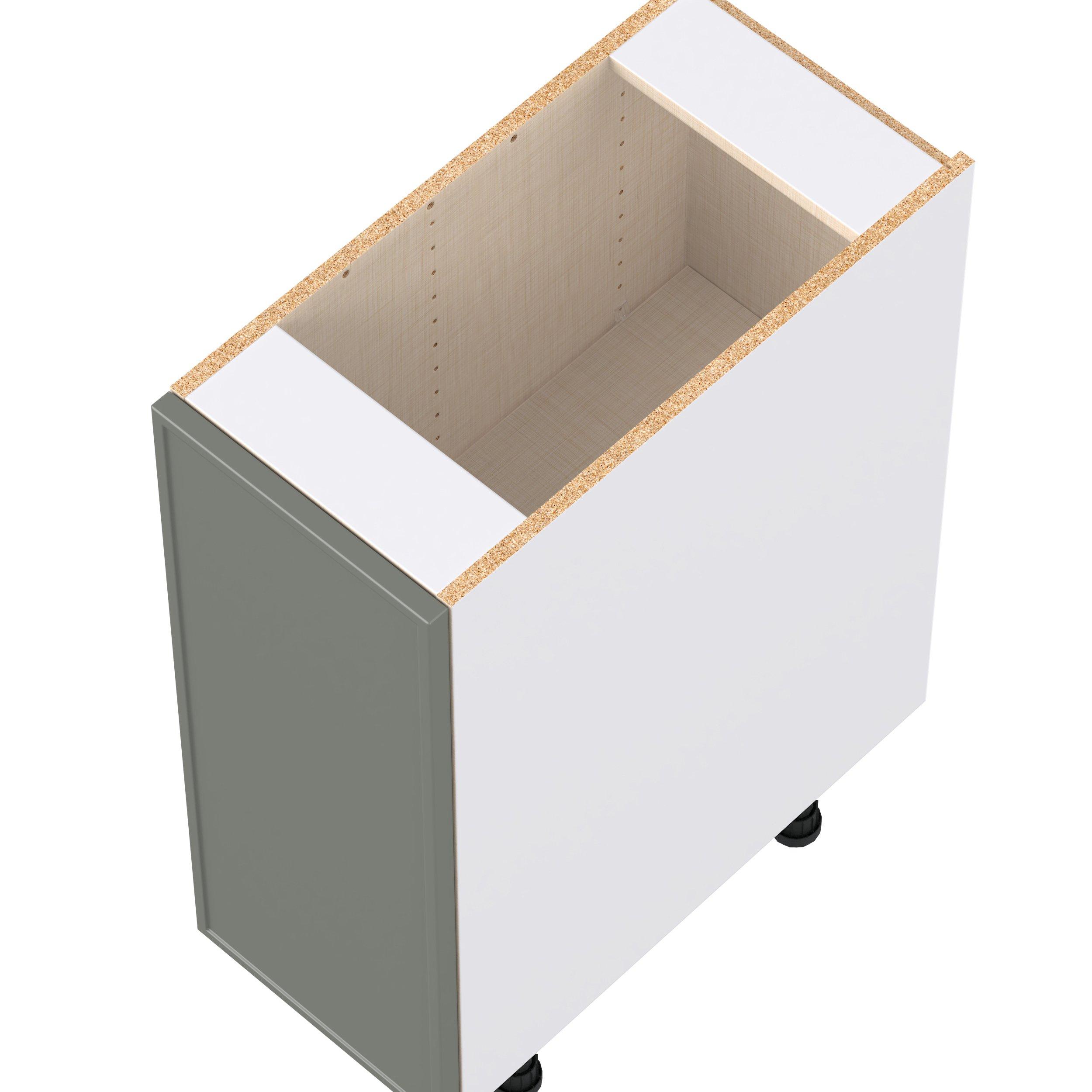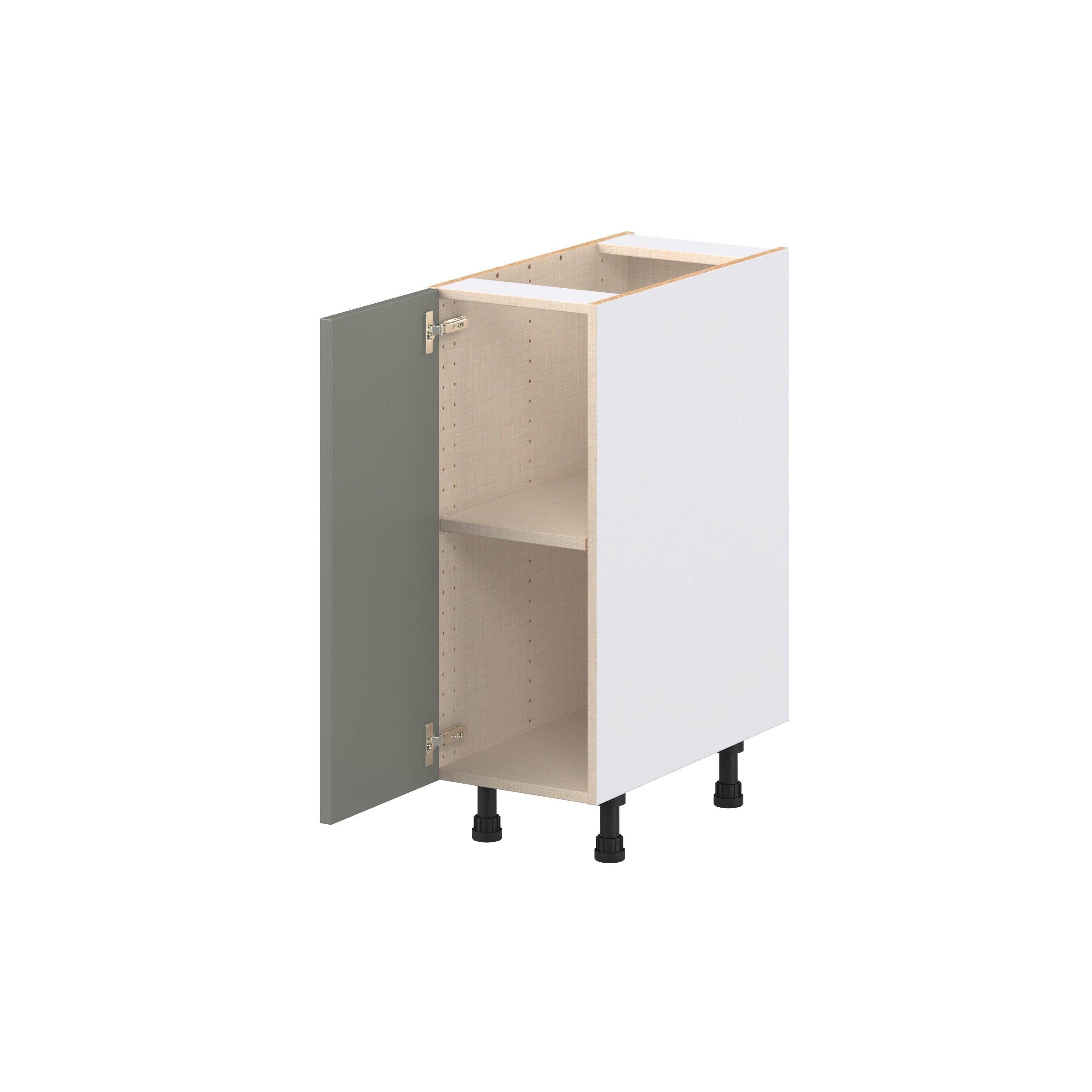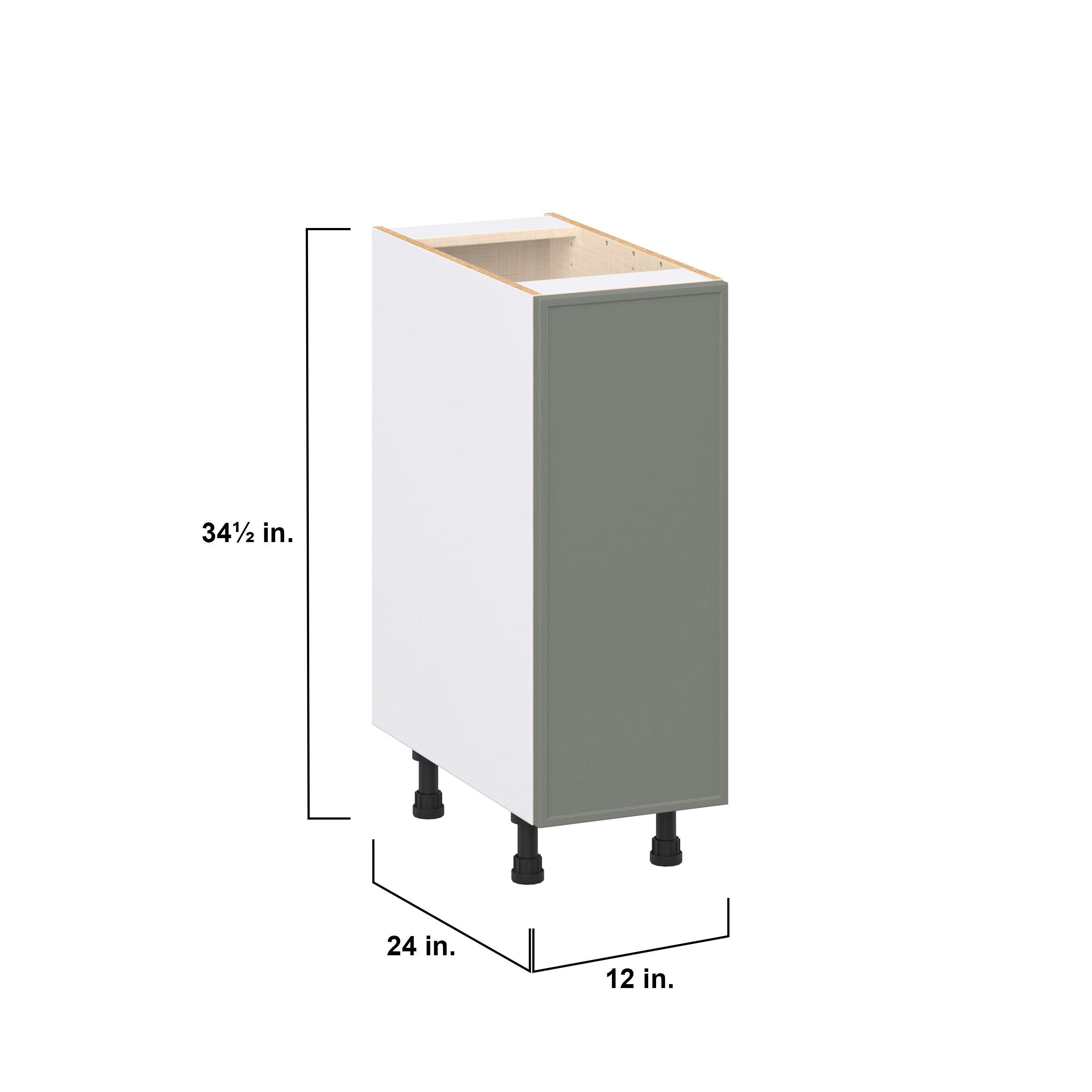 Enjoy a modern twist on a classic with Linden slim shaker cabinets. Available in premium-painted fresh washed linen and earthy moss green finishes, this collection exudes warmth and creates an inviting atmosphere Crafted from one-piece MDF Studio Design Collection Linden 12 in. Painted Moss Green Door Base Cabinet is designed to resist hairline cracks while the easy-to-clean finish stands up to stains and moisture. Featuring 5-piece doors and dovetail drawer joints, these cabinets offer durability and elegance. This collection combines style with everyday storage solutions.