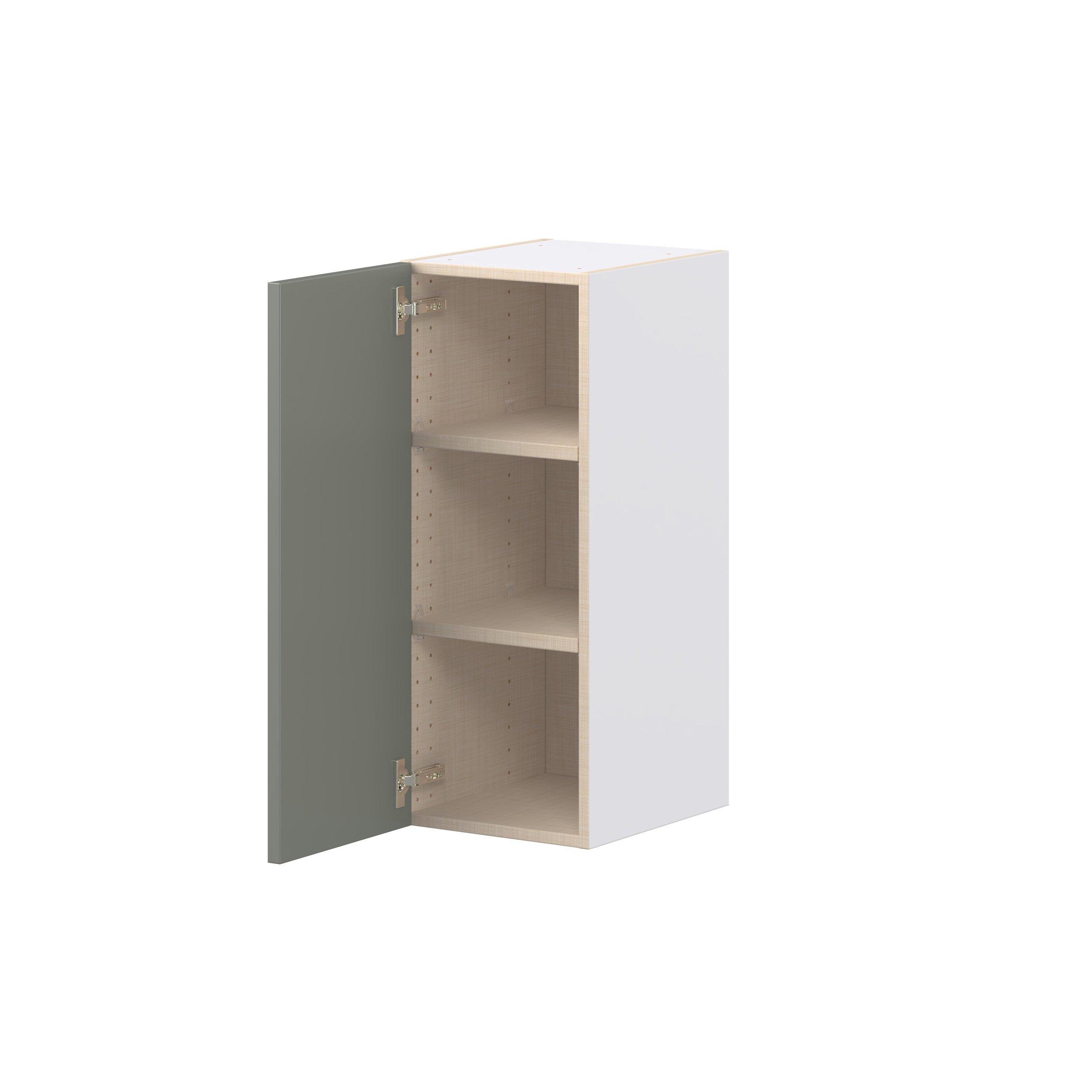 Enjoy a modern twist on a classic with Linden slim shaker cabinets. Available in premium-painted fresh washed linen and earthy moss green finishes, this collection exudes warmth and creates an inviting atmosphere Crafted from one-piece MDF Studio Design Collection Linden 12 in. Painted Moss Green Door Wall Cabinet is designed to resist hairline cracks while the easy-to-clean finish stands up to stains and moisture. Featuring 5-piece doors and dovetail drawer joints, these cabinets offer durability and elegance. This collection combines style with everyday storage solutions.