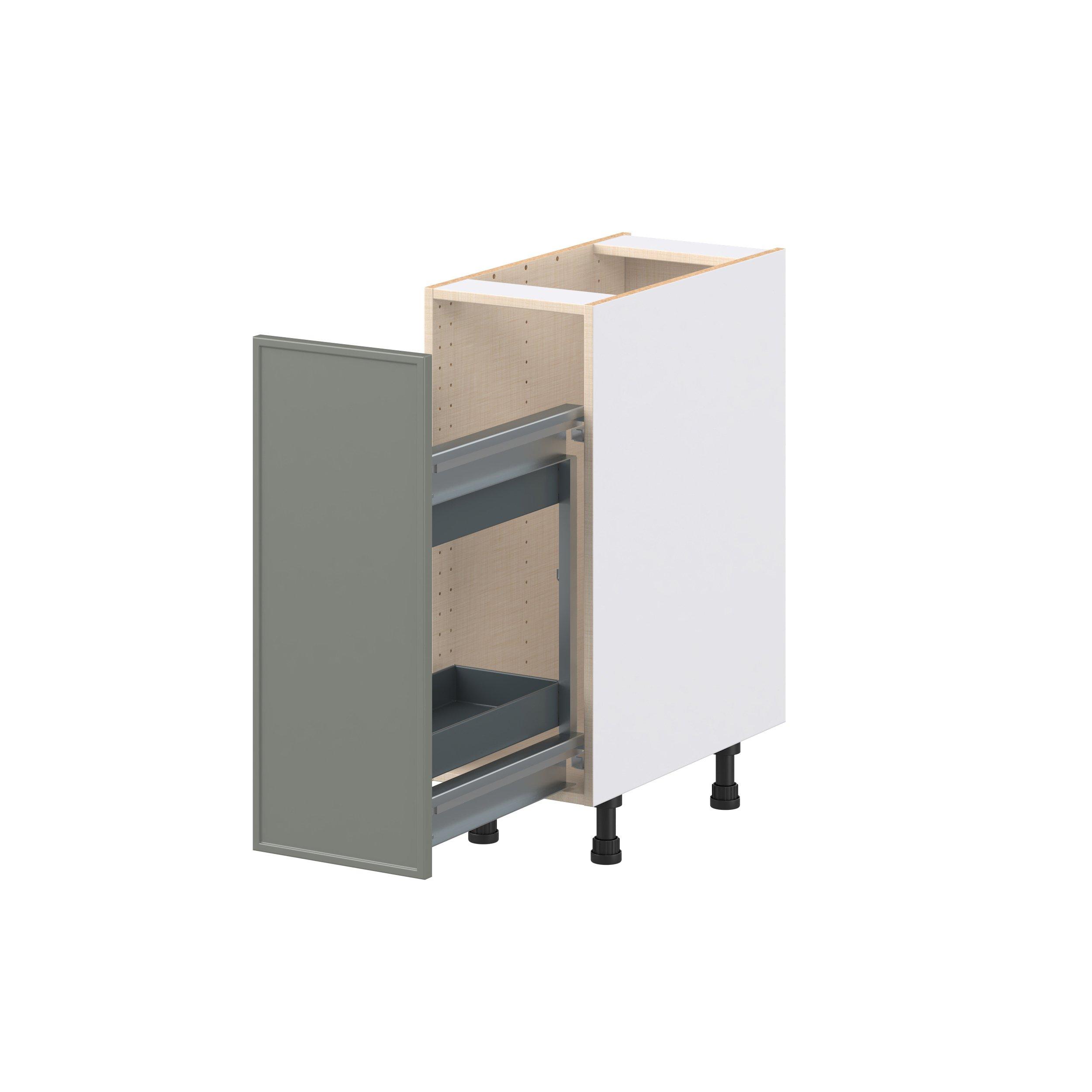 Enjoy a modern twist on a classic with Linden slim shaker cabinets. Available in premium-painted fresh washed linen and earthy moss green finishes, this collection exudes warmth and creates an inviting atmosphere Crafted from one-piece MDF Studio Design Collection Linden 12 in. Painted Moss Green Spice Rack Pull-Out Base Cabinet is designed to resist hairline cracks while the easy-to-clean finish stands up to stains and moisture. Featuring 5-piece doors and dovetail drawer joints, these cabinets offer durability and elegance. This collection combines style with everyday storage solutions.