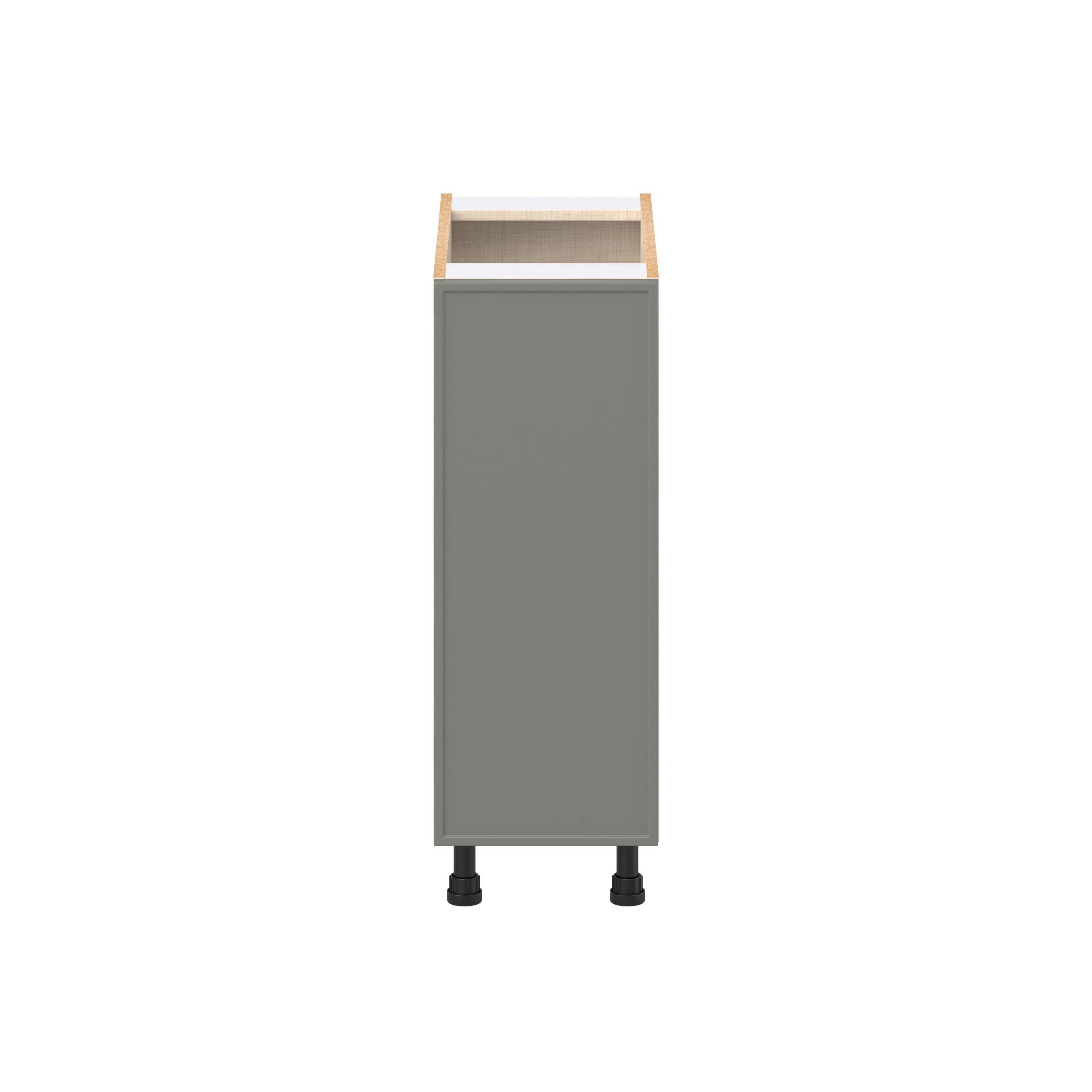 Enjoy a modern twist on a classic with Linden slim shaker cabinets. Available in premium-painted fresh washed linen and earthy moss green finishes, this collection exudes warmth and creates an inviting atmosphere Crafted from one-piece MDF Studio Design Collection Linden 12 in. Painted Moss Green Spice Rack Pull-Out Base Cabinet is designed to resist hairline cracks while the easy-to-clean finish stands up to stains and moisture. Featuring 5-piece doors and dovetail drawer joints, these cabinets offer durability and elegance. This collection combines style with everyday storage solutions.
