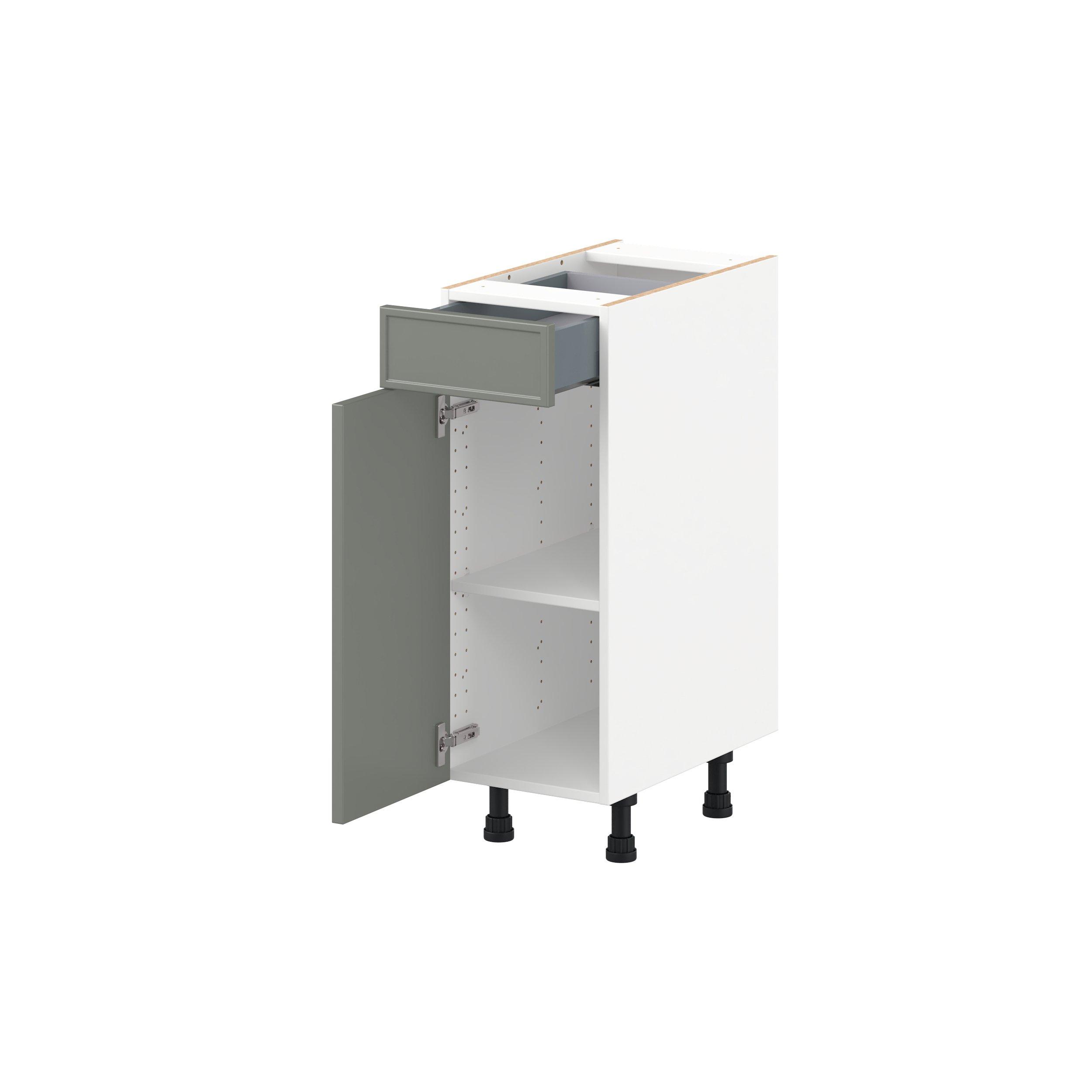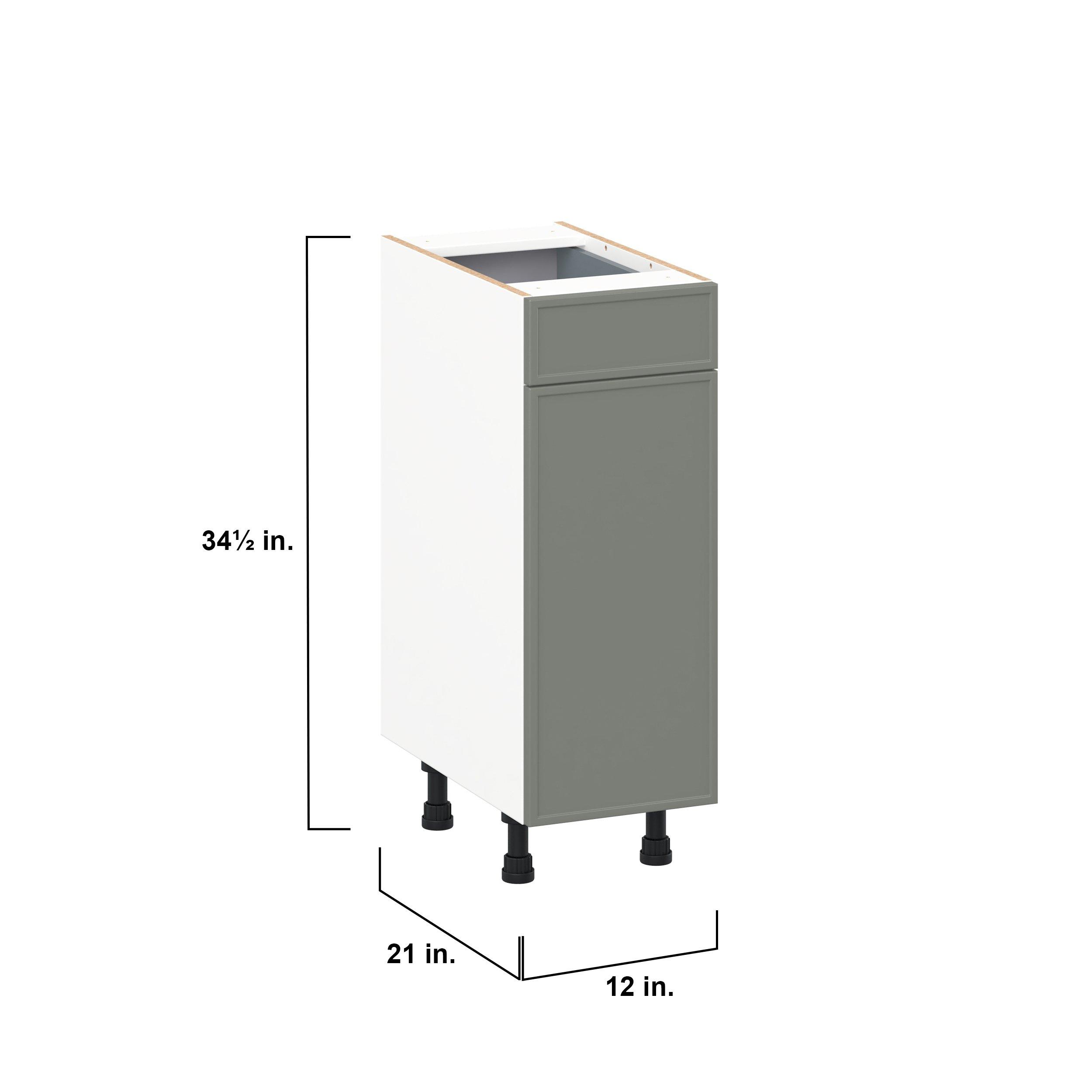 Enjoy a modern twist on a classic with Linden slim shaker cabinets. Available in premium-painted fresh washed linen and earthy moss green finishes, this collection exudes warmth and creates an inviting atmosphere Crafted from one-piece MDF Studio Design Collection Linden 12 in. Painted Moss Green Vanity Door and Drawer Base Cabinet - ADA is designed to resist hairline cracks while the easy-to-clean finish stands up to stains and moisture. Featuring 5-piece doors and dovetail drawer joints, these cabinets offer durability and elegance. This collection combines style with everyday storage solutions.