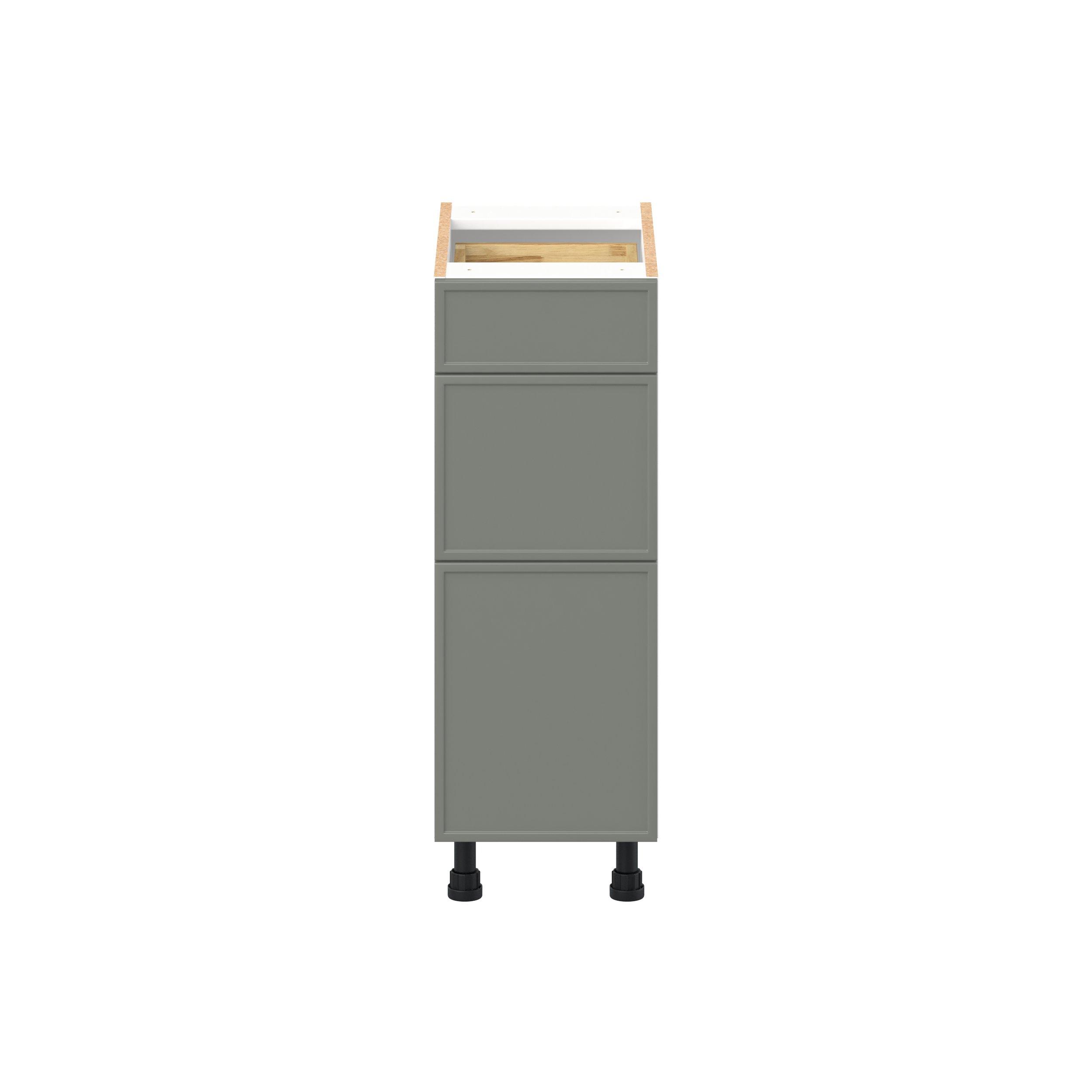 Enjoy a modern twist on a classic with Linden slim shaker cabinets. Available in premium-painted fresh washed linen and earthy moss green finishes, this collection exudes warmth and creates an inviting atmosphere Crafted from one-piece MDF Studio Design Collection Linden 12 in. Painted Moss Green Vanity Drawer Base Cabinet - ADA is designed to resist hairline cracks while the easy-to-clean finish stands up to stains and moisture. Featuring 5-piece doors and dovetail drawer joints, these cabinets offer durability and elegance. This collection combines style with everyday storage solutions.