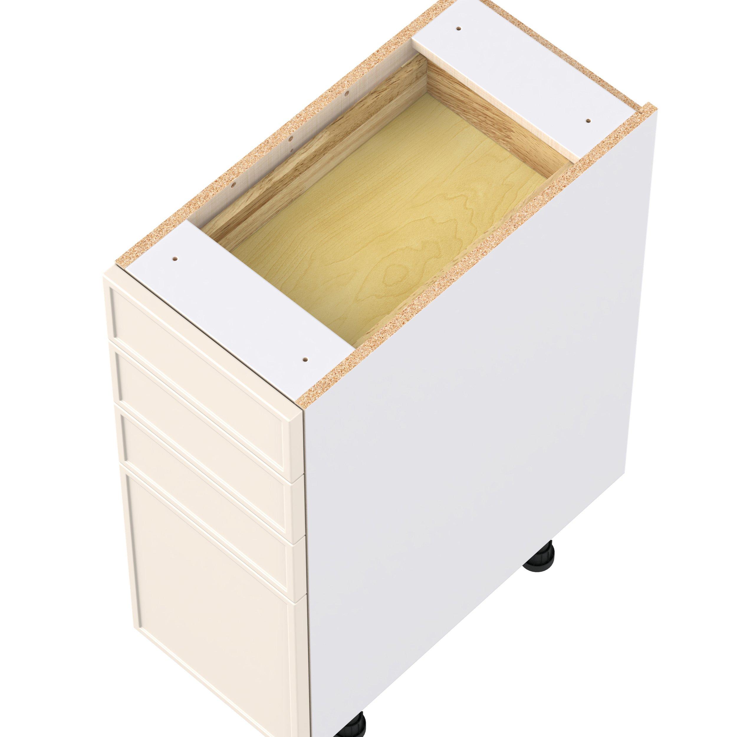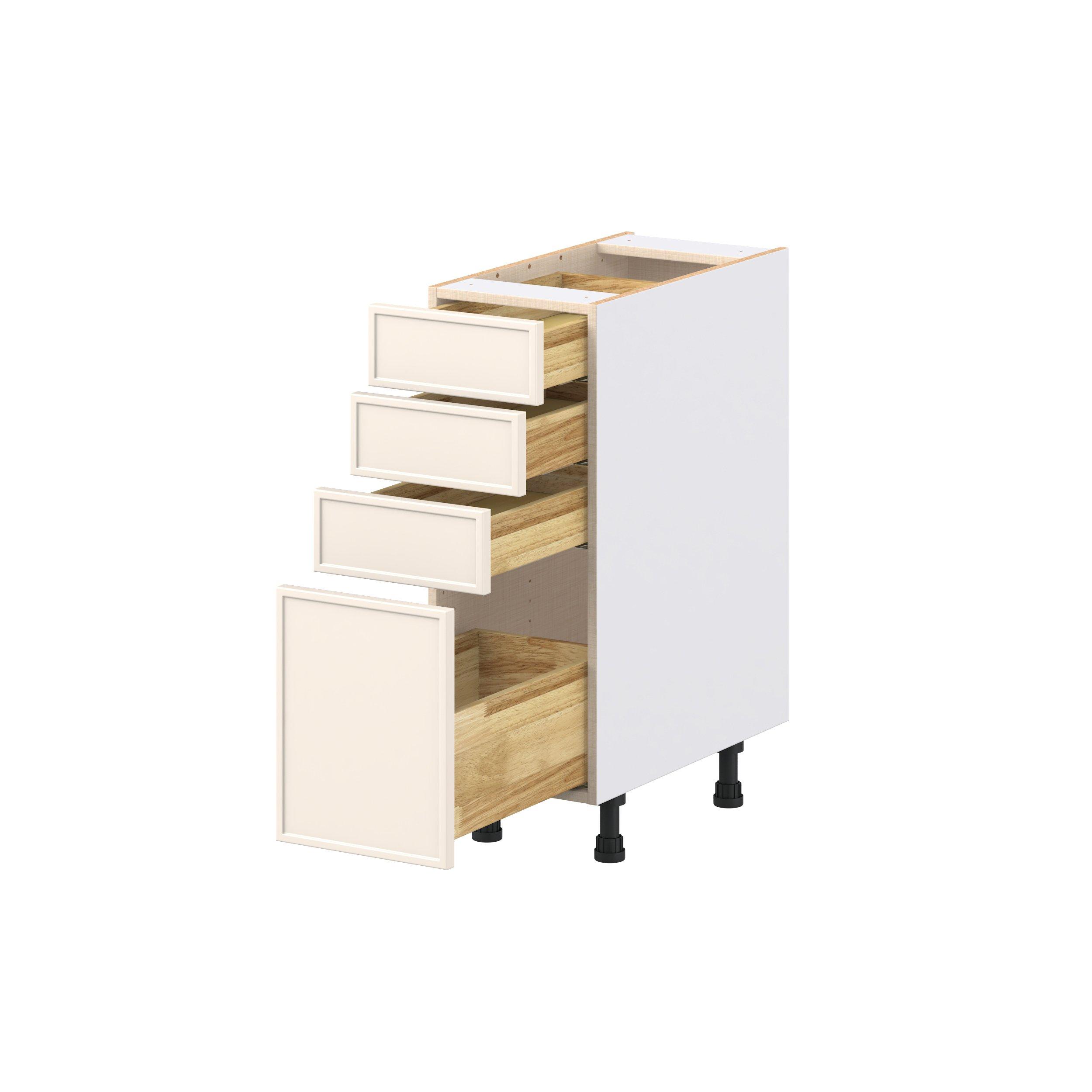 Enjoy a modern twist on a classic with Linden slim shaker cabinets. Available in premium-painted fresh washed linen and earthy moss green finishes, this collection exudes warmth and creates an inviting atmosphere Crafted from one-piece MDF Studio Design Collection Linden 12 in. Painted Washed Linen Drawer Base Cabinet is designed to resist hairline cracks while the easy-to-clean finish stands up to stains and moisture. Featuring 5-piece doors and dovetail drawer joints, these cabinets offer durability and elegance. This collection combines style with everyday storage solutions.