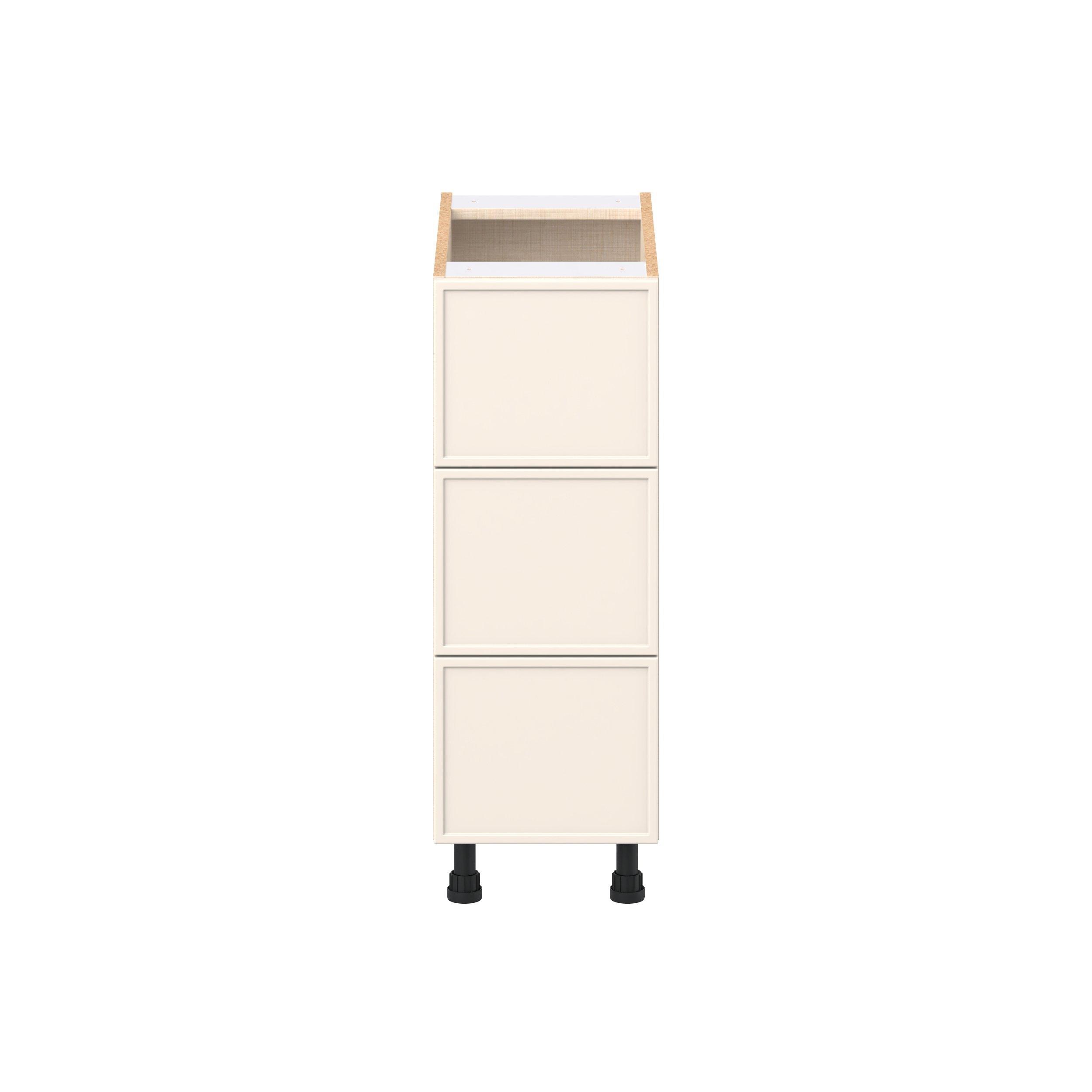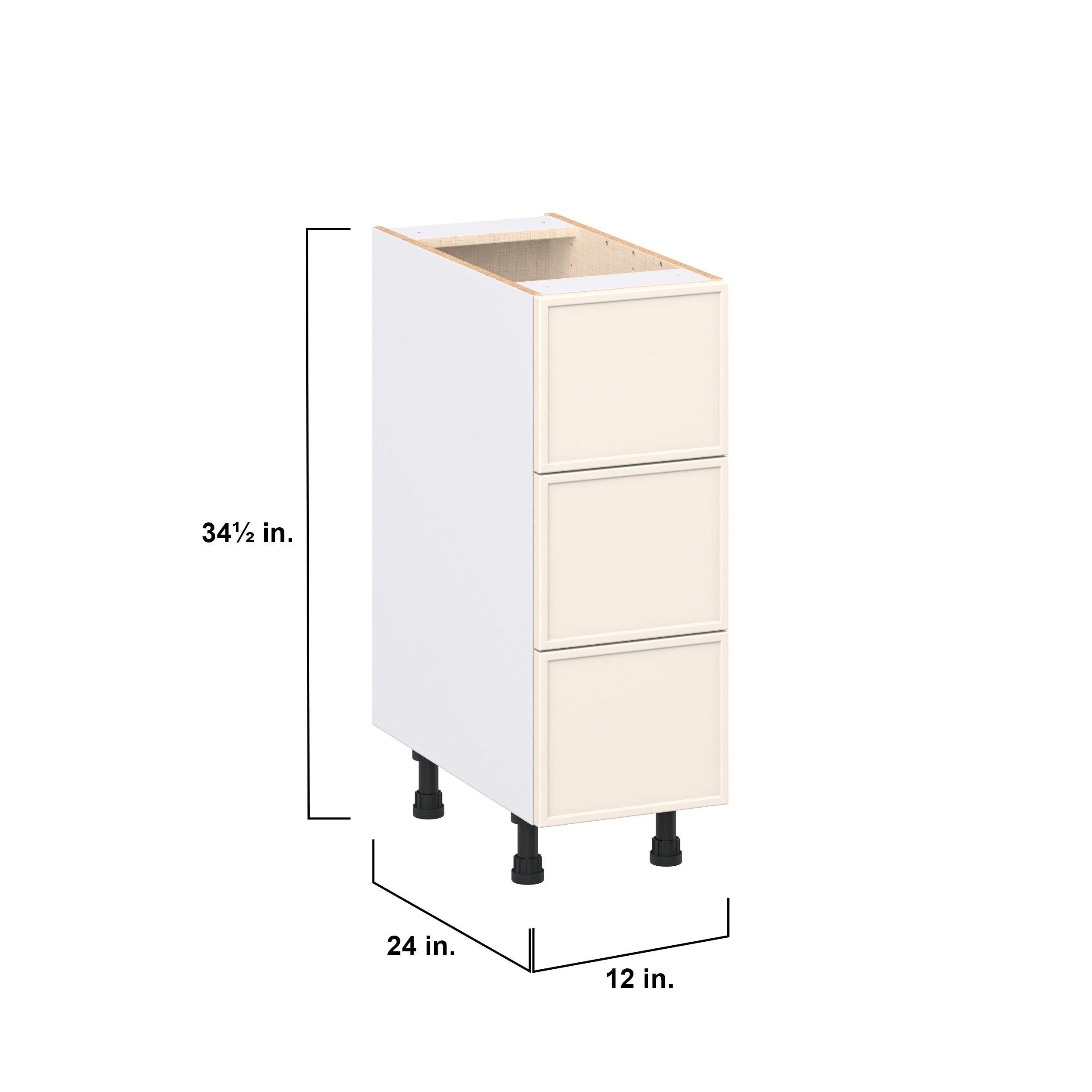 Enjoy a modern twist on a classic with Linden slim shaker cabinets. Available in premium-painted fresh washed linen and earthy moss green finishes, this collection exudes warmth and creates an inviting atmosphere Crafted from one-piece MDF Studio Design Collection Linden 12 in. Painted Washed Linen Drawer Base Cabinet is designed to resist hairline cracks while the easy-to-clean finish stands up to stains and moisture. Featuring 5-piece doors and dovetail drawer joints, these cabinets offer durability and elegance. This collection combines style with everyday storage solutions.