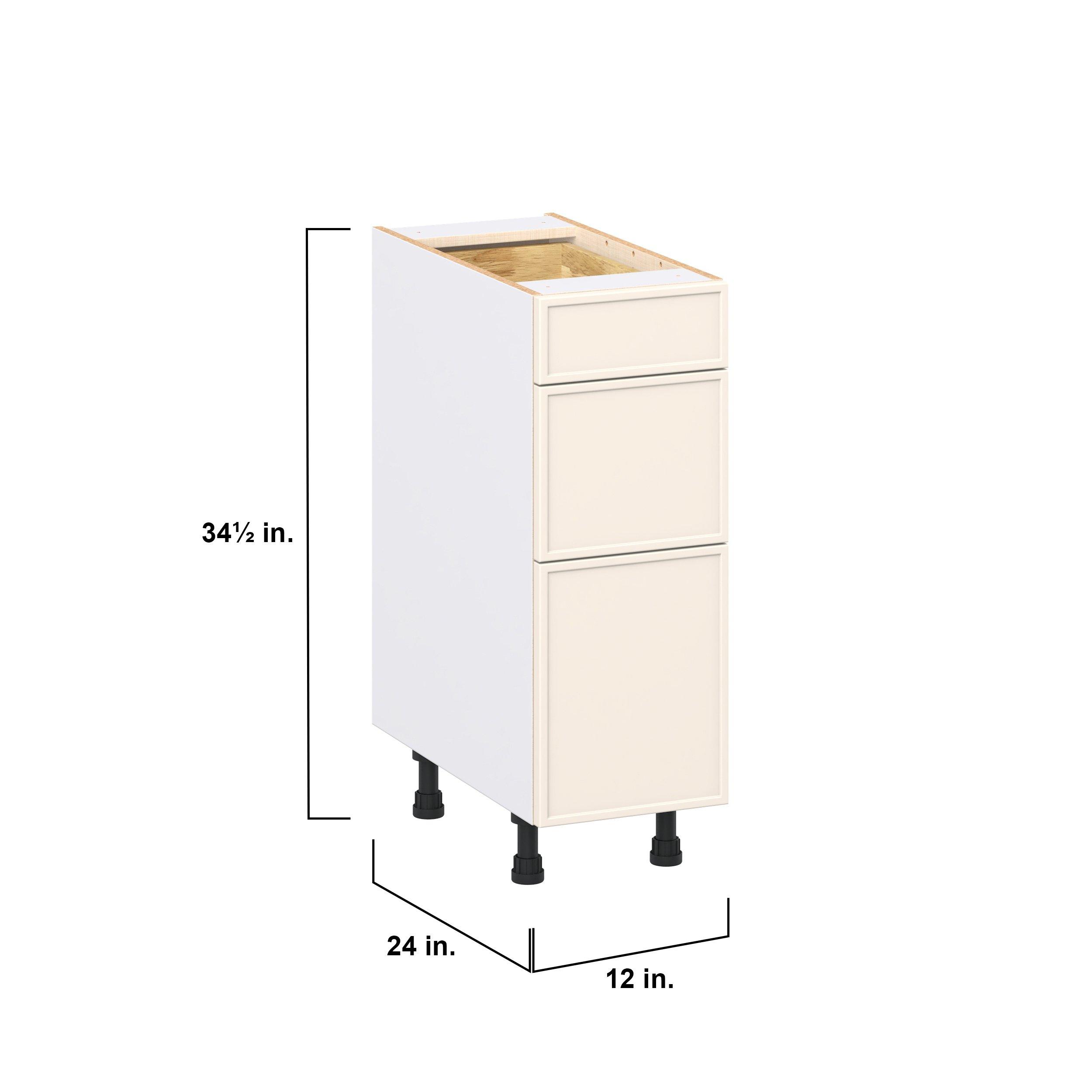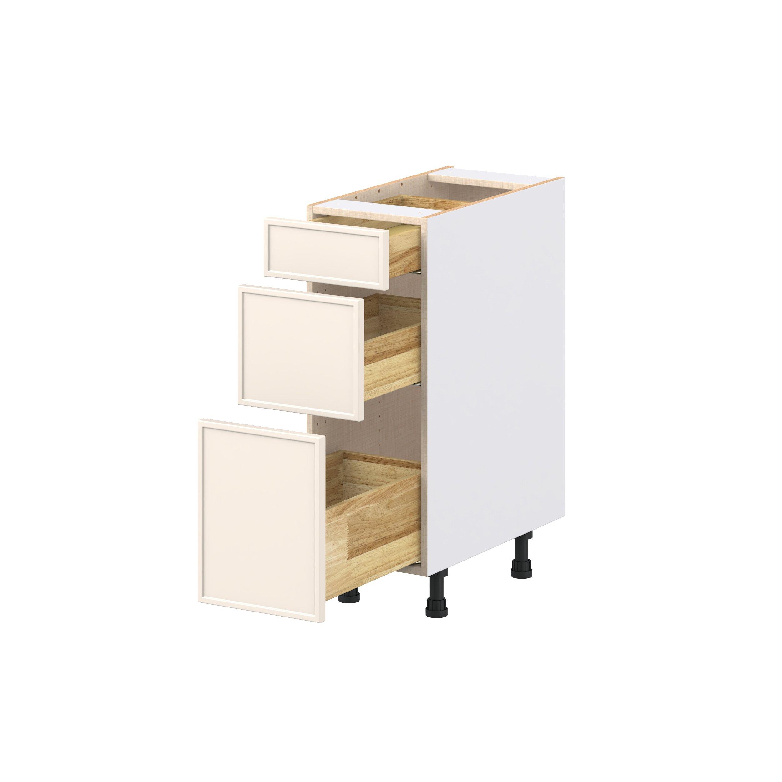 Enjoy a modern twist on a classic with Linden slim shaker cabinets. Available in premium-painted fresh washed linen and earthy moss green finishes, this collection exudes warmth and creates an inviting atmosphere Crafted from one-piece MDF Studio Design Collection Linden 12 in. Painted Washed Linen Drawer Base Cabinet is designed to resist hairline cracks while the easy-to-clean finish stands up to stains and moisture. Featuring 5-piece doors and dovetail drawer joints, these cabinets offer durability and elegance. This collection combines style with everyday storage solutions.