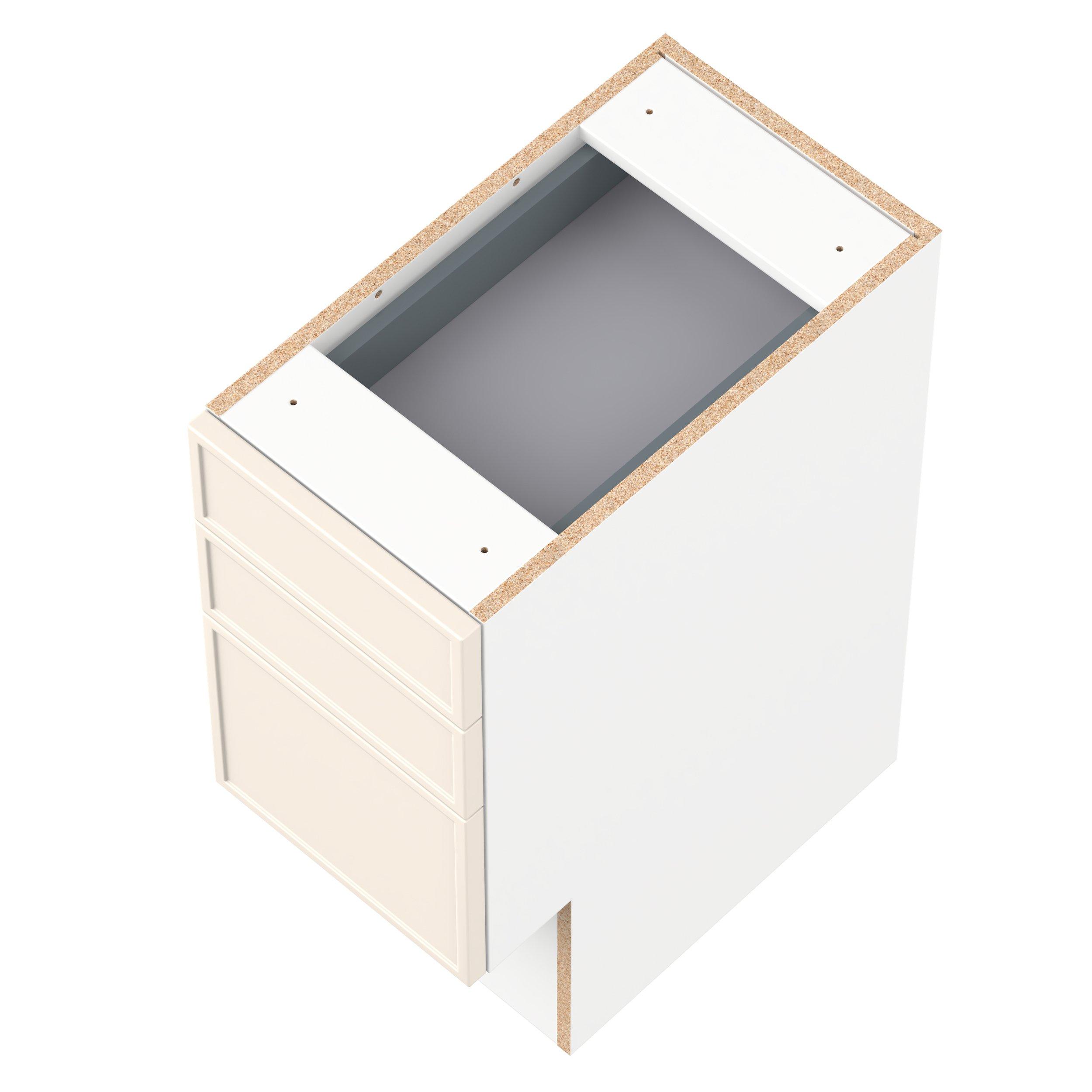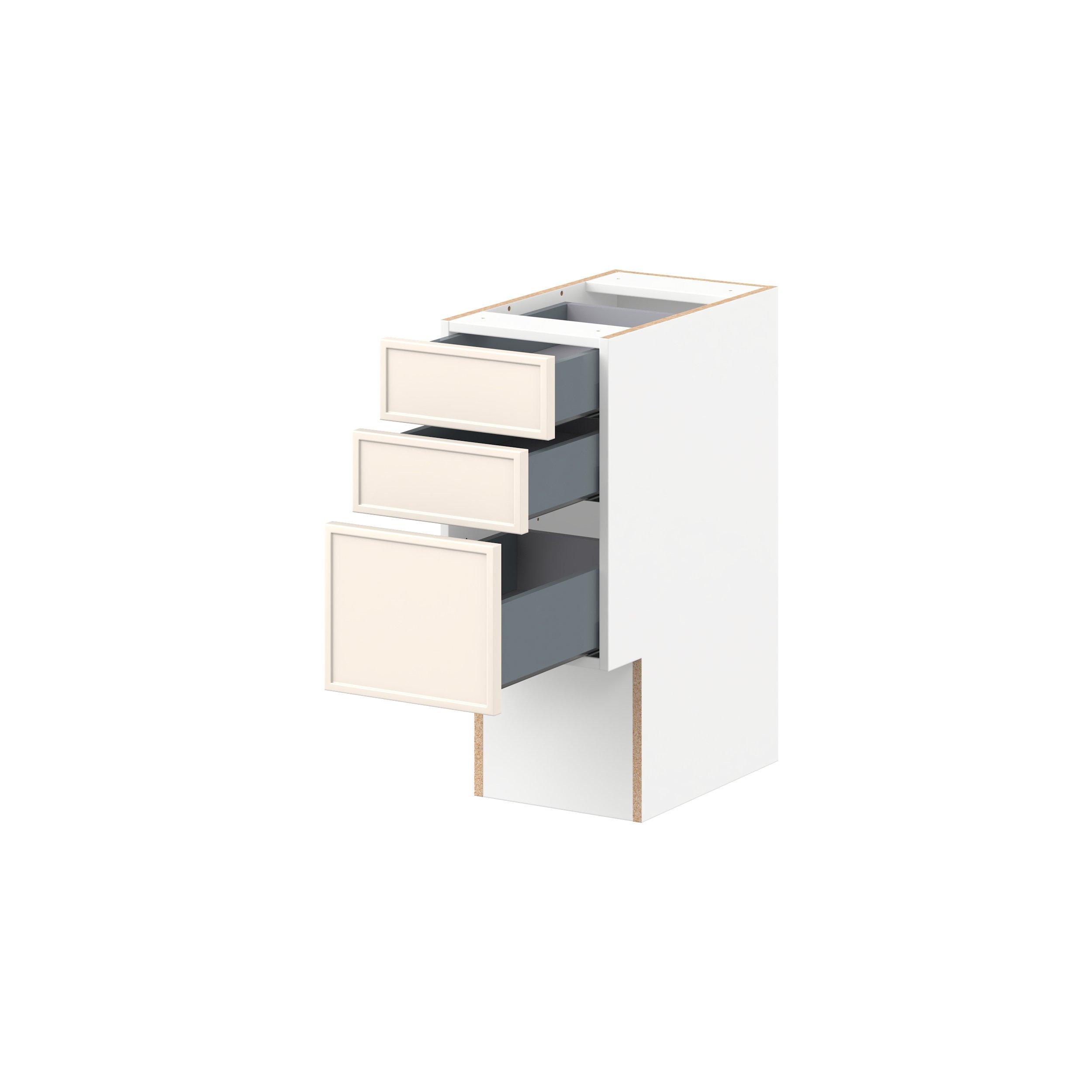 Enjoy a modern twist on a classic with Linden slim shaker cabinets. Available in premium-painted fresh washed linen and earthy moss green finishes, this collection exudes warmth and creates an inviting atmosphere Crafted from one-piece MDF Studio Design Collection Linden 12 in. Painted Washed Linen Vanity Drawer Base Cabinet - ADA is designed to resist hairline cracks while the easy-to-clean finish stands up to stains and moisture. Featuring 5-piece doors and dovetail drawer joints, these cabinets offer durability and elegance. This collection combines style with everyday storage solutions.
