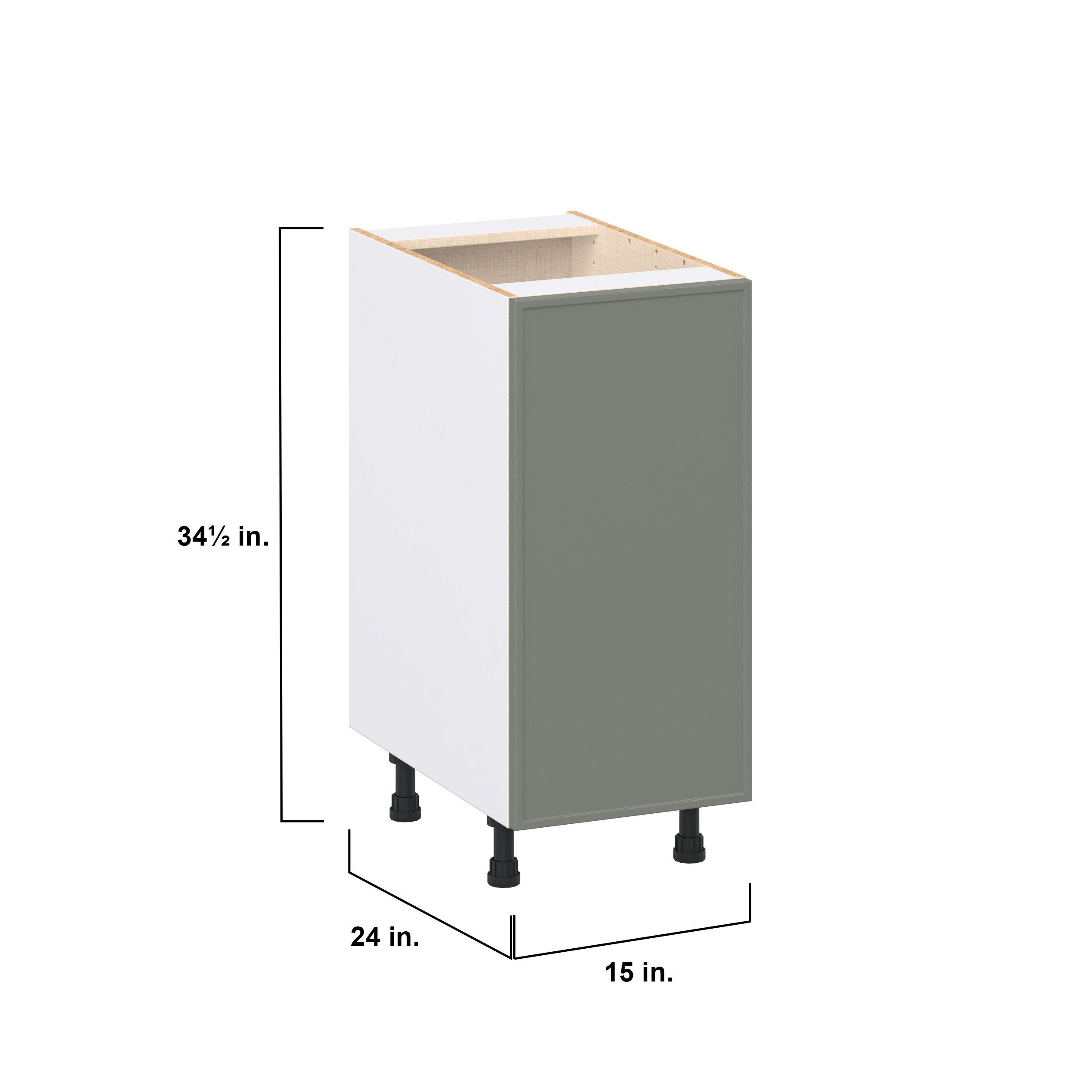 Enjoy a modern twist on a classic with Linden slim shaker cabinets. Available in premium-painted fresh washed linen and earthy moss green finishes, this collection exudes warmth and creates an inviting atmosphere Crafted from one-piece MDF Studio Design Collection Linden 15 in. Painted Moss Green Door Base Cabinet is designed to resist hairline cracks while the easy-to-clean finish stands up to stains and moisture. Featuring 5-piece doors and dovetail drawer joints, these cabinets offer durability and elegance. This collection combines style with everyday storage solutions.