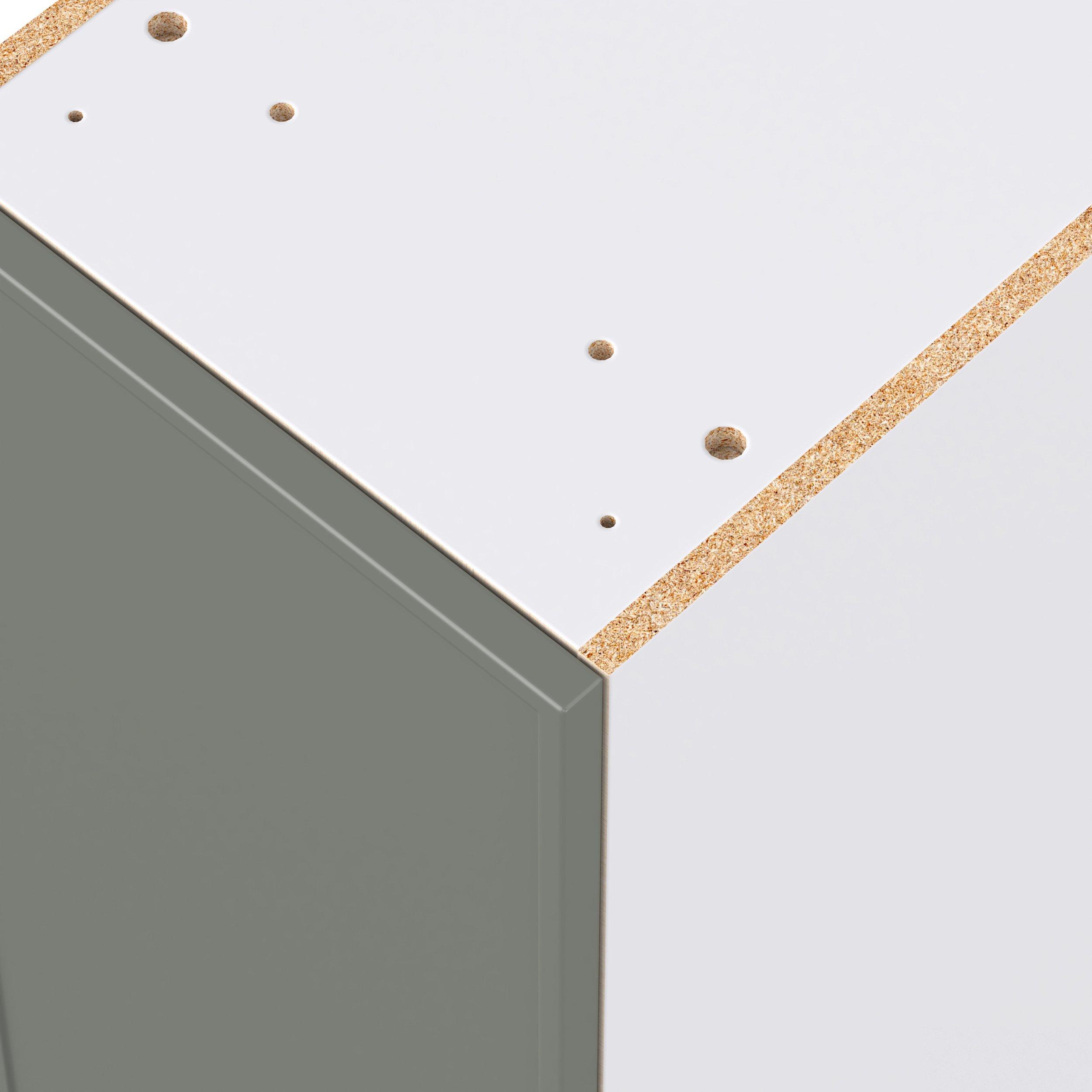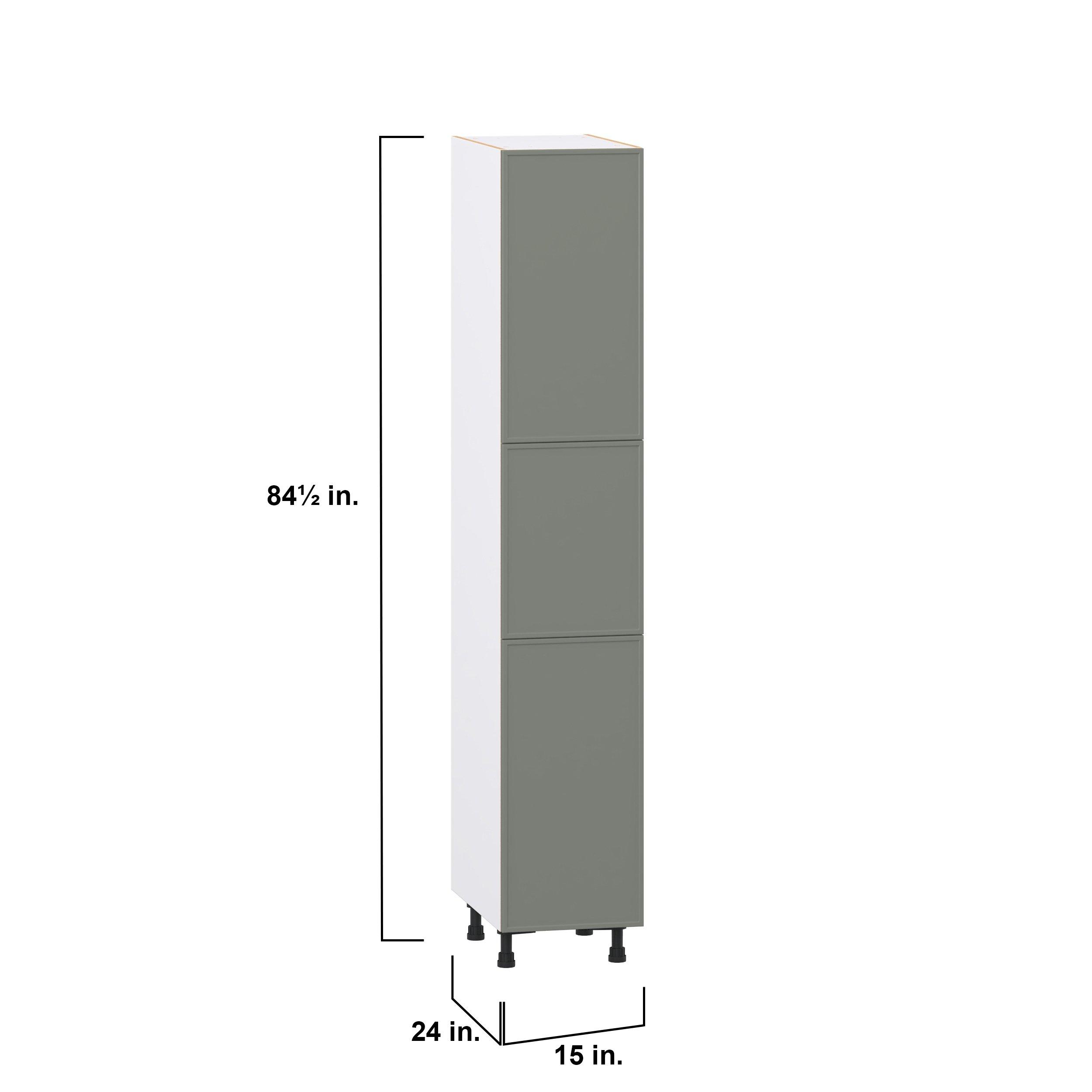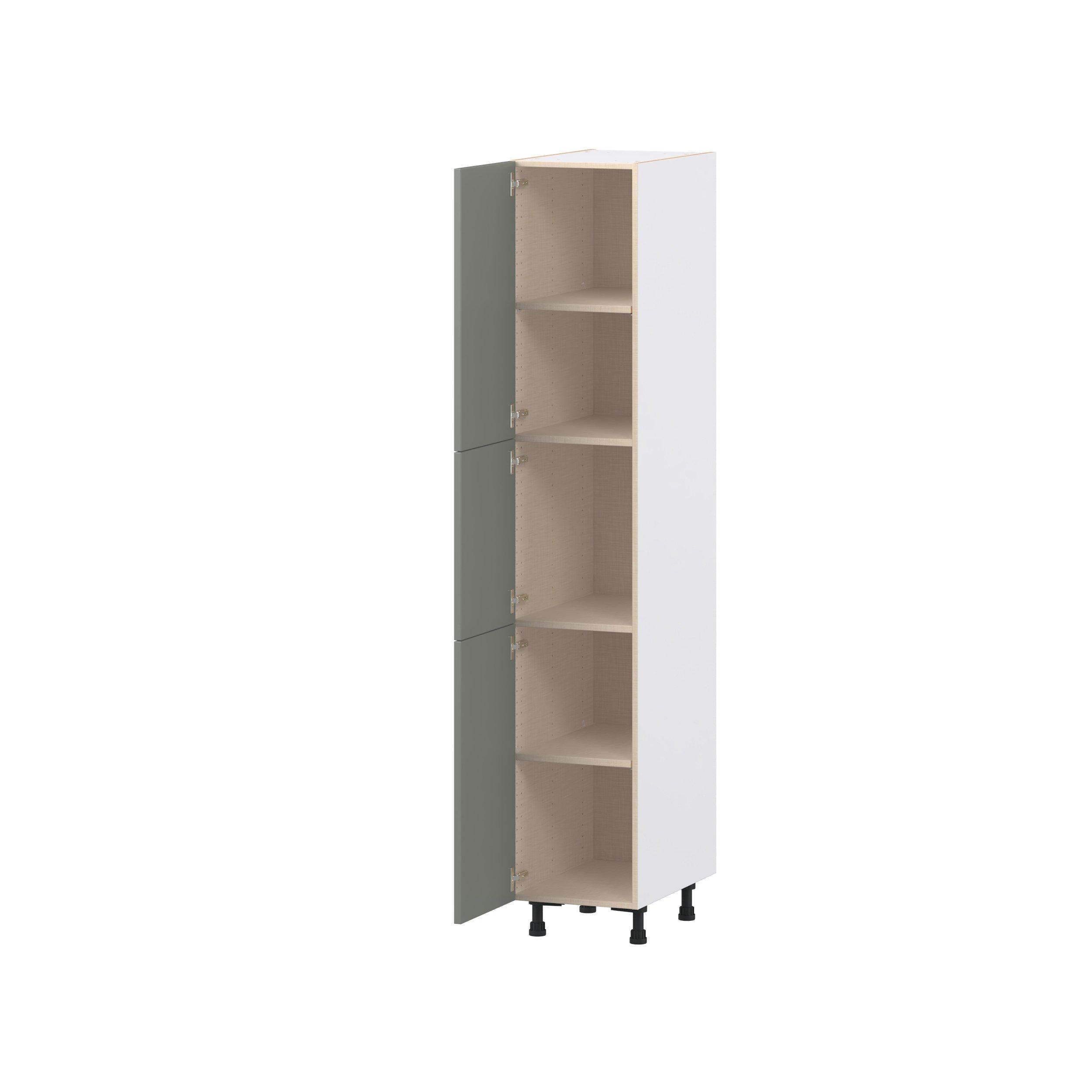 Enjoy a modern twist on a classic with Linden slim shaker cabinets. Available in premium-painted fresh washed linen and earthy moss green finishes, this collection exudes warmth and creates an inviting atmosphere Crafted from one-piece MDF Studio Design Collection Linden 15 in. Painted Moss Green Door Pantry Cabinet is designed to resist hairline cracks while the easy-to-clean finish stands up to stains and moisture. Featuring 5-piece doors and dovetail drawer joints, these cabinets offer durability and elegance. This collection combines style with everyday storage solutions.