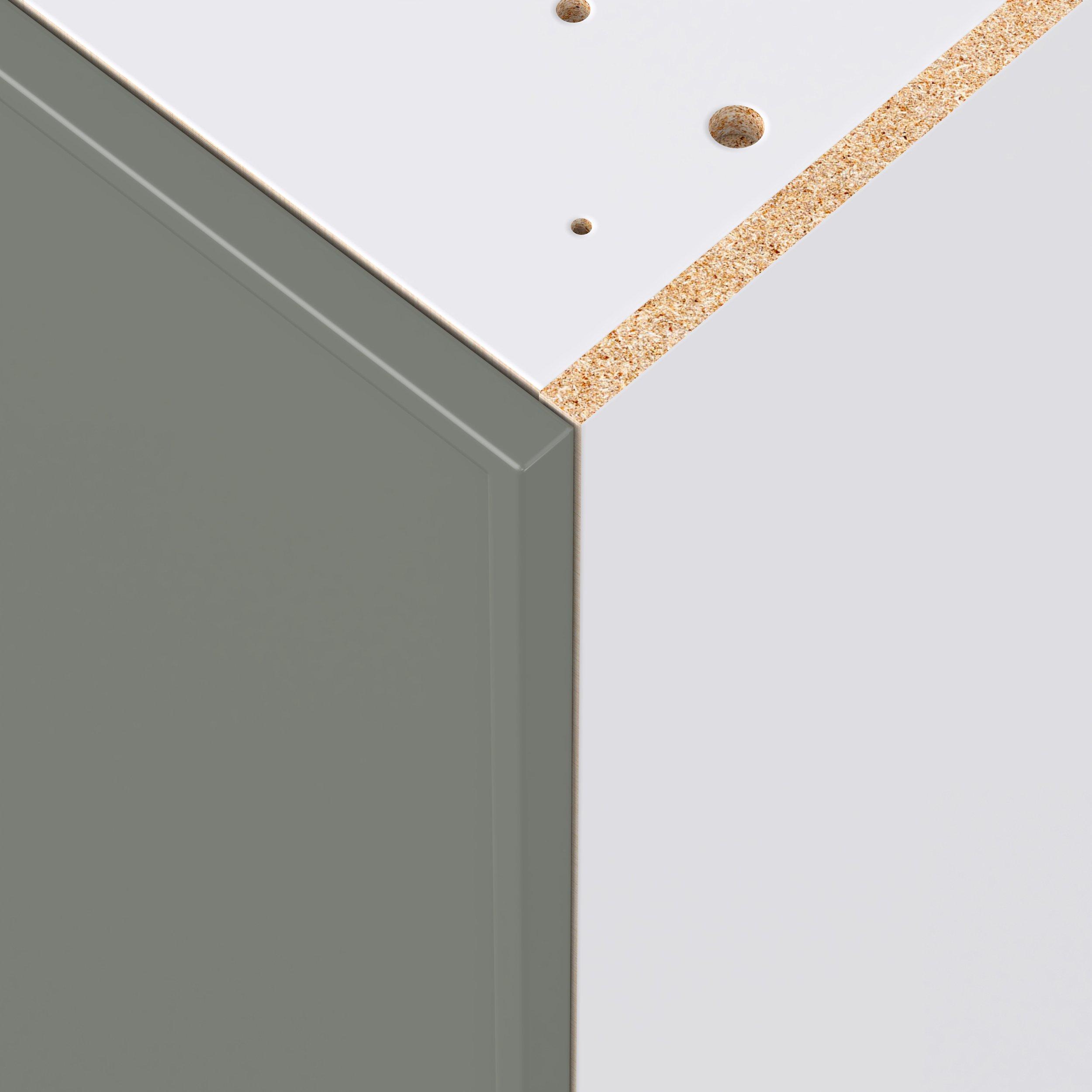 Enjoy a modern twist on a classic with Linden slim shaker cabinets. Available in premium-painted fresh washed linen and earthy moss green finishes, this collection exudes warmth and creates an inviting atmosphere Crafted from one-piece MDF Studio Design Collection Linden 15 in. Painted Moss Green Door Pantry Cabinet is designed to resist hairline cracks while the easy-to-clean finish stands up to stains and moisture. Featuring 5-piece doors and dovetail drawer joints, these cabinets offer durability and elegance. This collection combines style with everyday storage solutions.