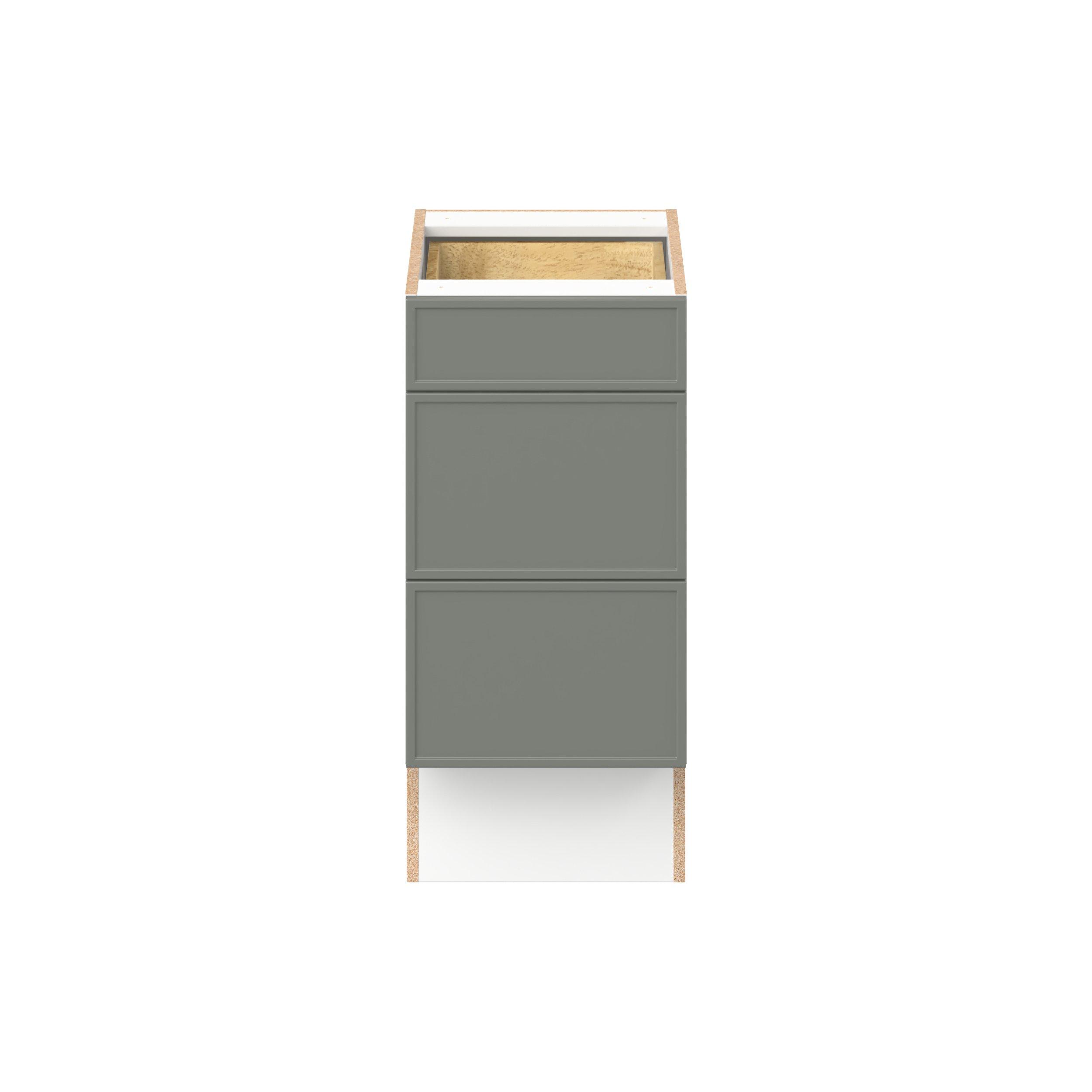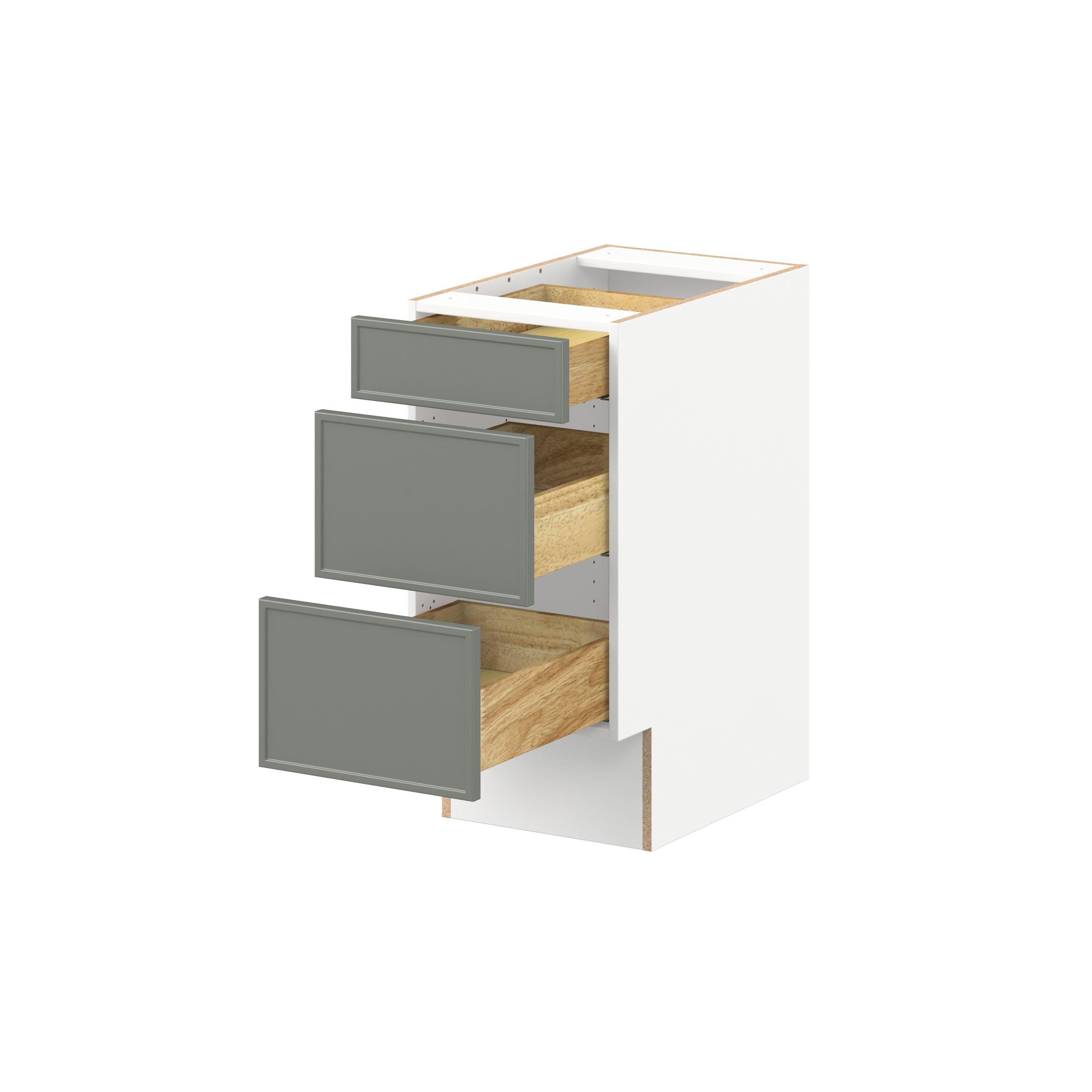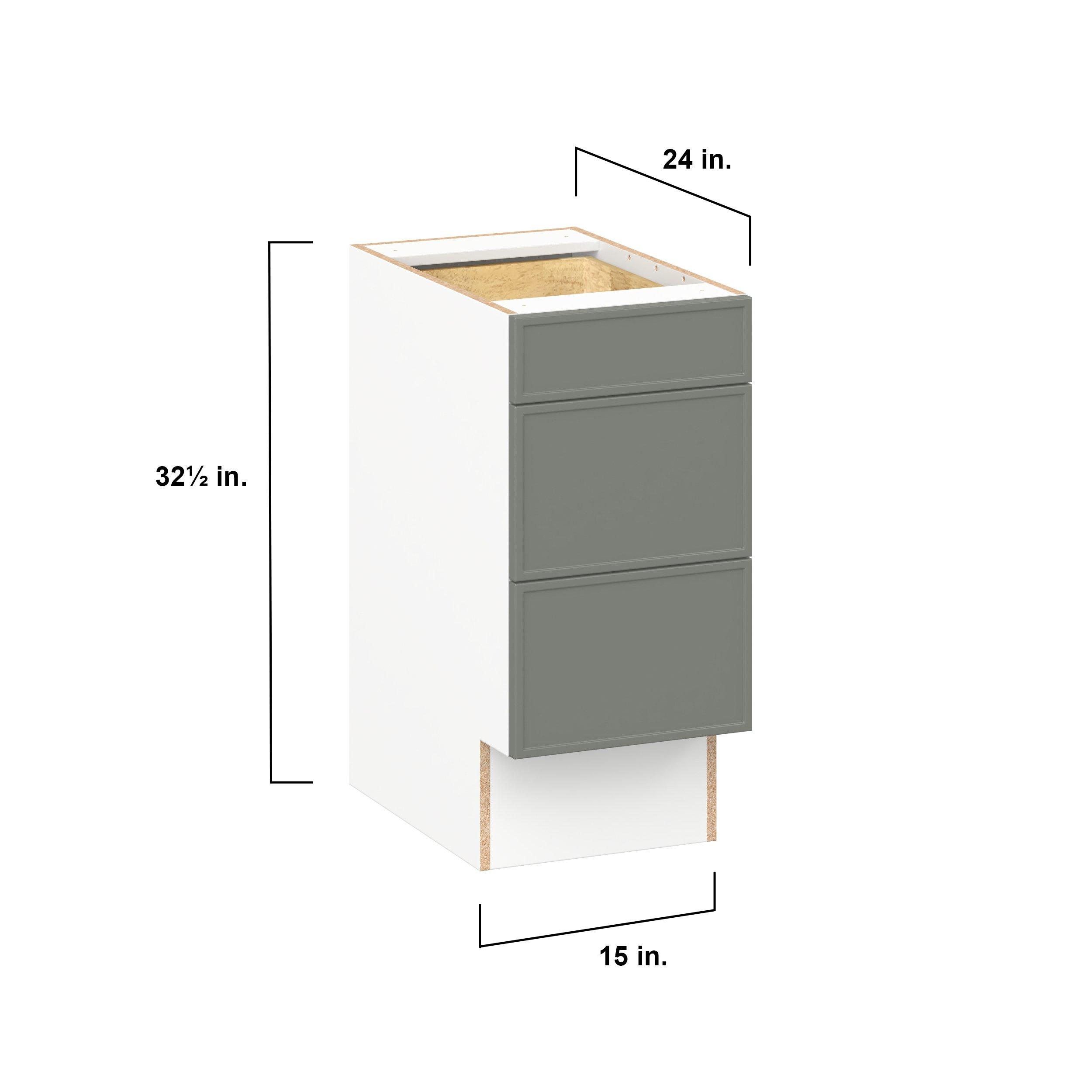 Enjoy a modern twist on a classic with Linden slim shaker cabinets. Available in premium-painted fresh washed linen and earthy moss green finishes, this collection exudes warmth and creates an inviting atmosphere Crafted from one-piece MDF Studio Design Collection Linden 15 in. Painted Moss Green Drawer Base Cabinet - ADA is designed to resist hairline cracks while the easy-to-clean finish stands up to stains and moisture. Featuring 5-piece doors and dovetail drawer joints, these cabinets offer durability and elegance. This collection combines style with everyday storage solutions.