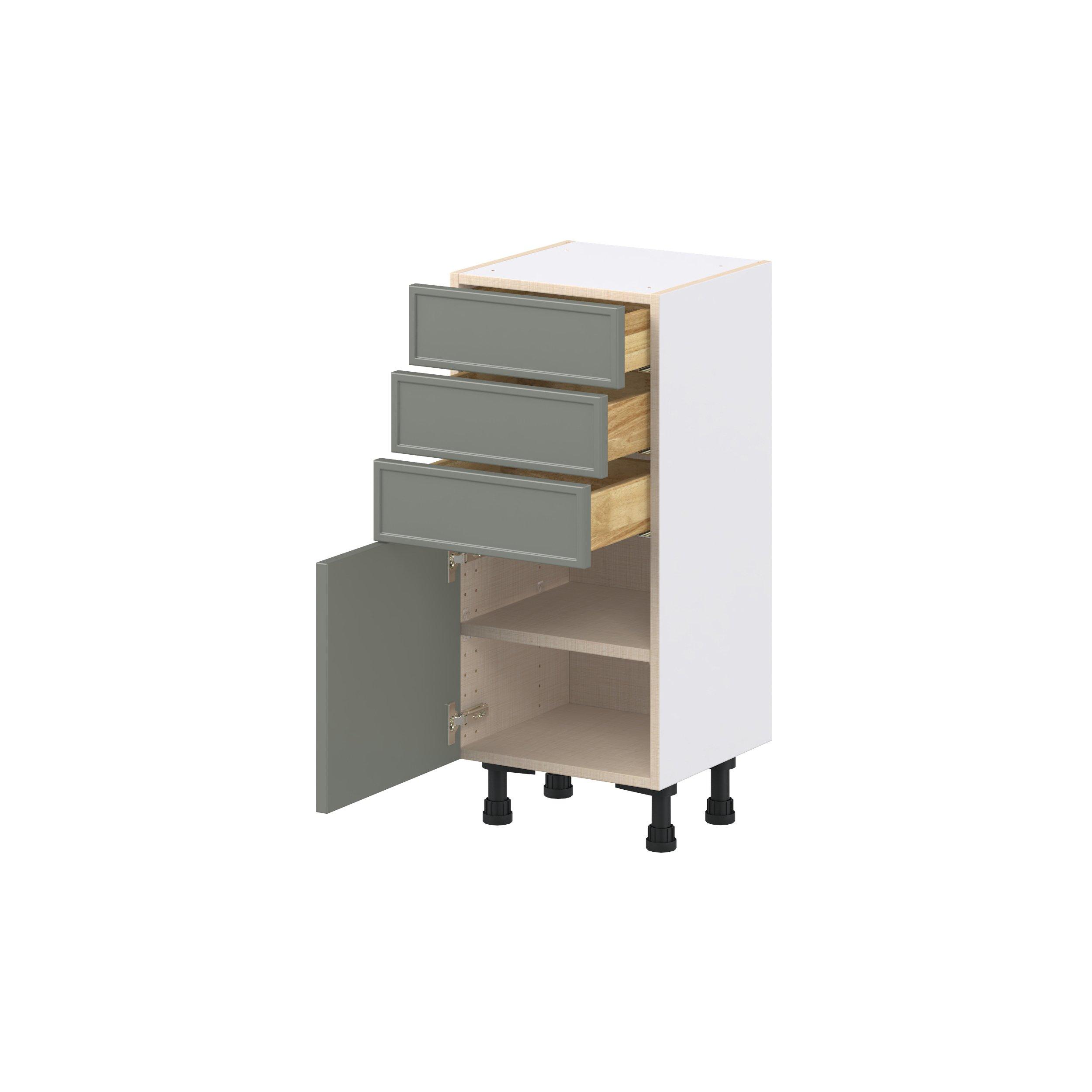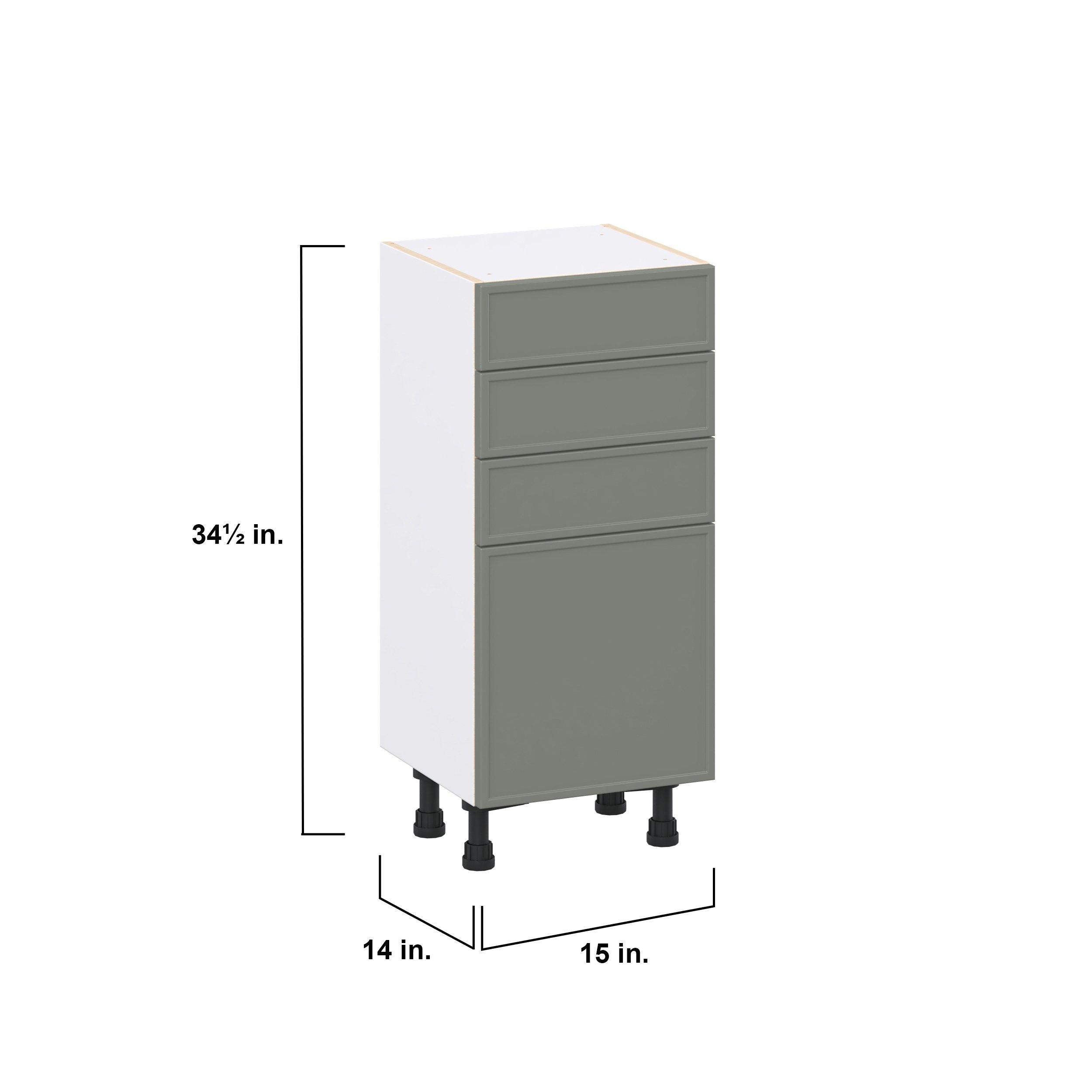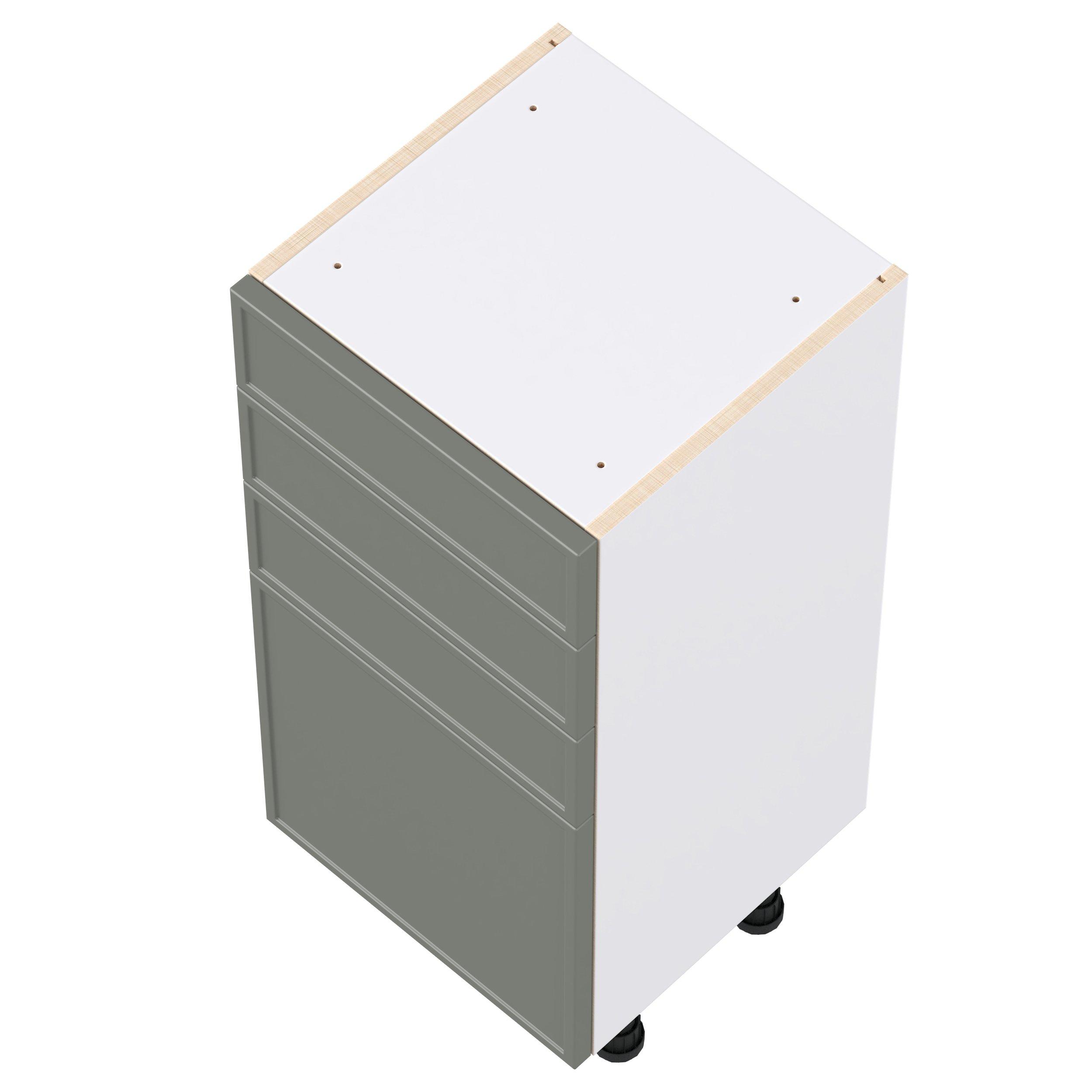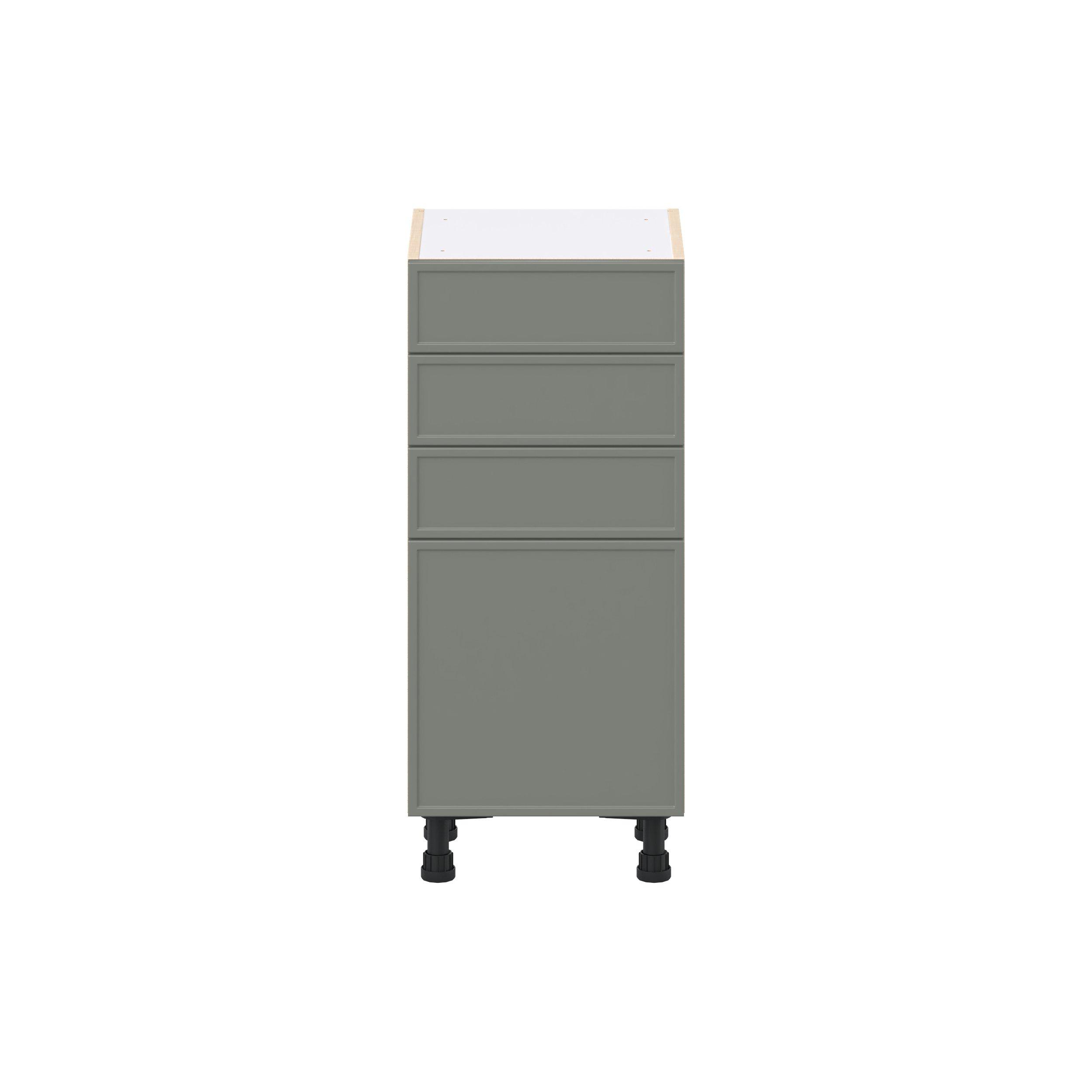 Enjoy a modern twist on a classic with Linden slim shaker cabinets. Available in premium-painted fresh washed linen and earthy moss green finishes, this collection exudes warmth and creates an inviting atmosphere Crafted from one-piece MDF Studio Design Collection Linden 15 in. Painted Moss Green Shallow Base Cabinet is designed to resist hairline cracks while the easy-to-clean finish stands up to stains and moisture. Featuring 5-piece doors and dovetail drawer joints, these cabinets offer durability and elegance. This collection combines style with everyday storage solutions.