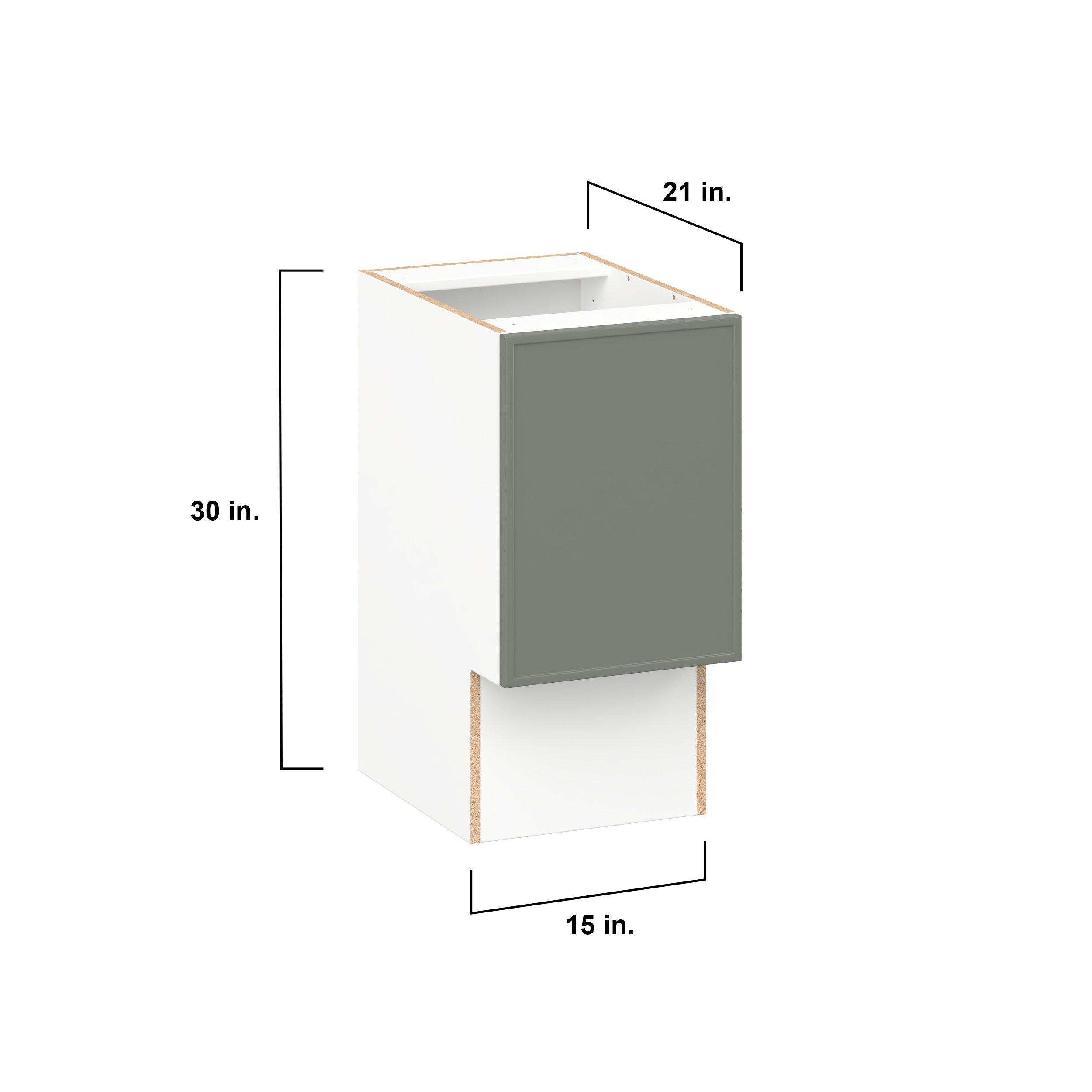 Enjoy a modern twist on a classic with Linden slim shaker cabinets. Available in premium-painted fresh washed linen and earthy moss green finishes, this collection exudes warmth and creates an inviting atmosphere Crafted from one-piece MDF Studio Design Collection Linden 15 in. Painted Moss Green Vanity Base Cabinet - ADA is designed to resist hairline cracks while the easy-to-clean finish stands up to stains and moisture. Featuring 5-piece doors and dovetail drawer joints, these cabinets offer durability and elegance. This collection combines style with everyday storage solutions.