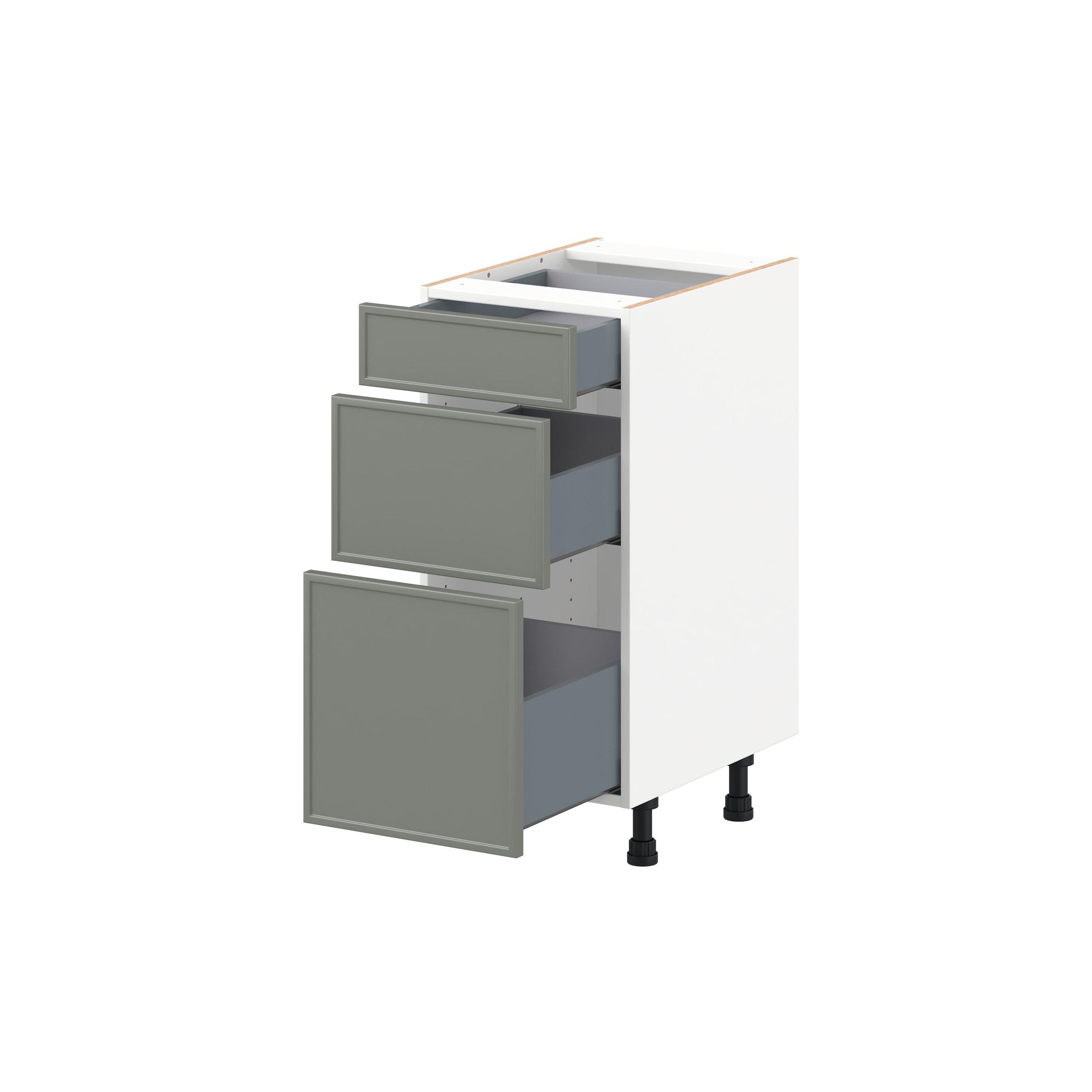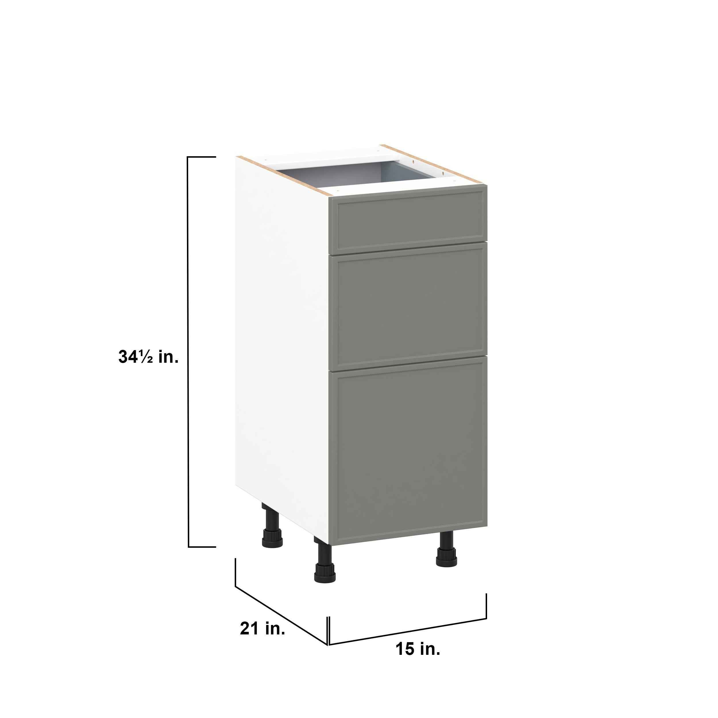 Enjoy a modern twist on a classic with Linden slim shaker cabinets. Available in premium-painted fresh washed linen and earthy moss green finishes, this collection exudes warmth and creates an inviting atmosphere Crafted from one-piece MDF Studio Design Collection Linden 15 in. Painted Moss Green Vanity Drawer Base Cabinet - ADA is designed to resist hairline cracks while the easy-to-clean finish stands up to stains and moisture. Featuring 5-piece doors and dovetail drawer joints, these cabinets offer durability and elegance. This collection combines style with everyday storage solutions.