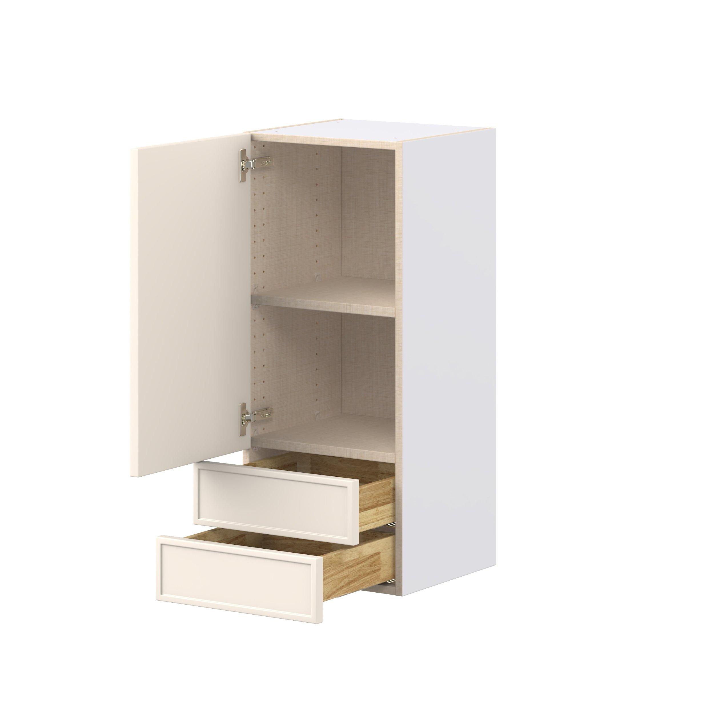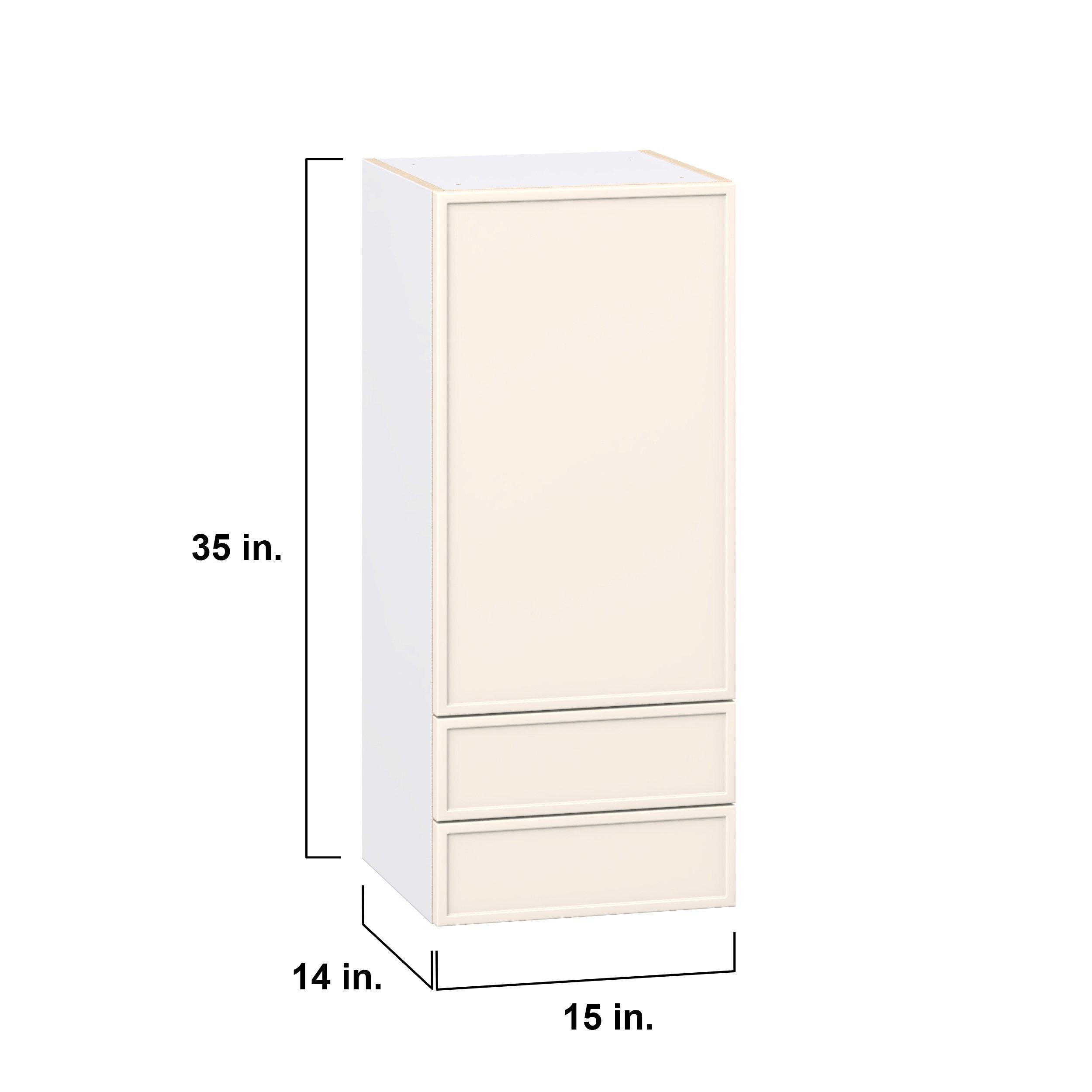 Enjoy a modern twist on a classic with Linden slim shaker cabinets. Available in premium-painted fresh washed linen and earthy moss green finishes, this collection exudes warmth and creates an inviting atmosphere Crafted from one-piece MDF Studio Design Collection Linden 15 in. Painted Washed Linen Door and Drawer Wall Cabinet is designed to resist hairline cracks while the easy-to-clean finish stands up to stains and moisture. Featuring 5-piece doors and dovetail drawer joints, these cabinets offer durability and elegance. This collection combines style with everyday storage solutions.