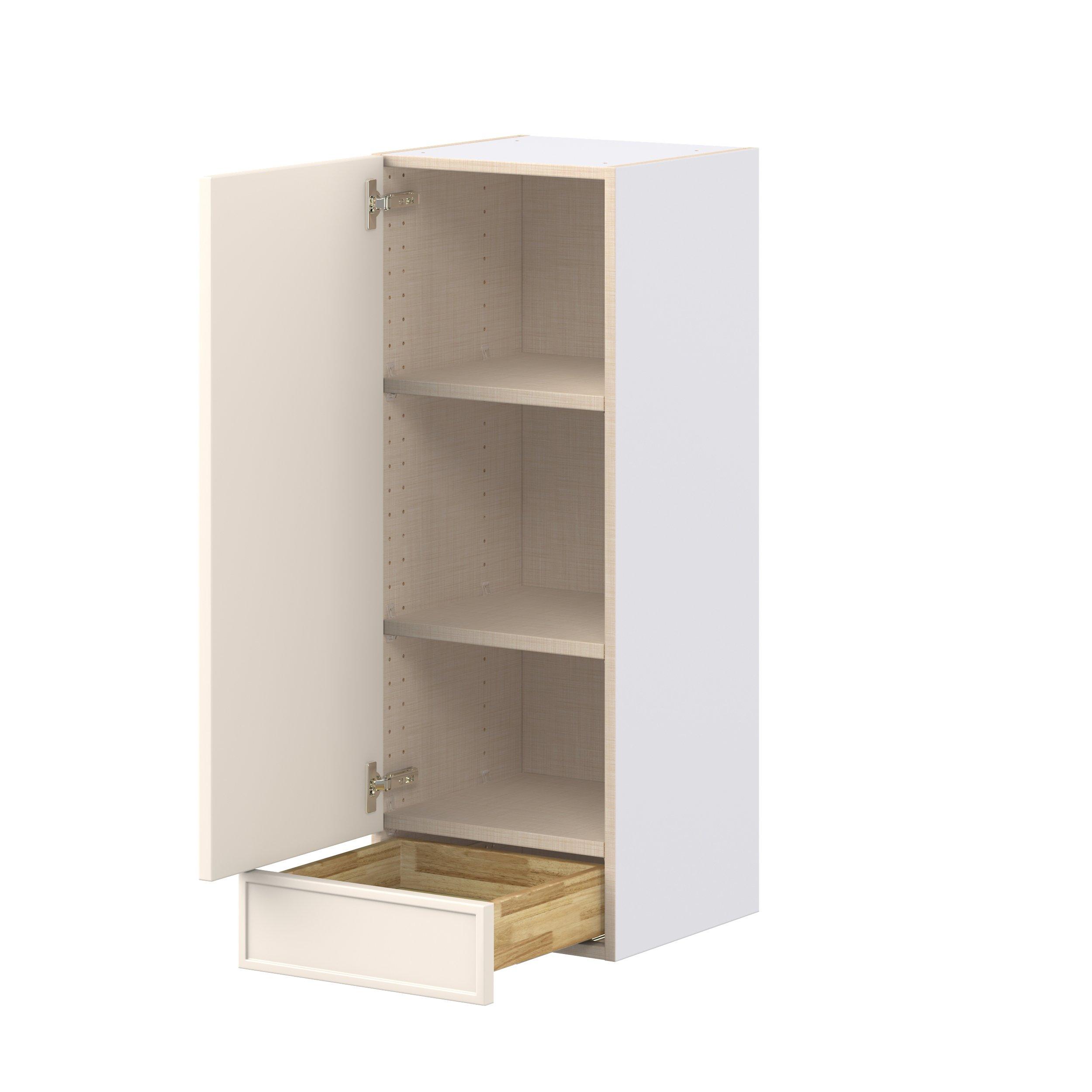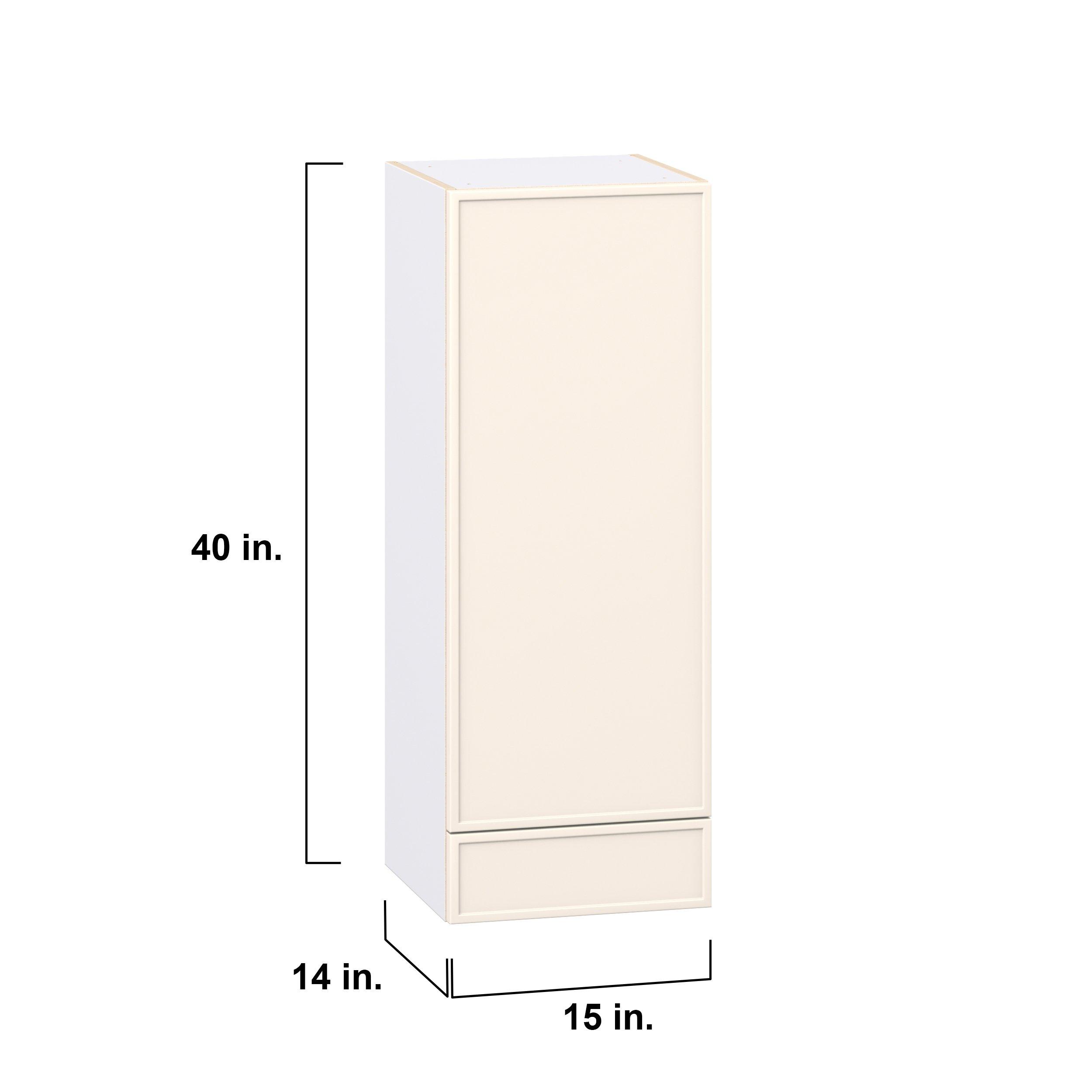 Enjoy a modern twist on a classic with Linden slim shaker cabinets. Available in premium-painted fresh washed linen and earthy moss green finishes, this collection exudes warmth and creates an inviting atmosphere Crafted from one-piece MDF Studio Design Collection Linden 15 in. Painted Washed Linen Door and Drawer Wall Cabinet is designed to resist hairline cracks while the easy-to-clean finish stands up to stains and moisture. Featuring 5-piece doors and dovetail drawer joints, these cabinets offer durability and elegance. This collection combines style with everyday storage solutions.