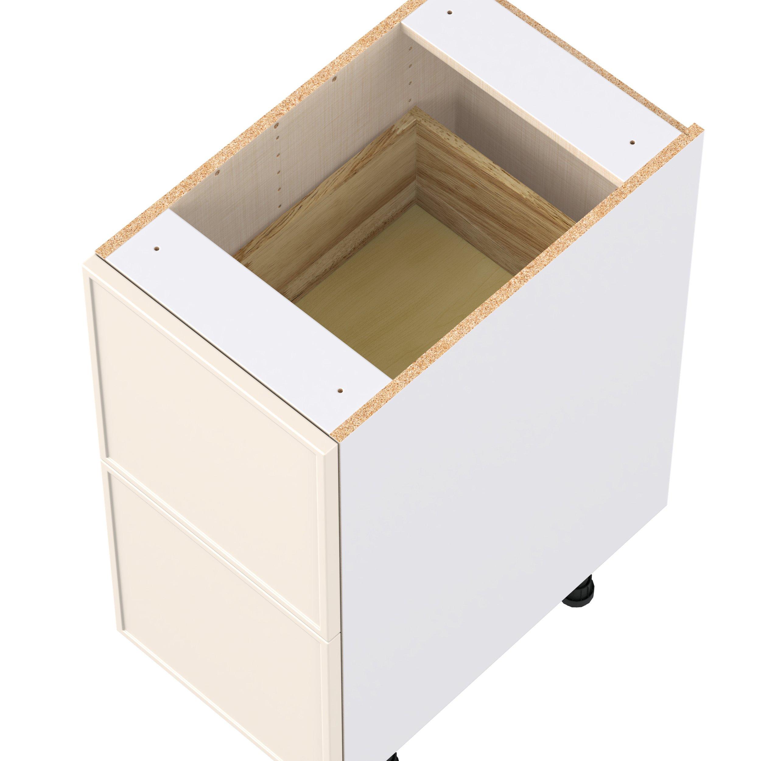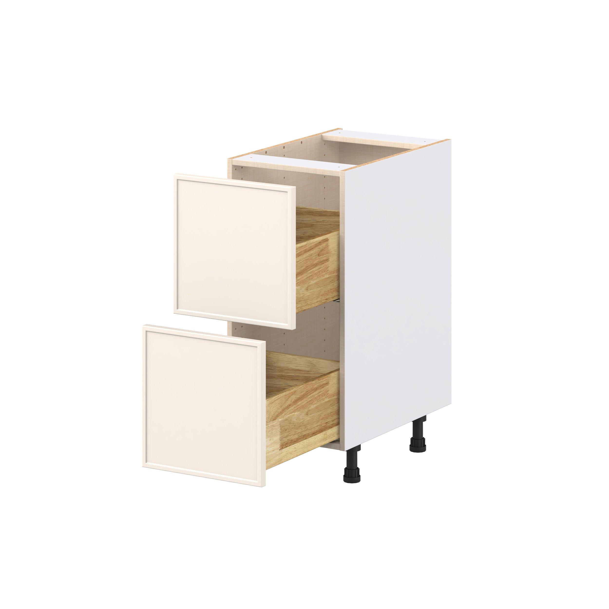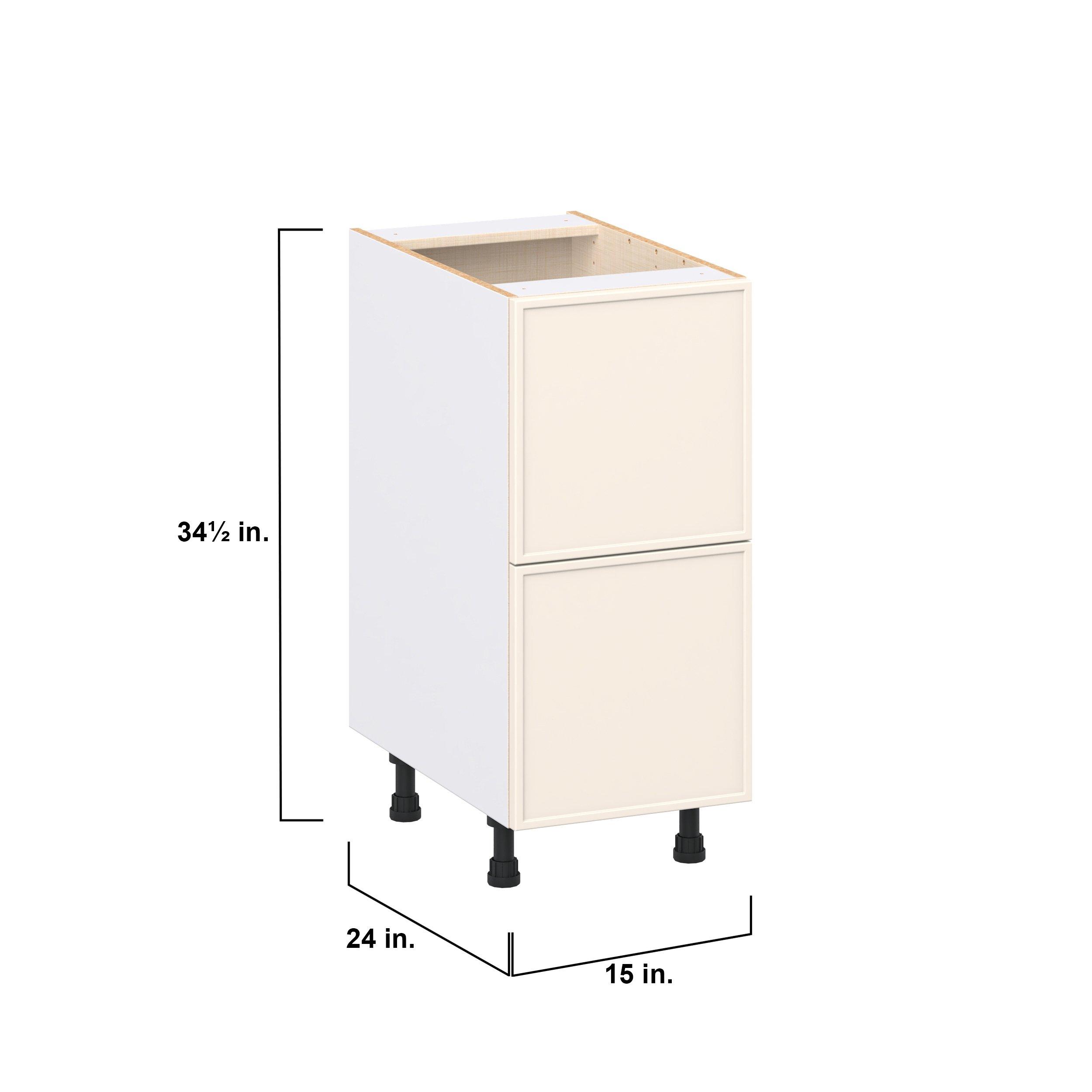 Enjoy a modern twist on a classic with Linden slim shaker cabinets. Available in premium-painted fresh washed linen and earthy moss green finishes, this collection exudes warmth and creates an inviting atmosphere Crafted from one-piece MDF Studio Design Collection Linden 15 in. Painted Washed Linen Drawer Base Cabinet is designed to resist hairline cracks while the easy-to-clean finish stands up to stains and moisture. Featuring 5-piece doors and dovetail drawer joints, these cabinets offer durability and elegance. This collection combines style with everyday storage solutions.