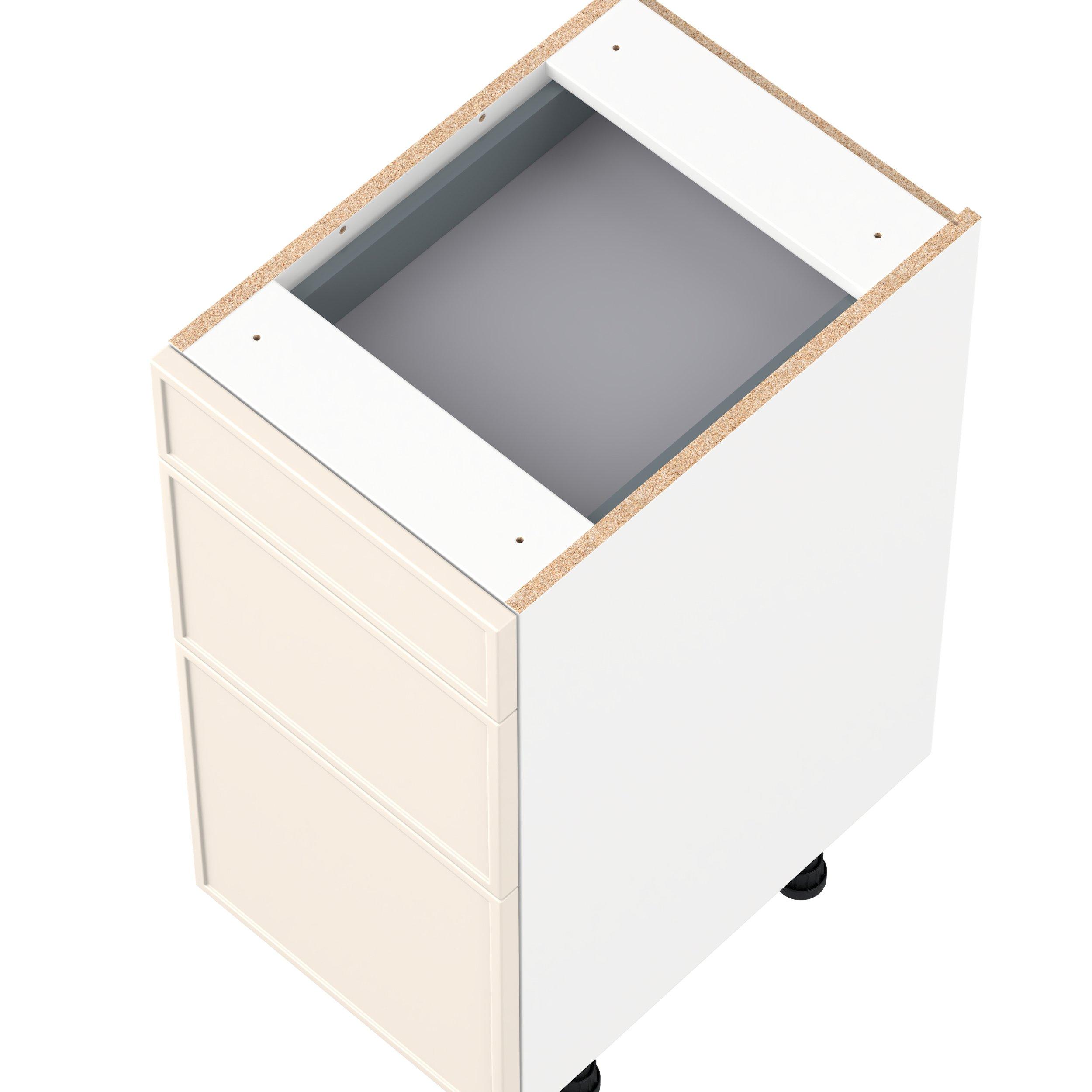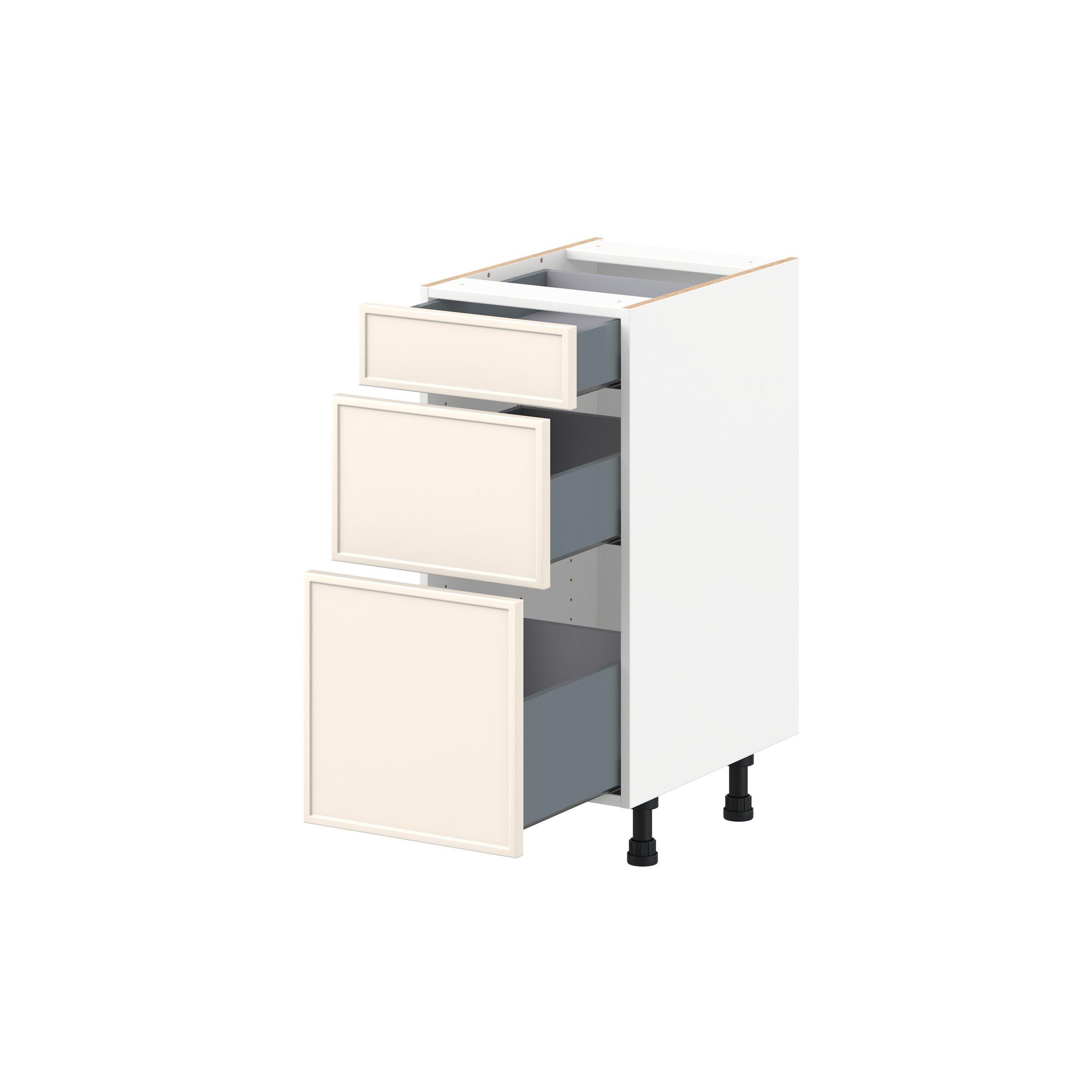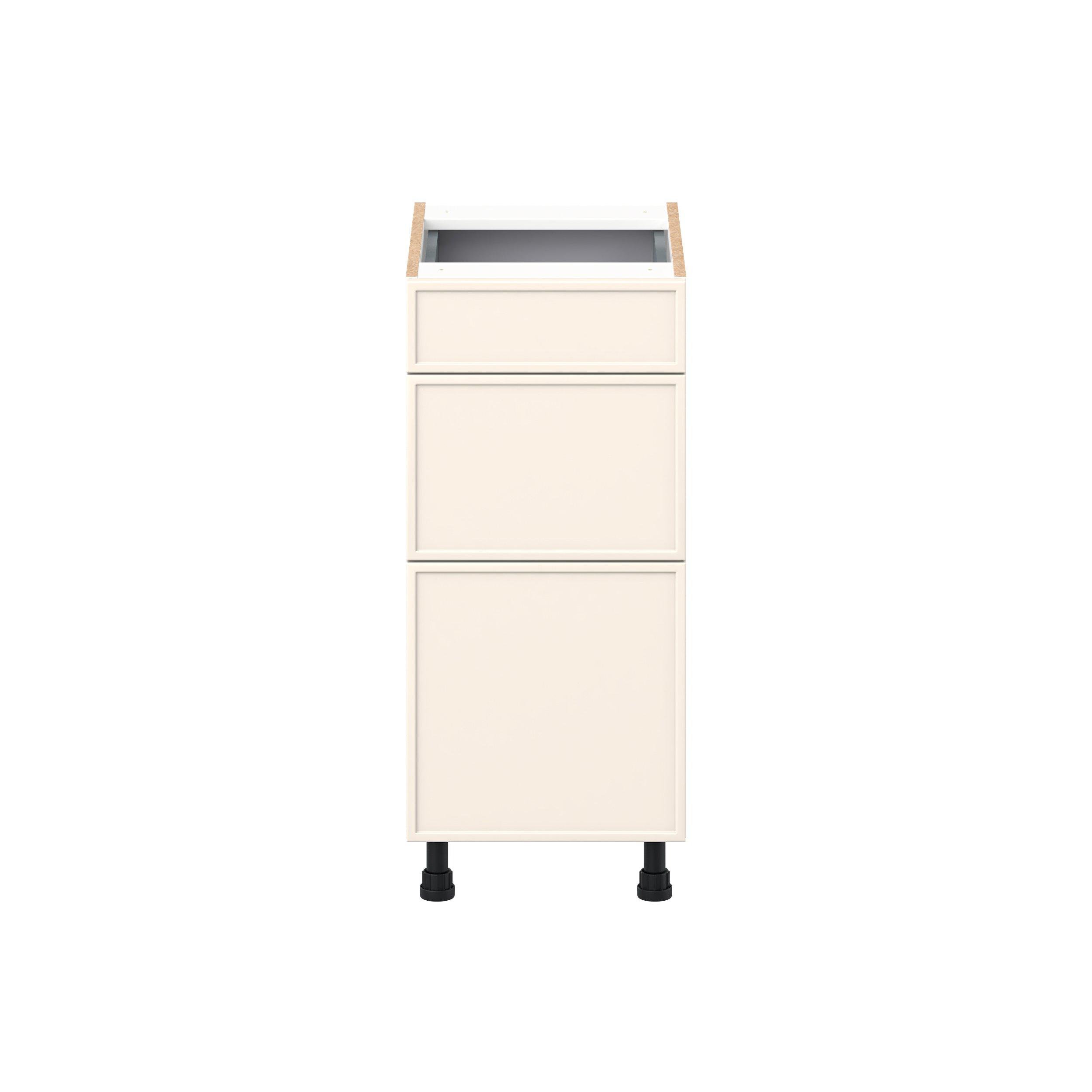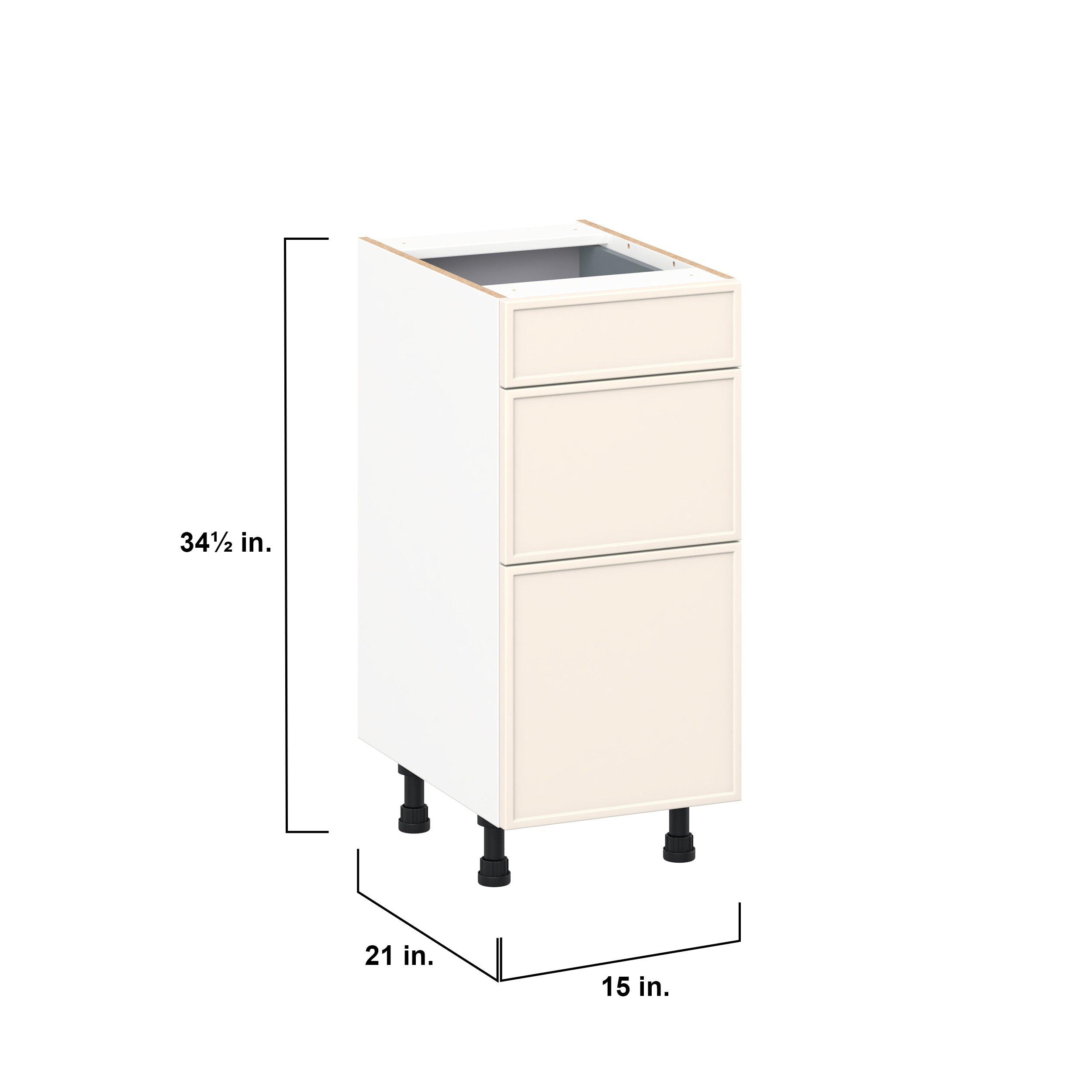 Enjoy a modern twist on a classic with Linden slim shaker cabinets. Available in premium-painted fresh washed linen and earthy moss green finishes, this collection exudes warmth and creates an inviting atmosphere Crafted from one-piece MDF Studio Design Collection Linden 15 in. Painted Washed Linen Vanity Drawer Base Cabinet is designed to resist hairline cracks while the easy-to-clean finish stands up to stains and moisture. Featuring 5-piece doors and dovetail drawer joints, these cabinets offer durability and elegance. This collection combines style with everyday storage solutions.