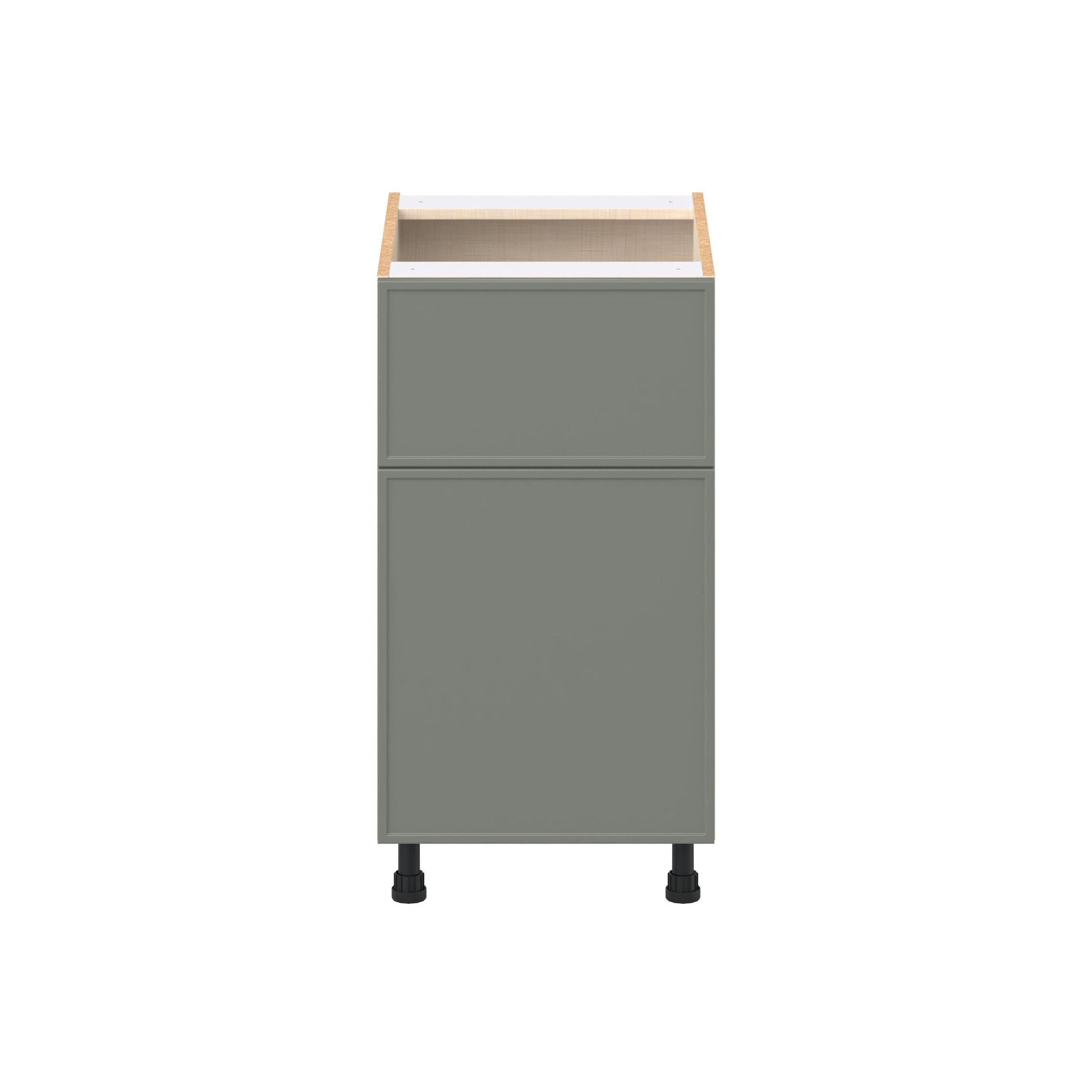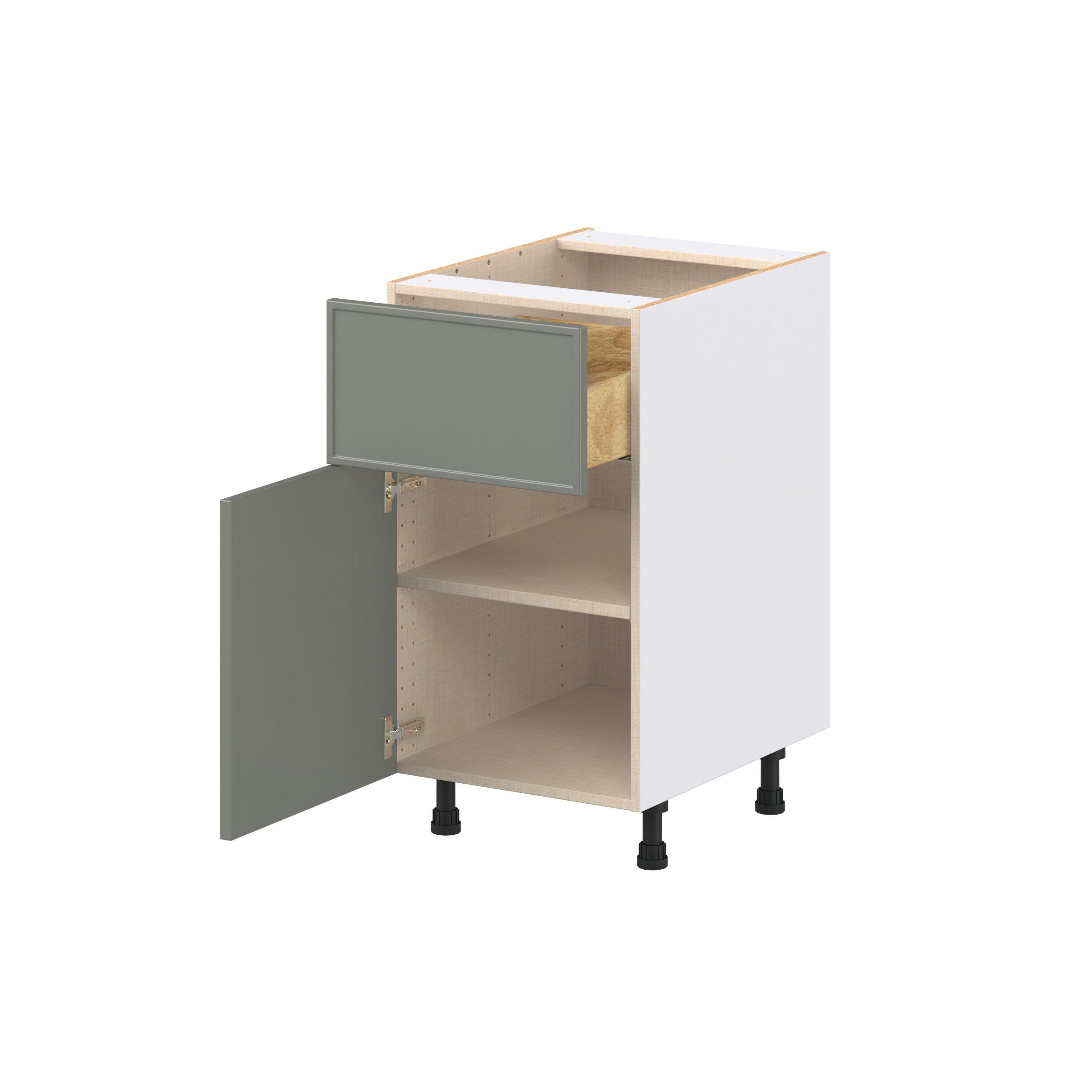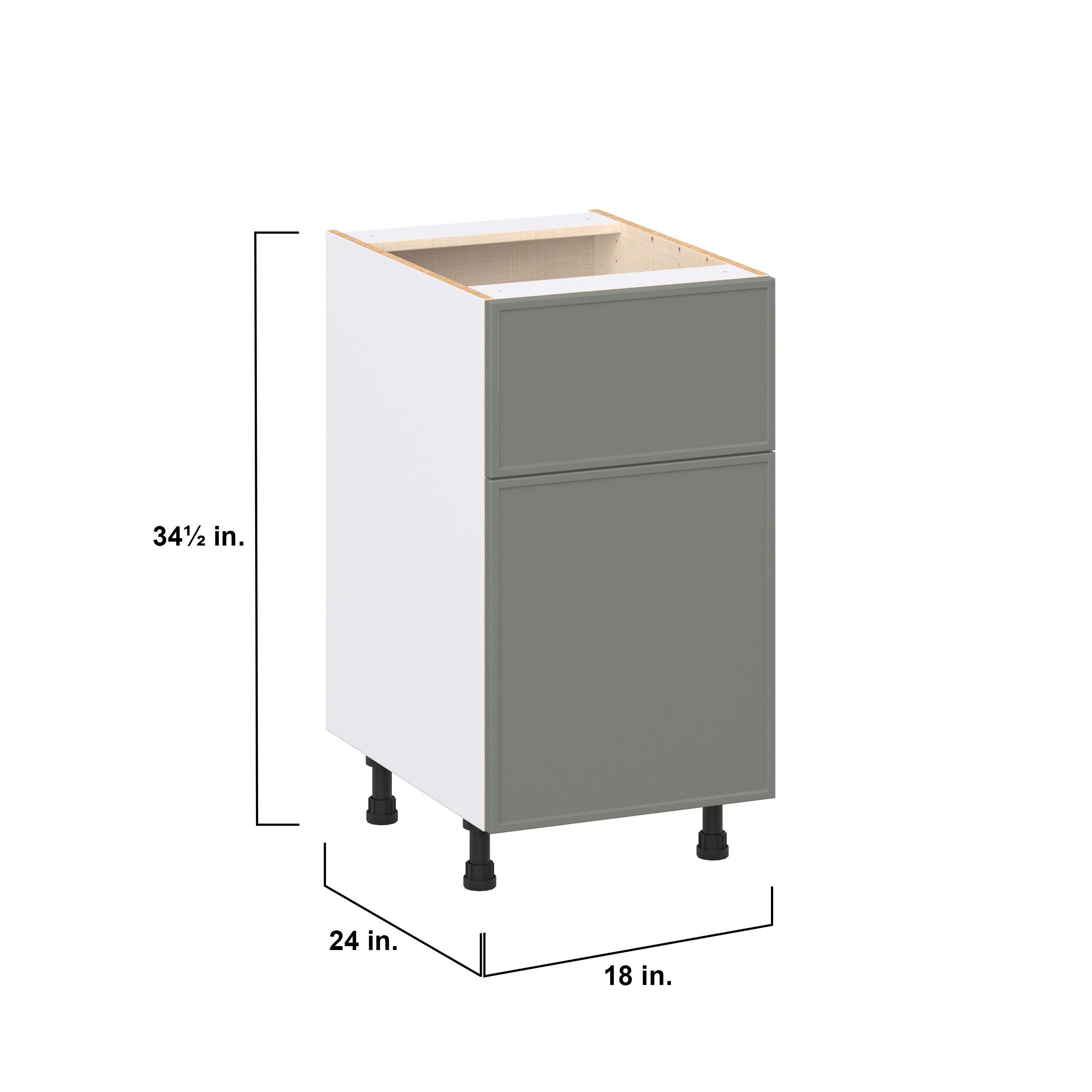 Enjoy a modern twist on a classic with Linden slim shaker cabinets. Available in premium-painted fresh washed linen and earthy moss green finishes, this collection exudes warmth and creates an inviting atmosphere Crafted from one-piece MDF Studio Design Collection Linden 18 in. Painted Moss Green Door and Drawer Base Cabinet is designed to resist hairline cracks while the easy-to-clean finish stands up to stains and moisture. Featuring 5-piece doors and dovetail drawer joints, these cabinets offer durability and elegance. This collection combines style with everyday storage solutions.